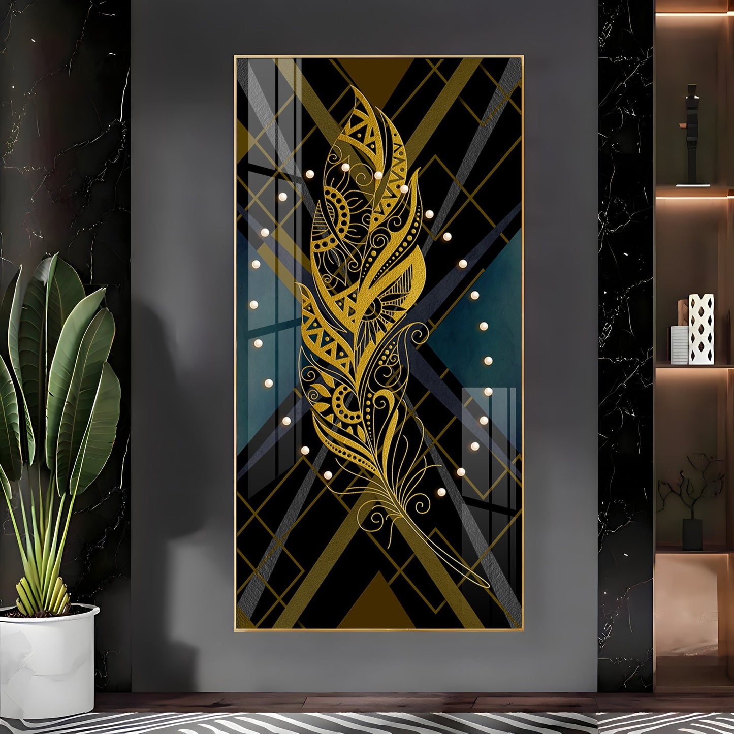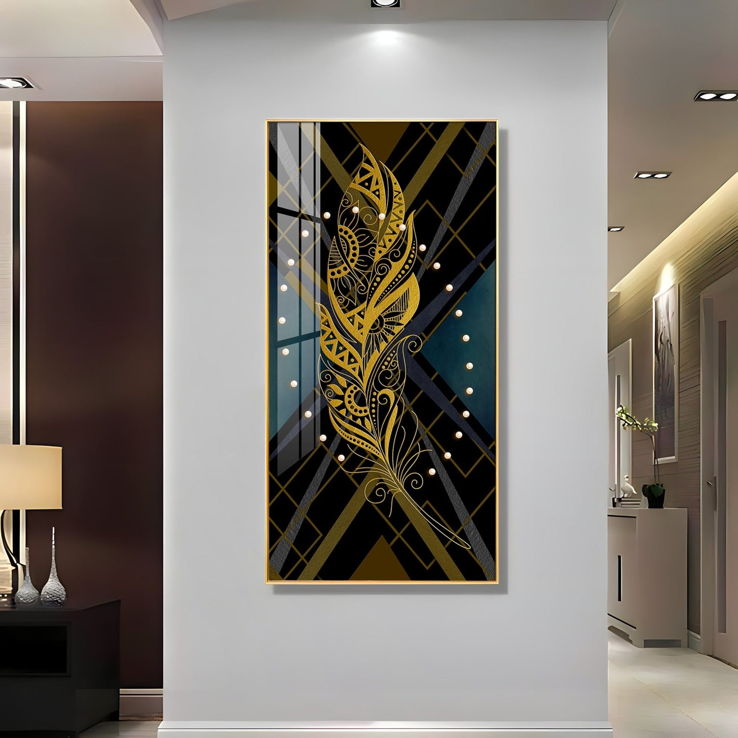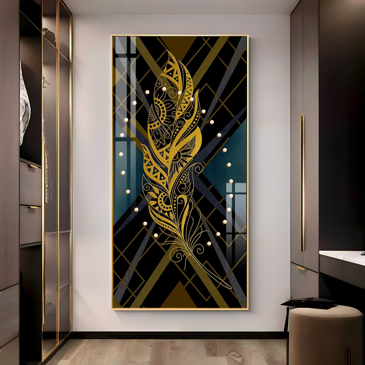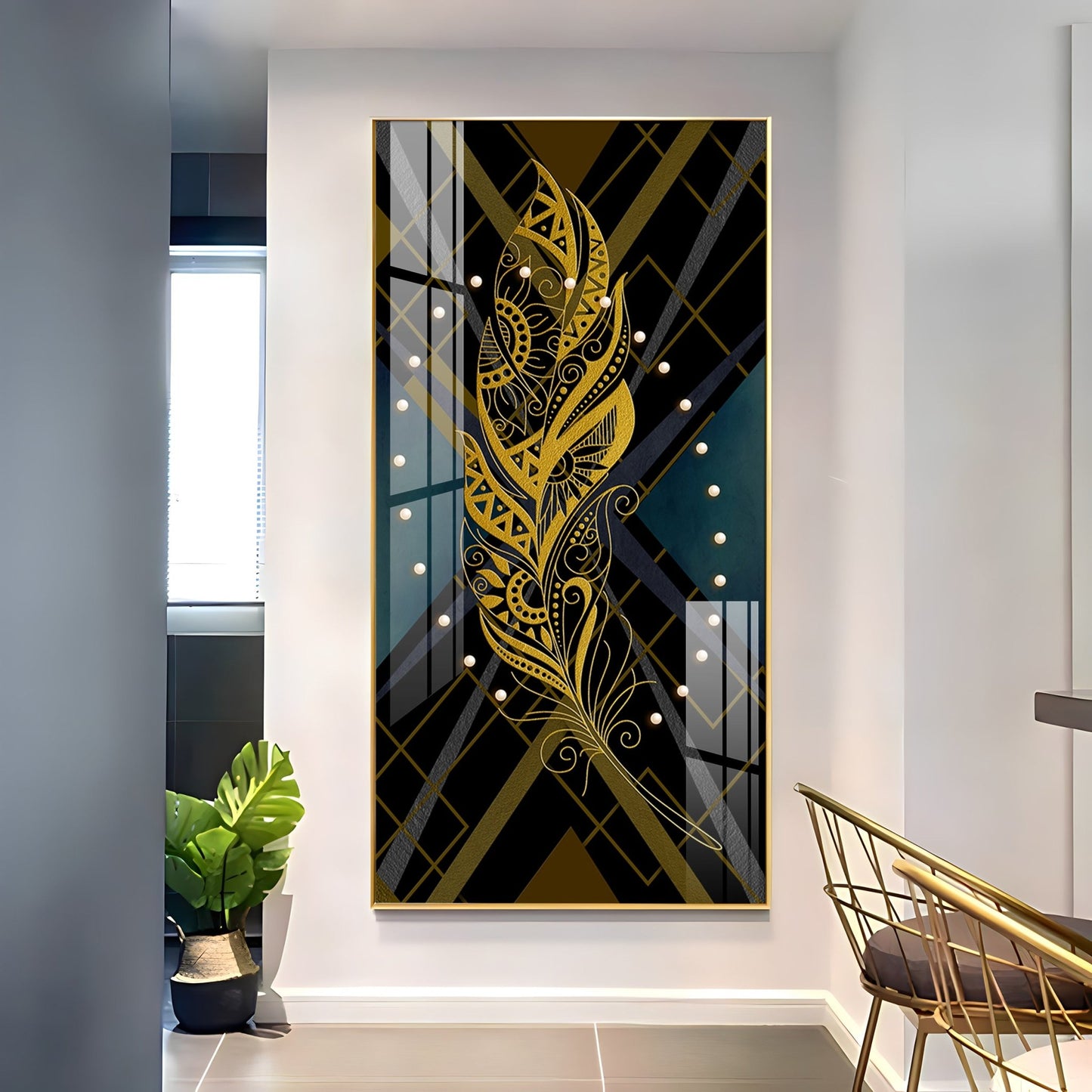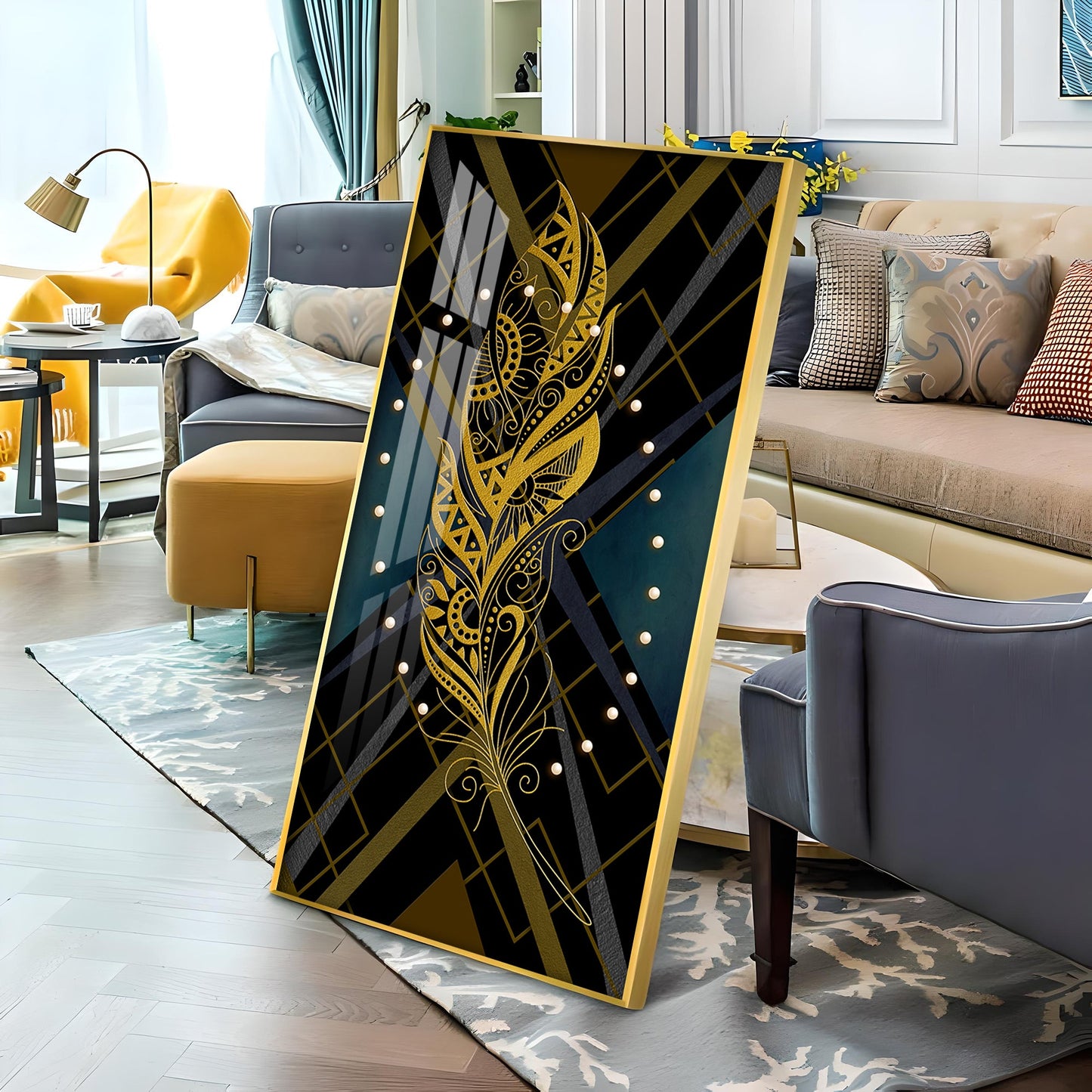 Our Framed Acrylic Wall Art is easy to hang. The metal hooks are included on the corners of your ordered wall art. You can simply mount it to your wall.