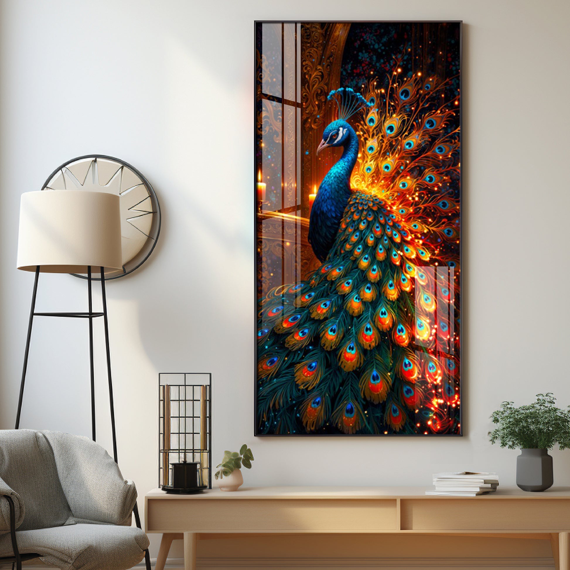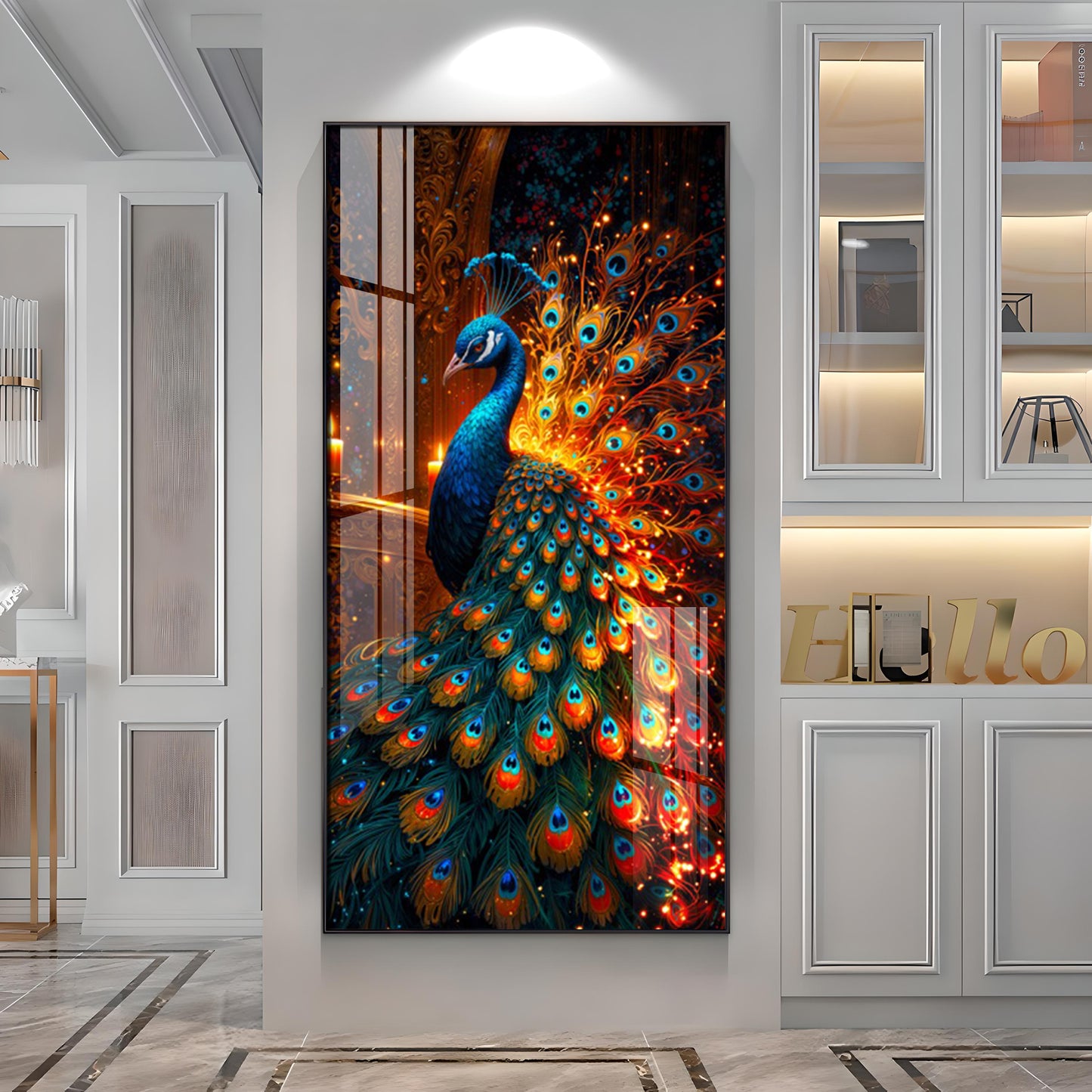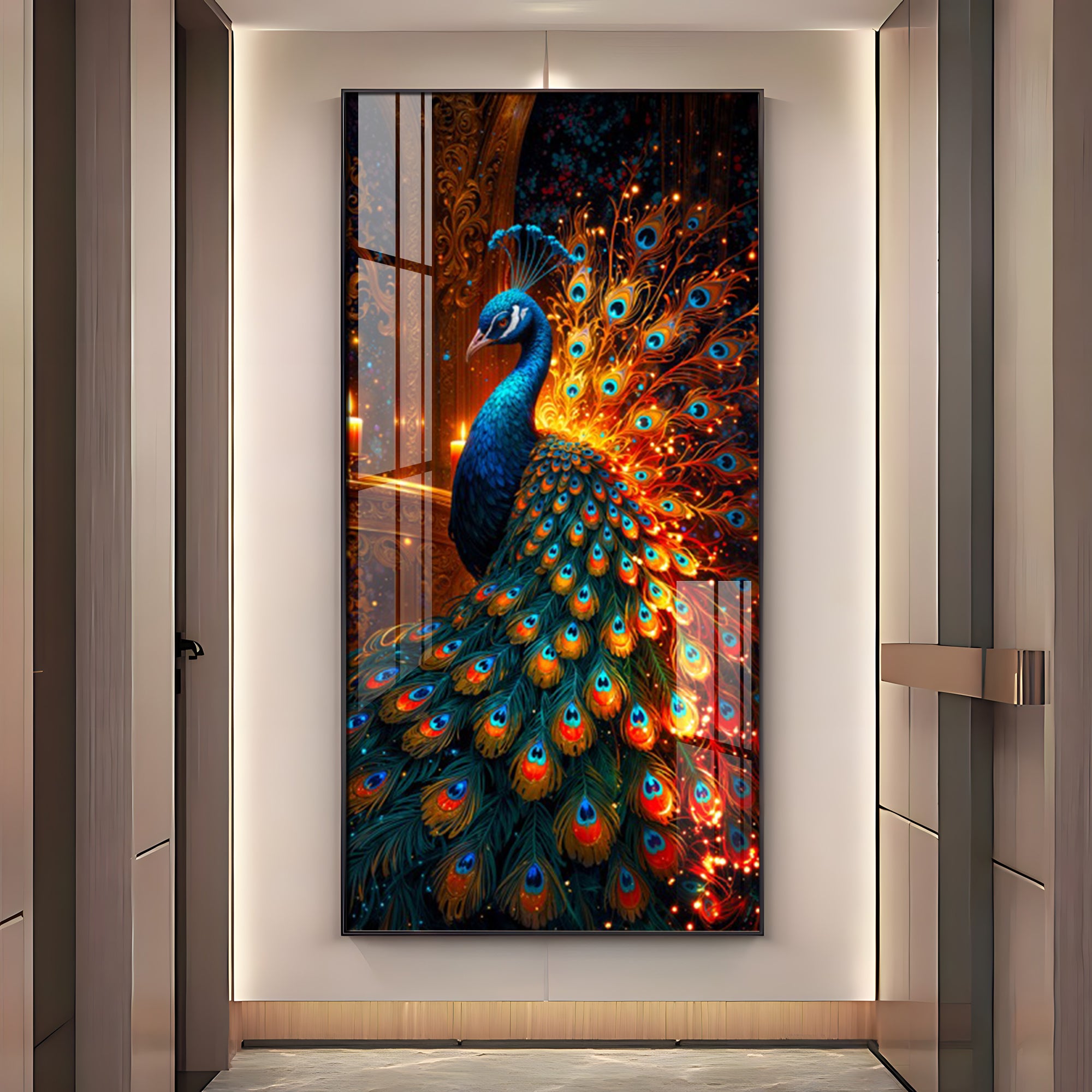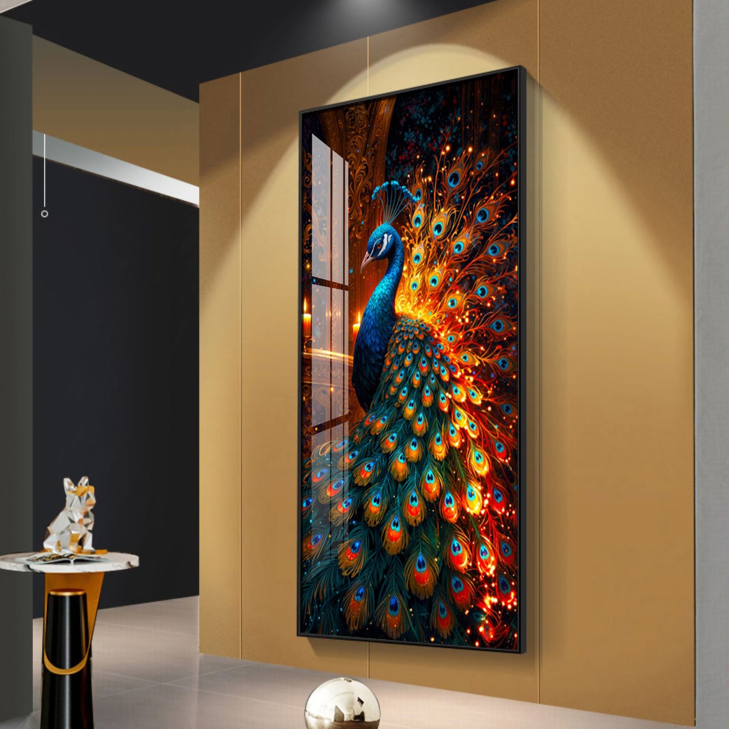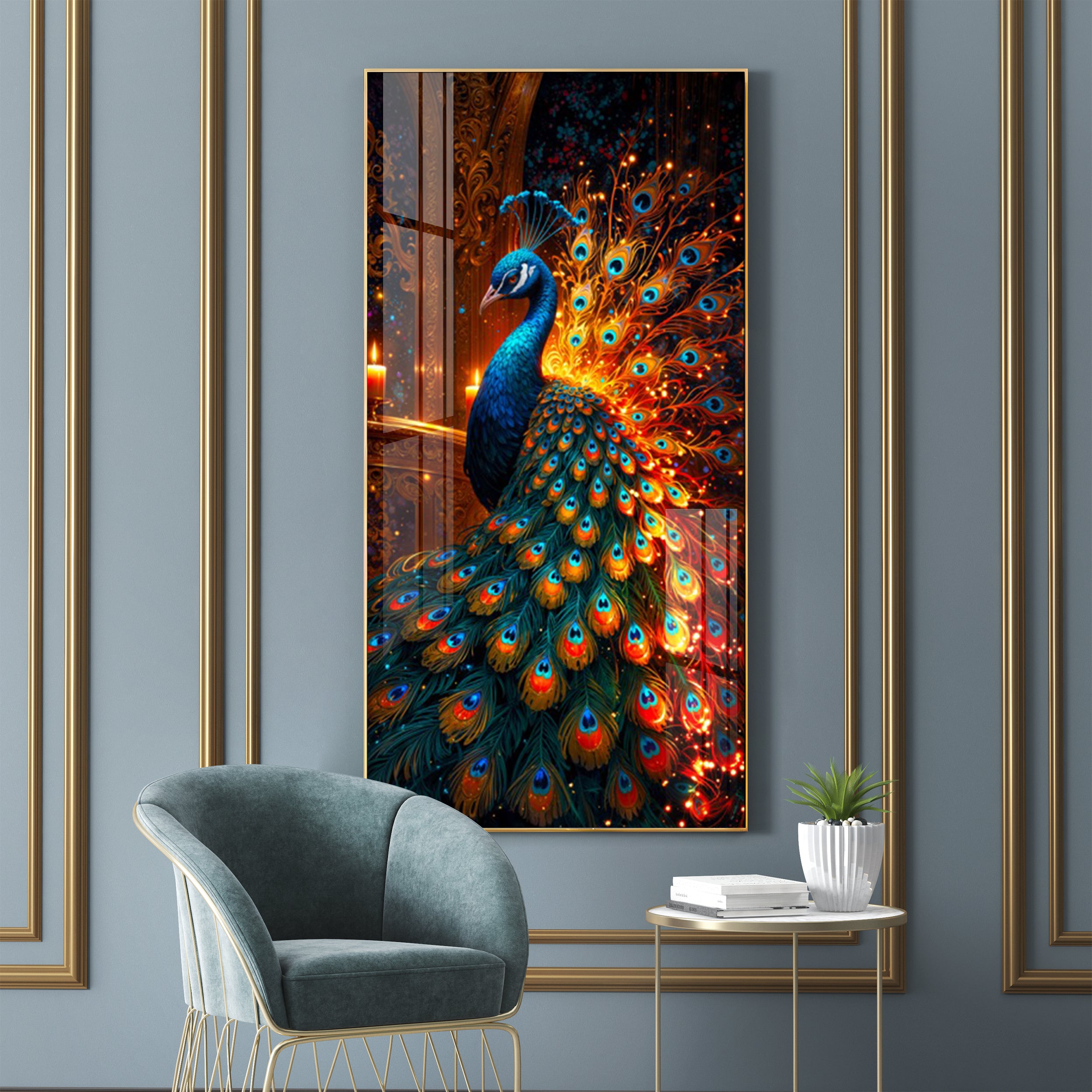 Peacock In Blaze Premium Acrylic Vertical Wall Art