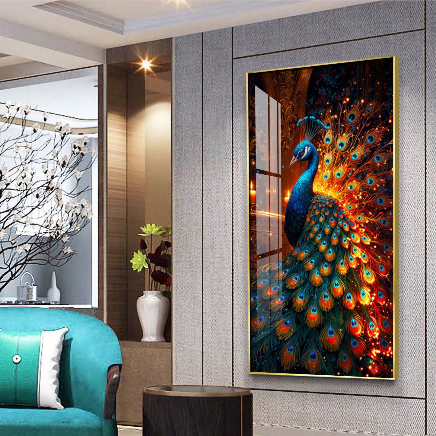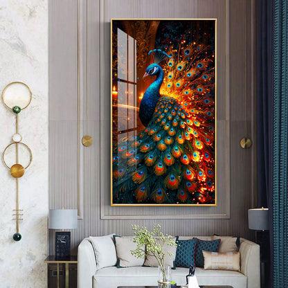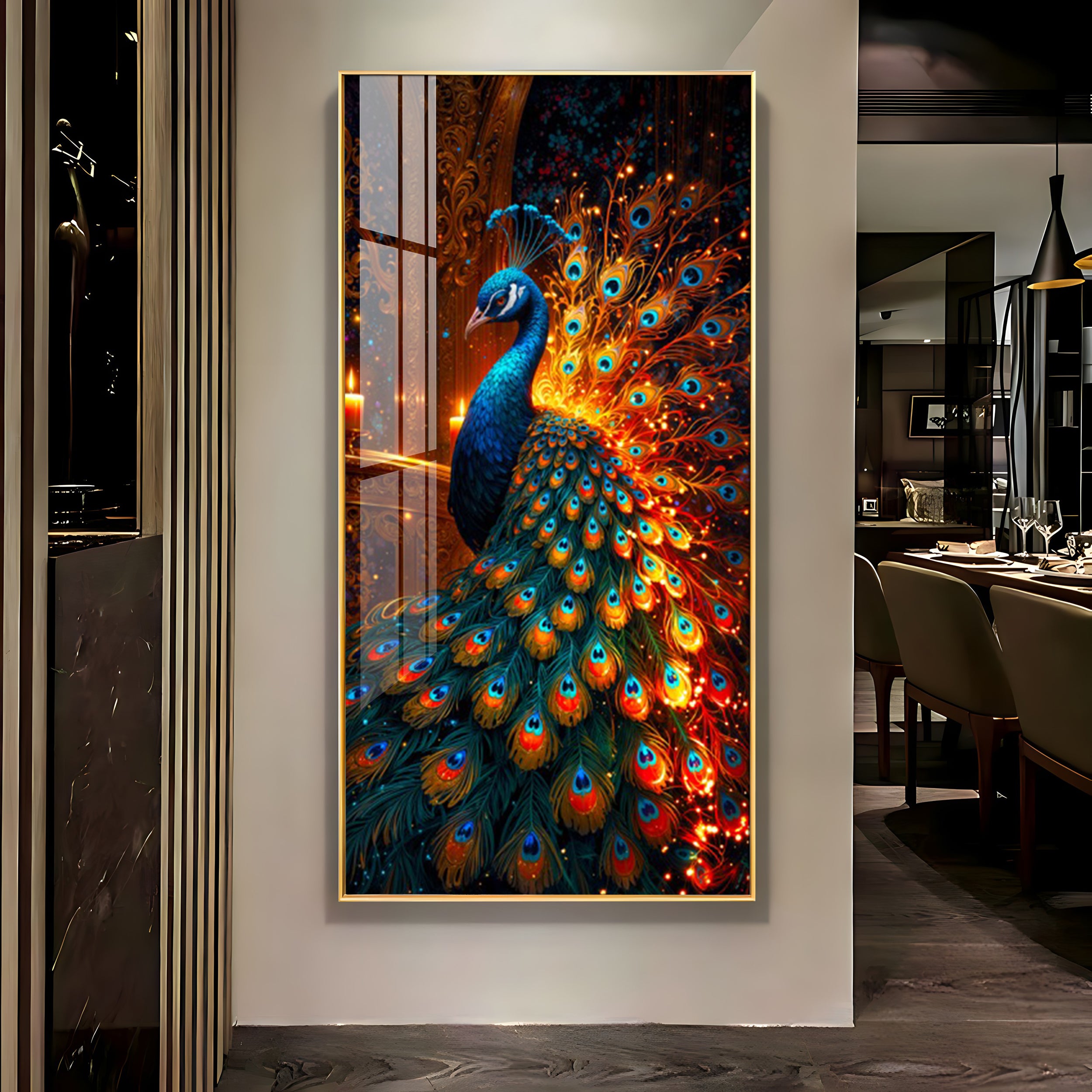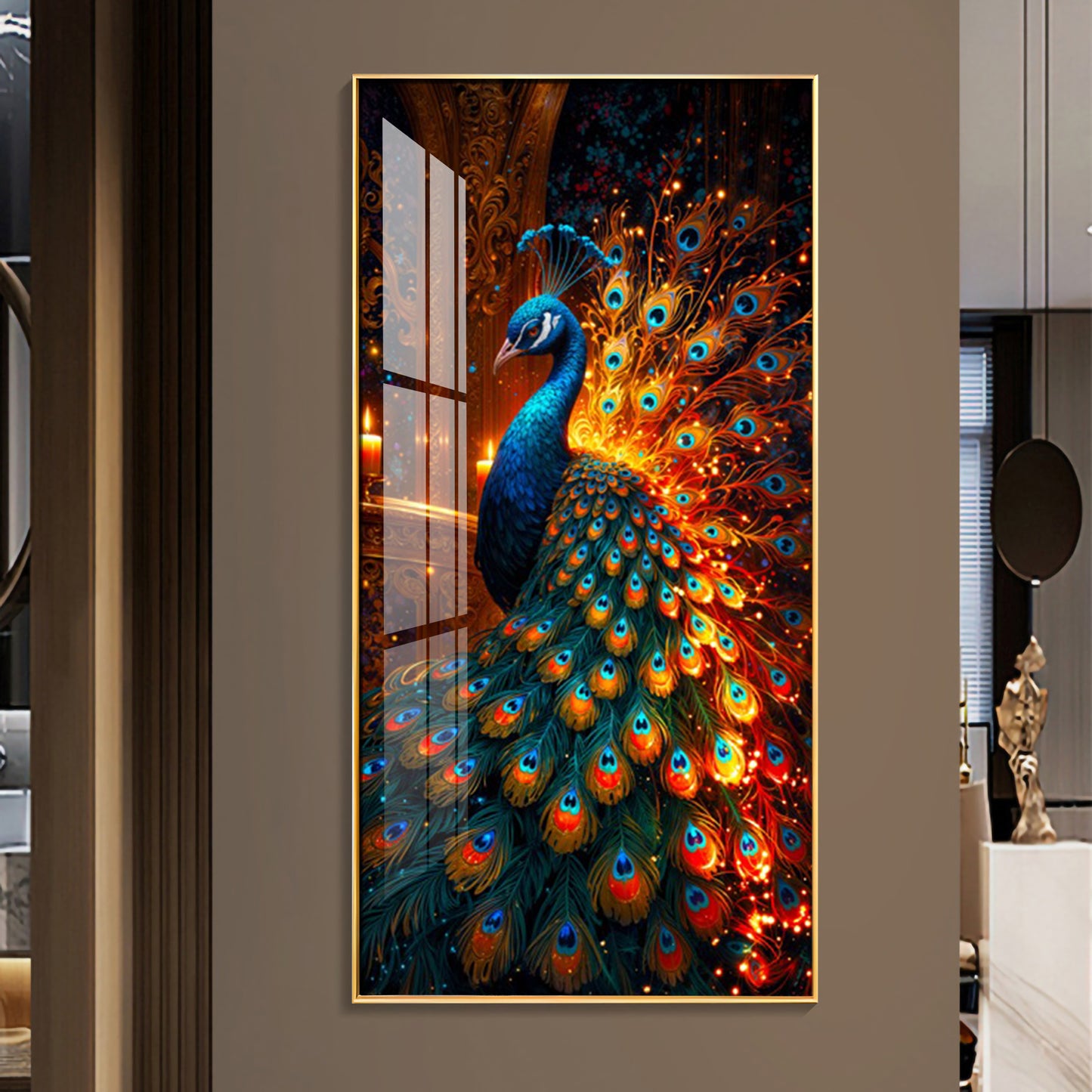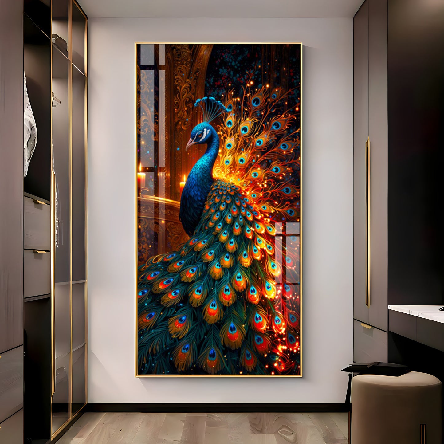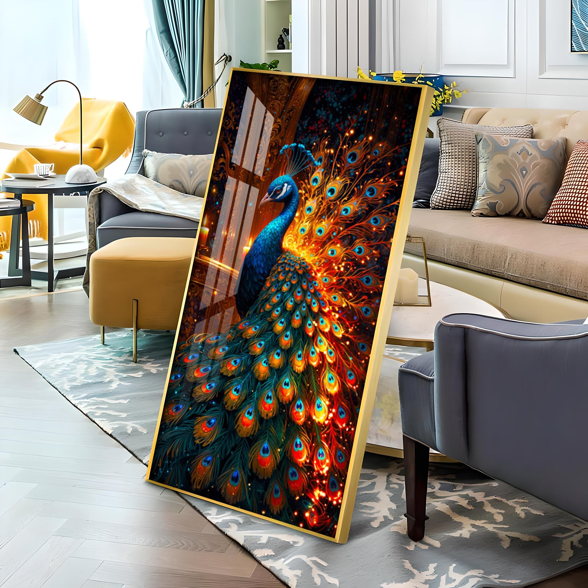 Peacock In Blaze Premium Acrylic Vertical Wall Art