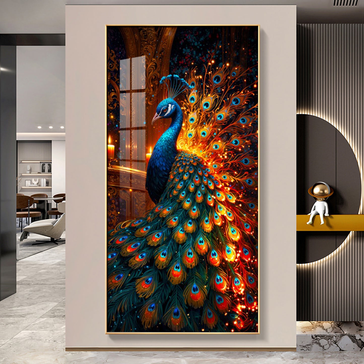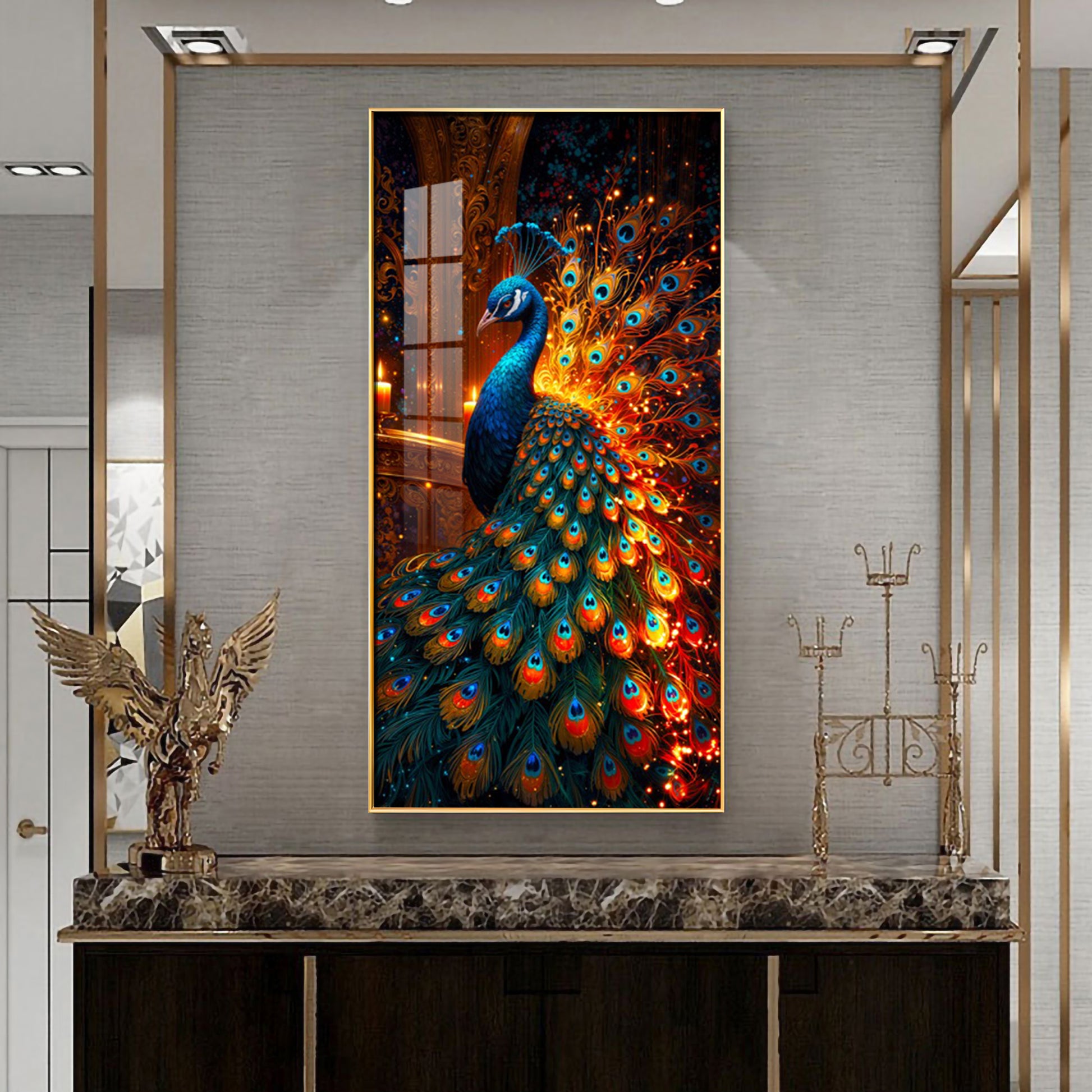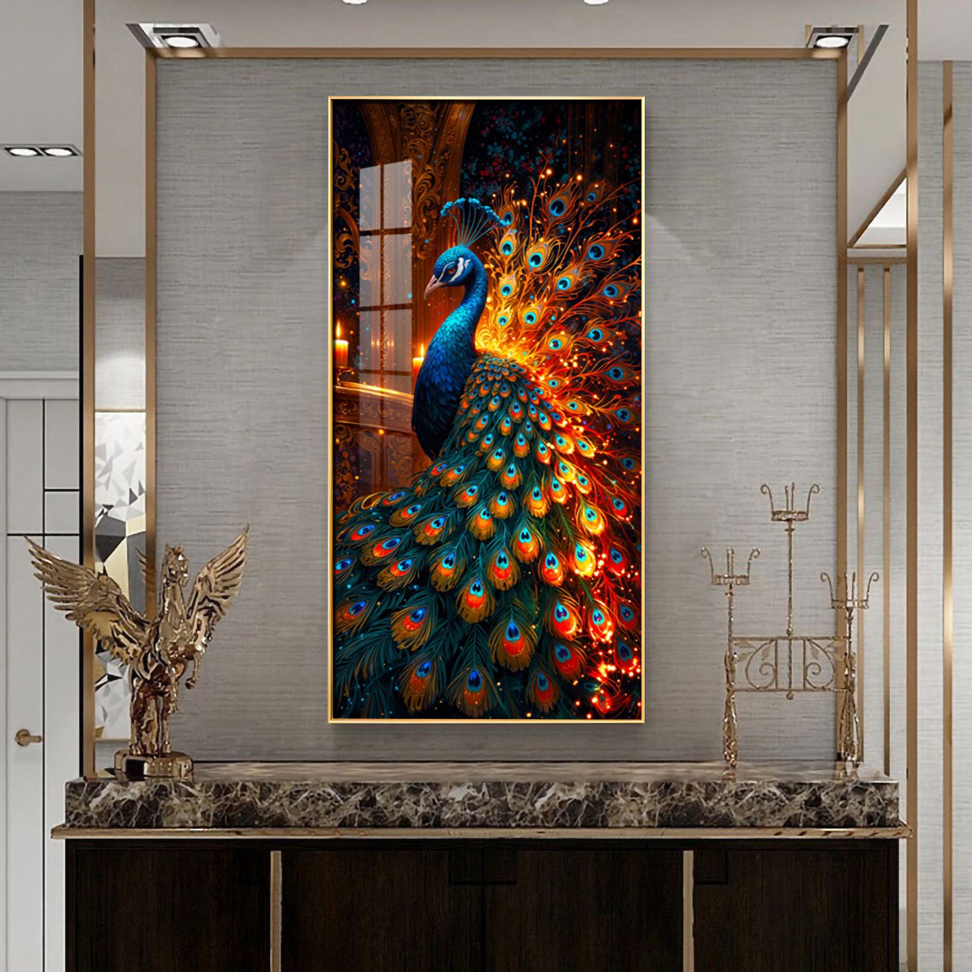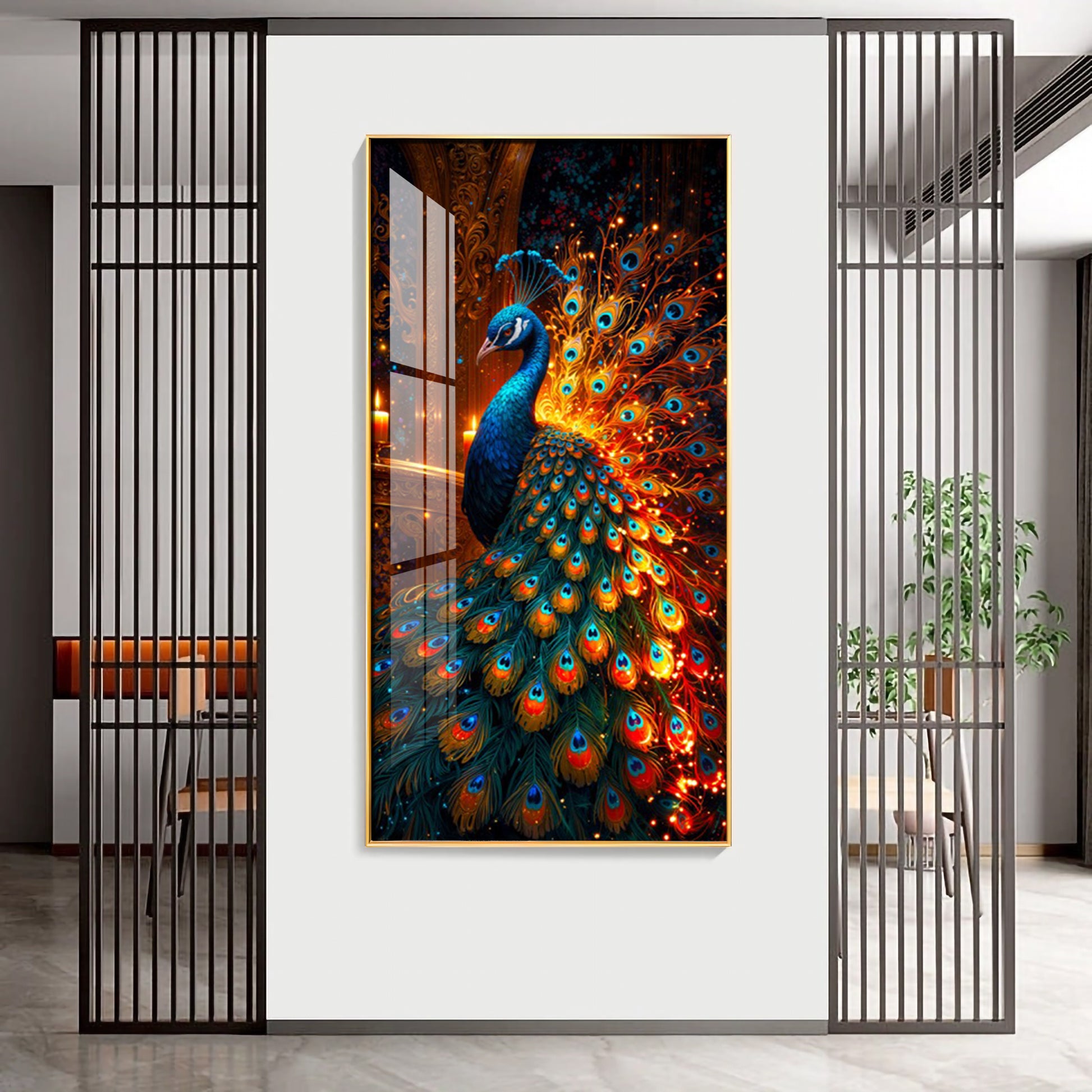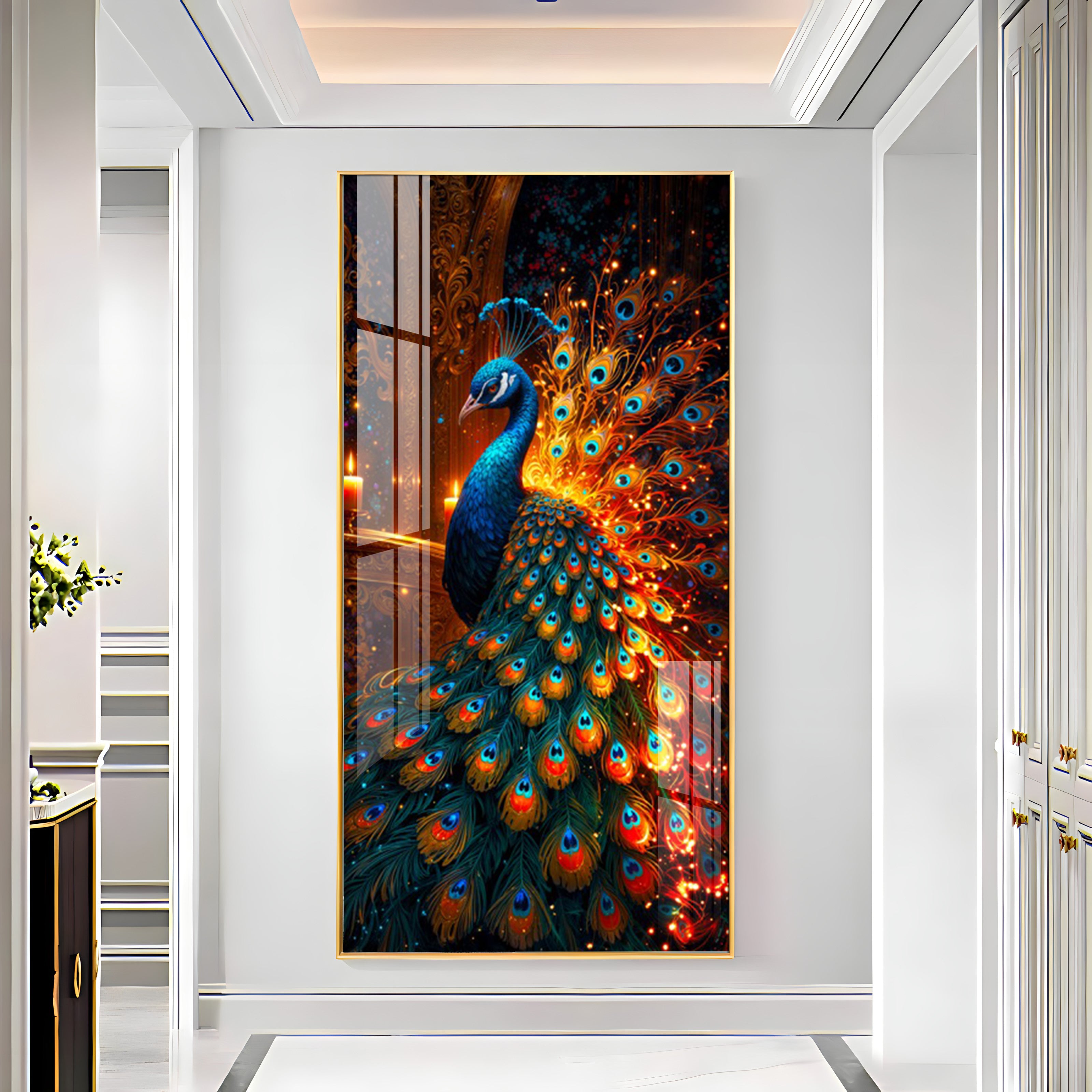Peacock In Blaze Premium Acrylic Vertical Wall Art