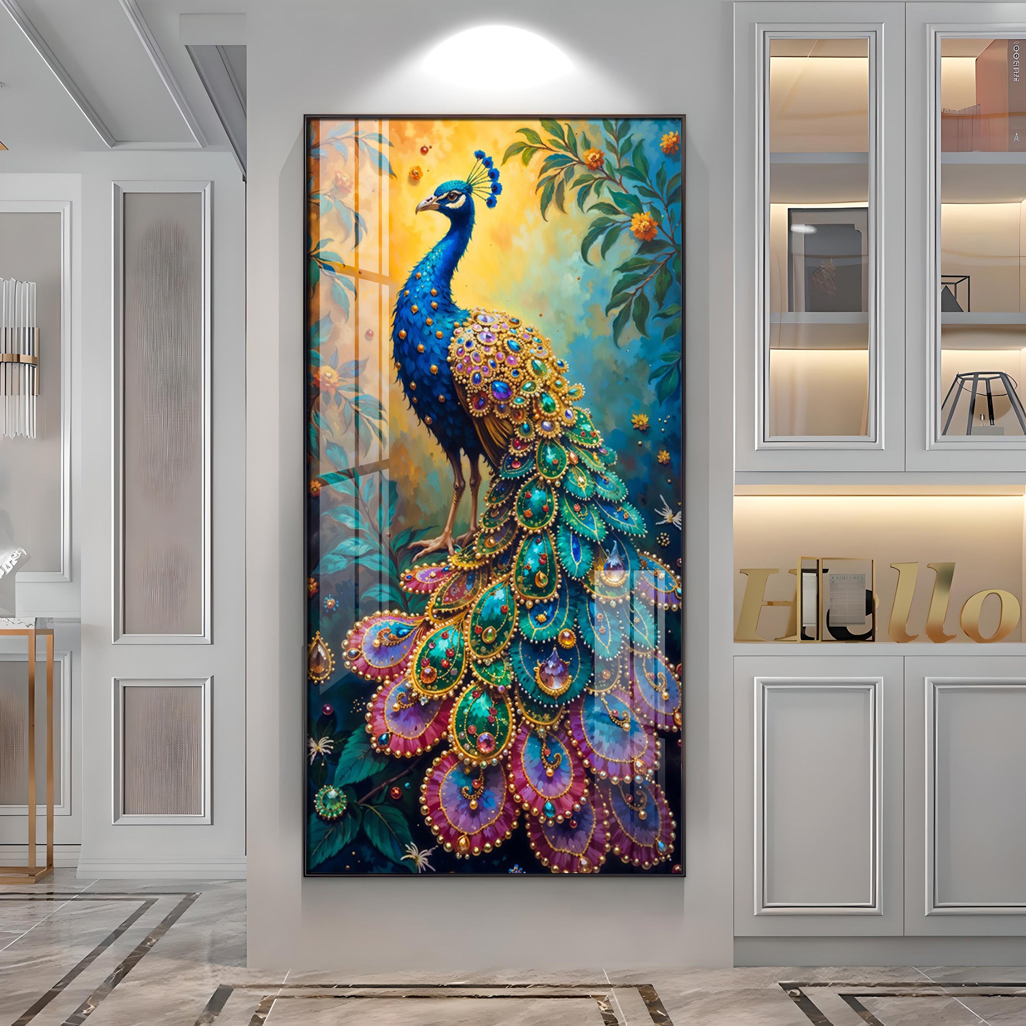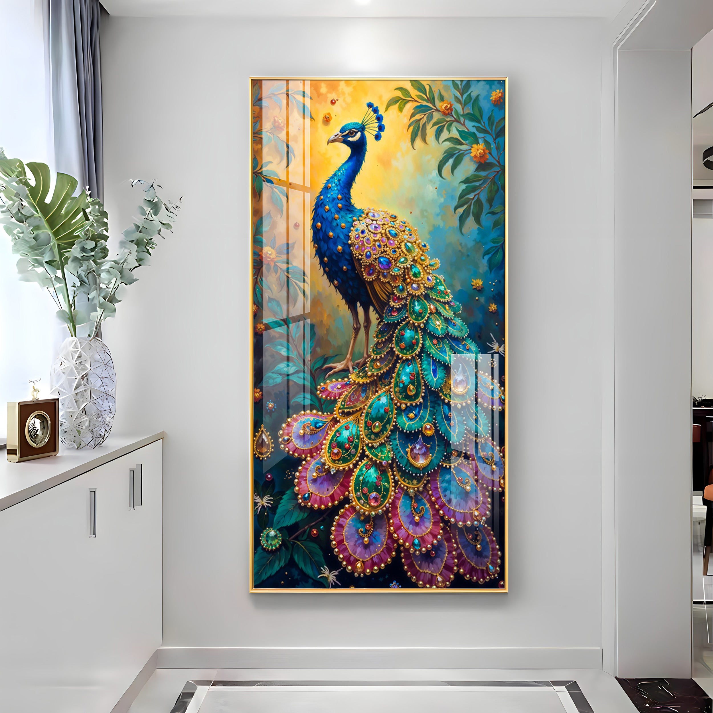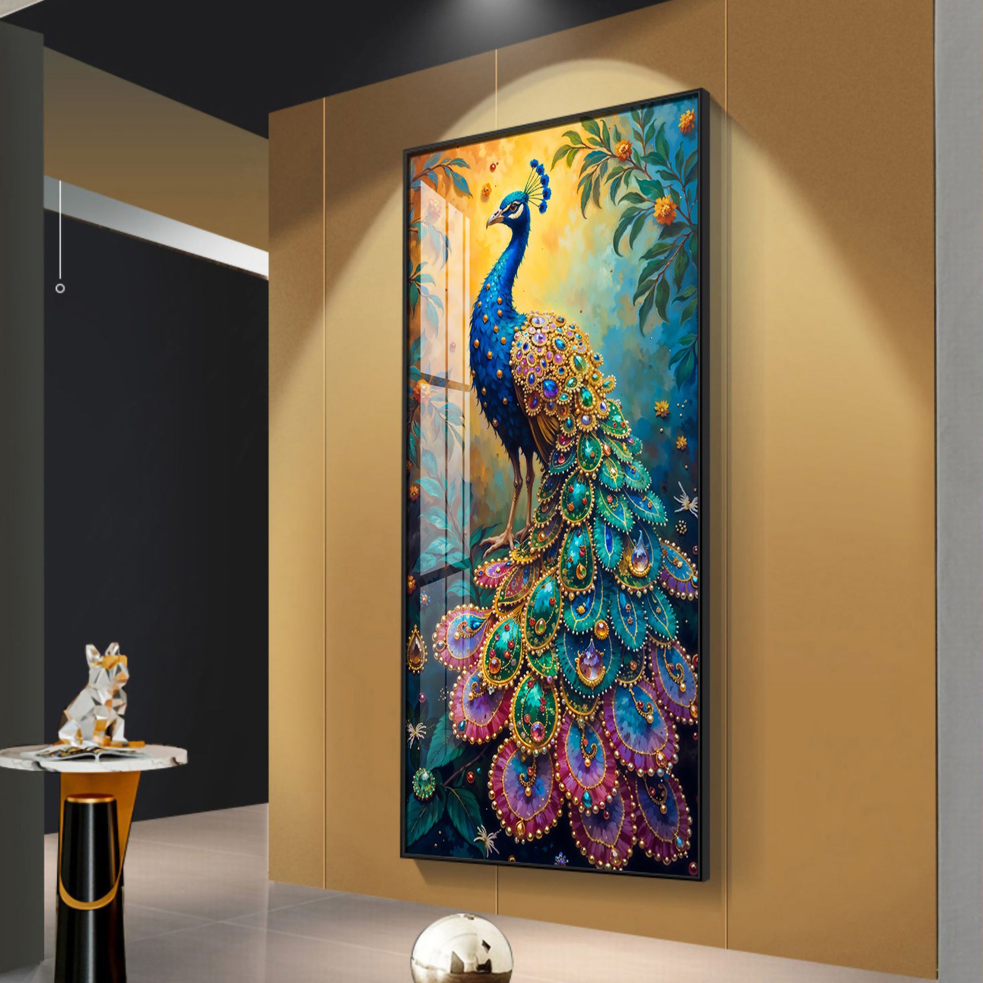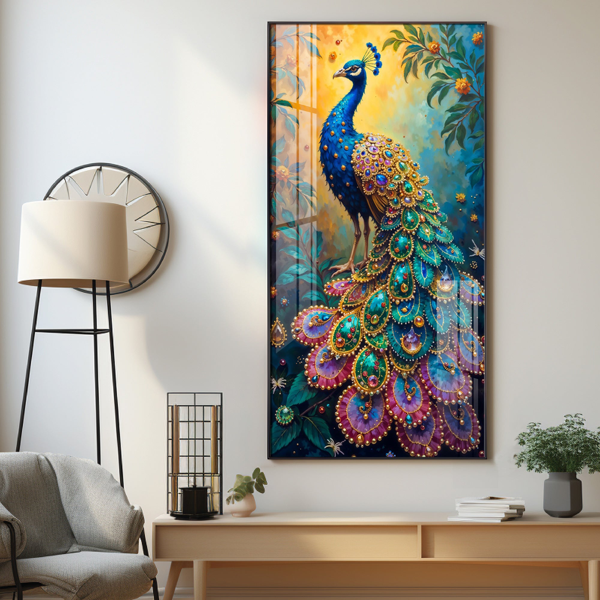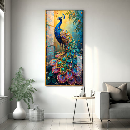 Peacock In Sunrise Premium Acrylic Vertical Wall Art
