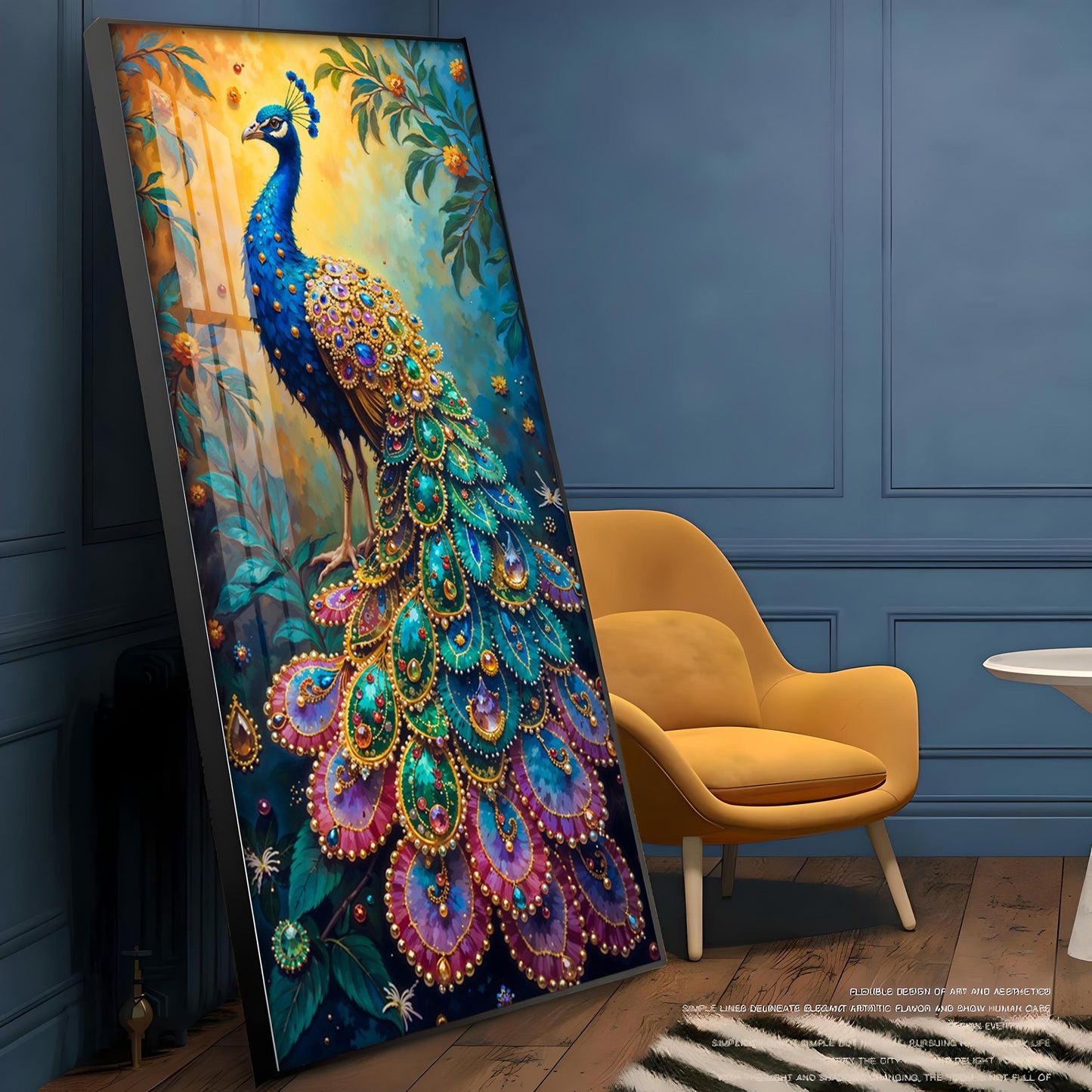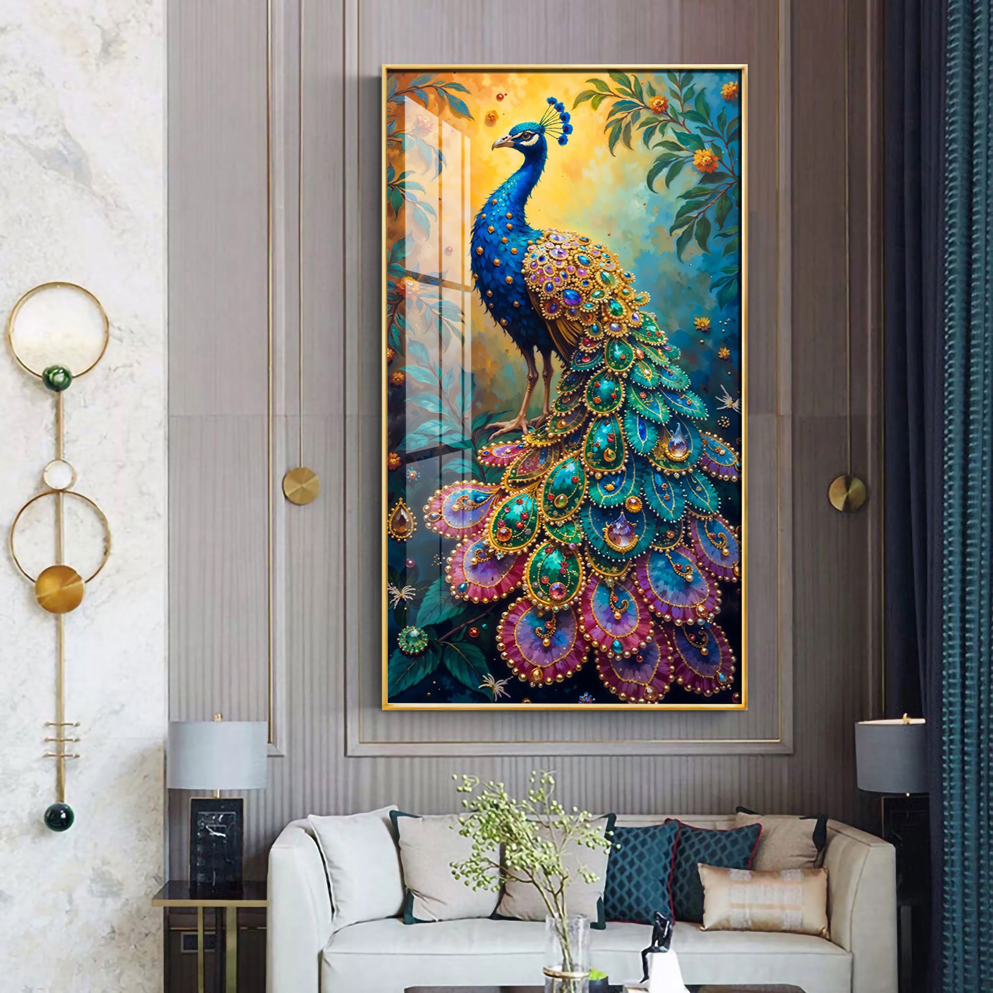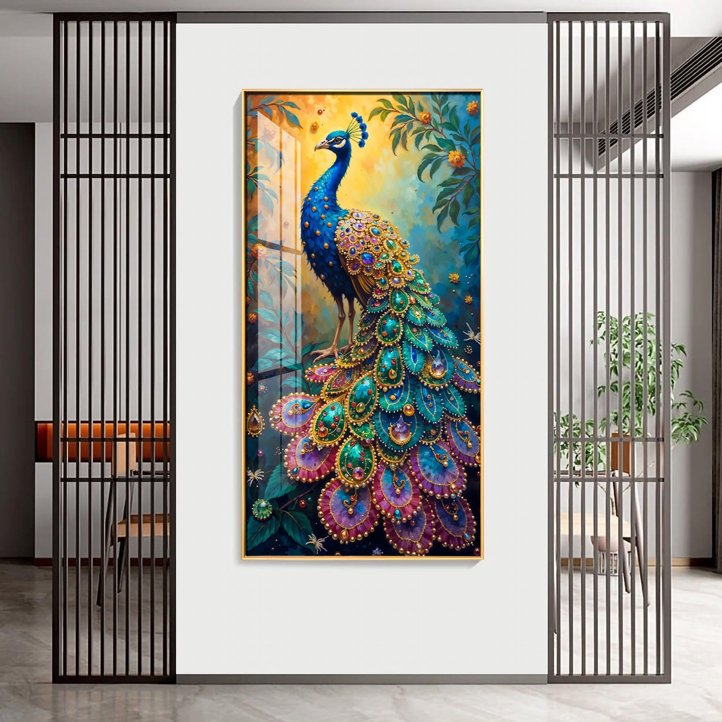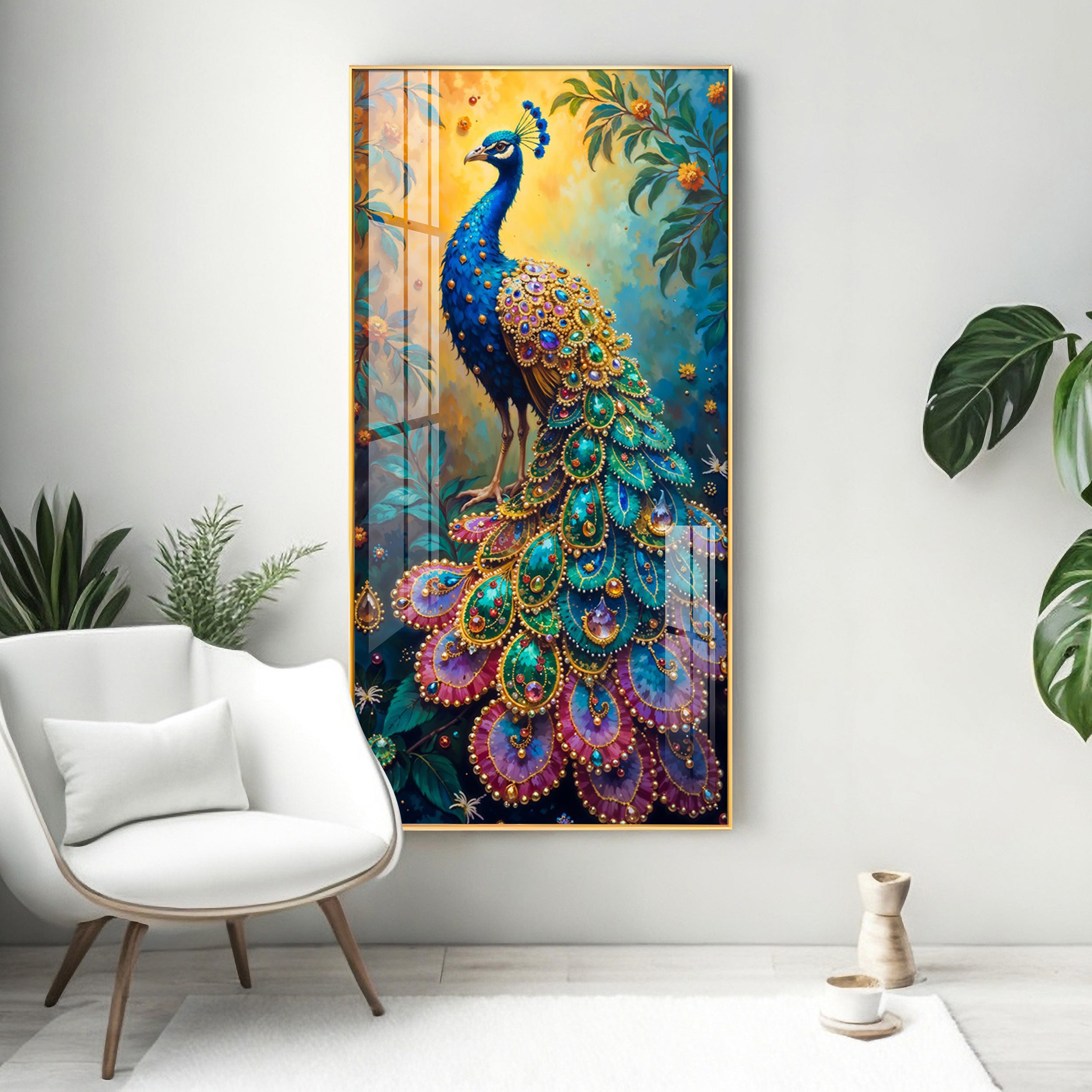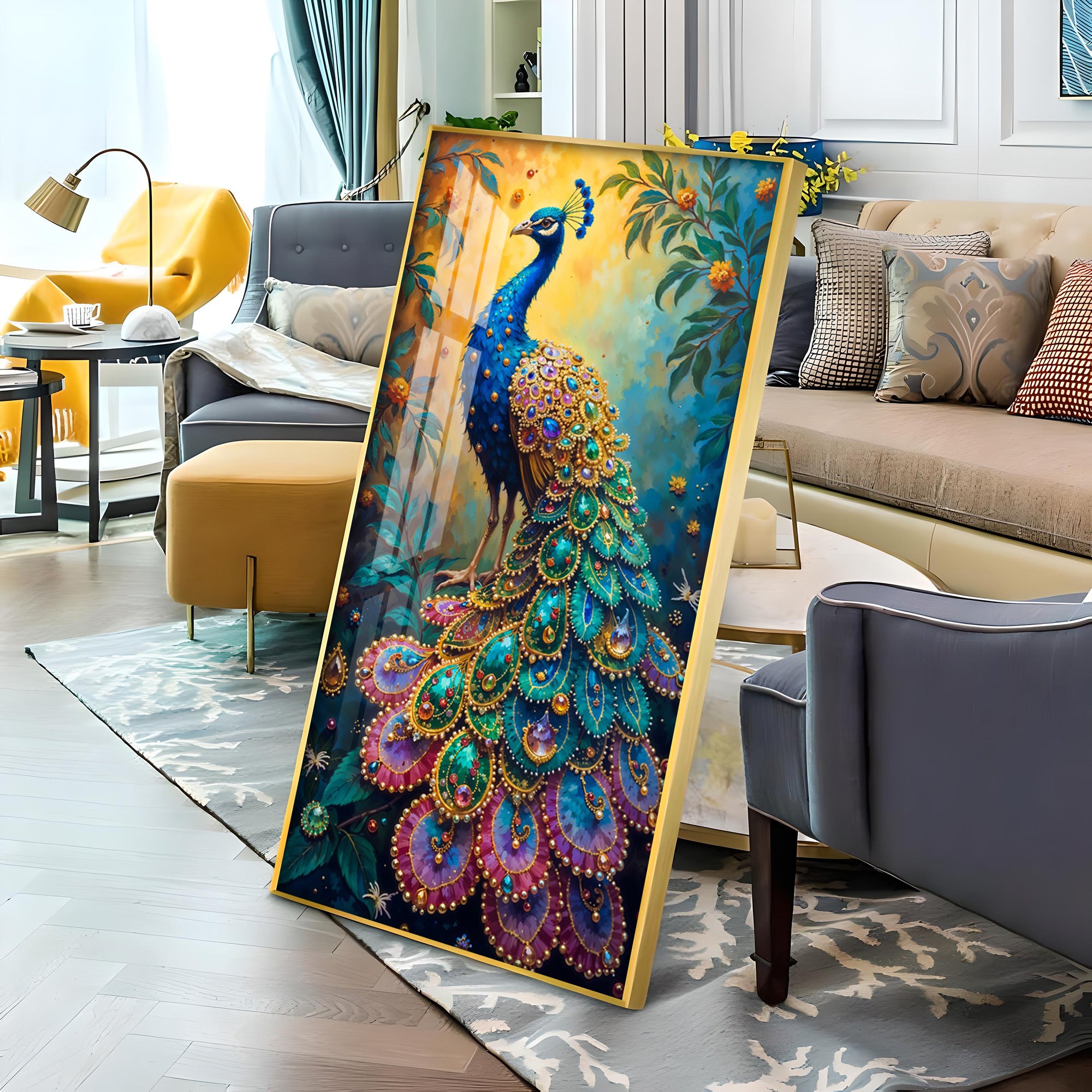 Peacock In Sunrise Premium Acrylic Vertical Wall Art