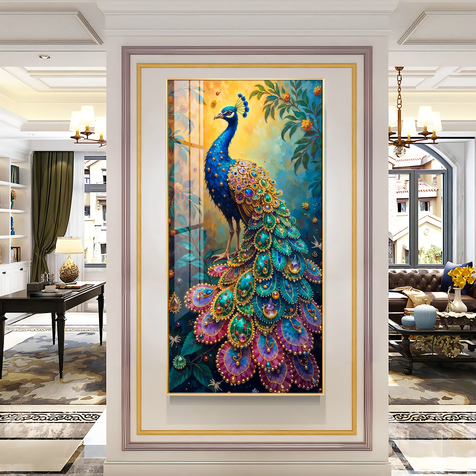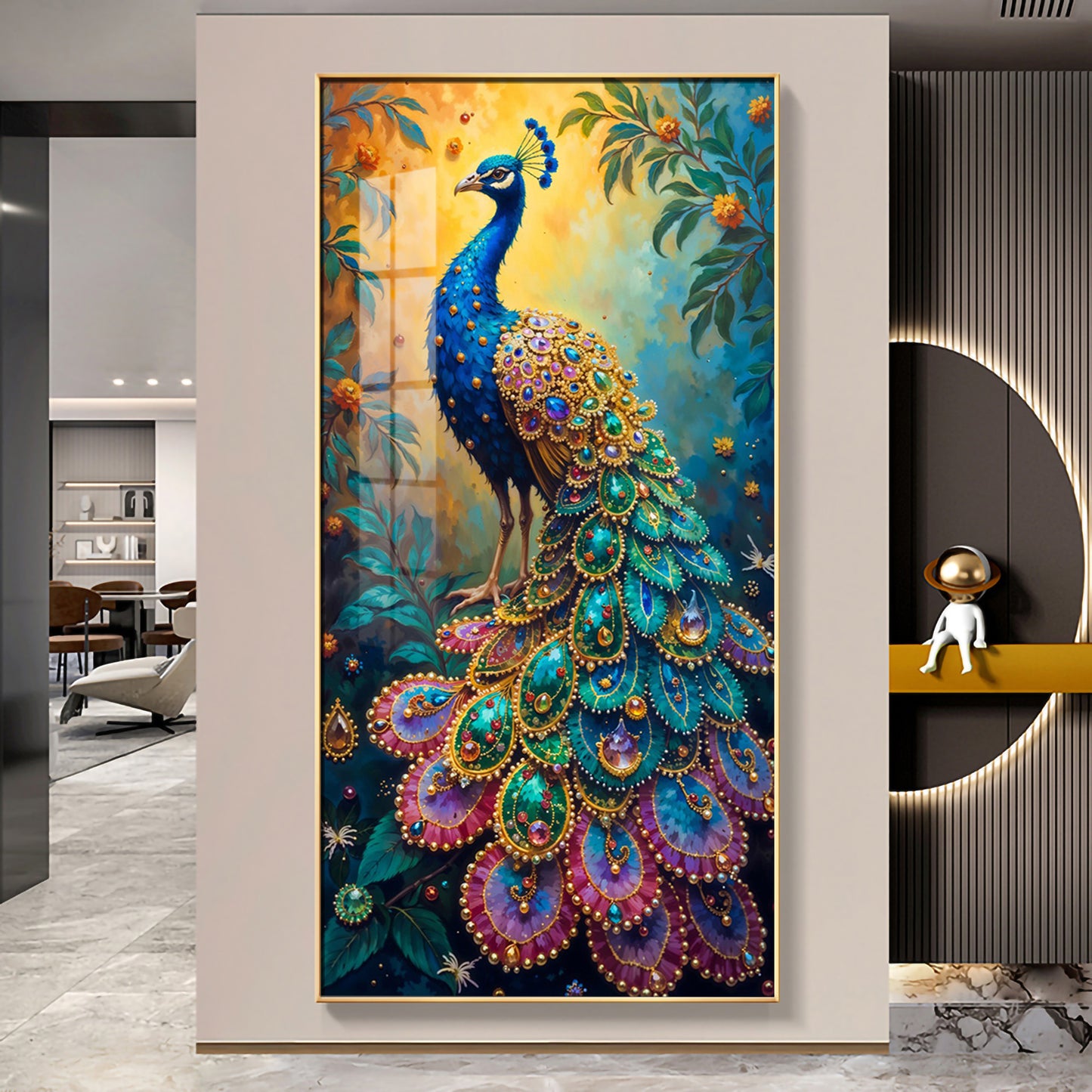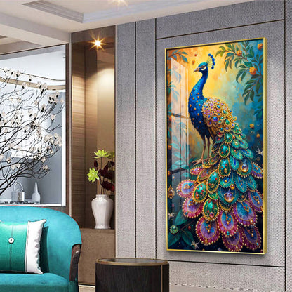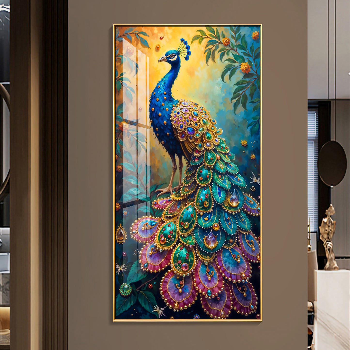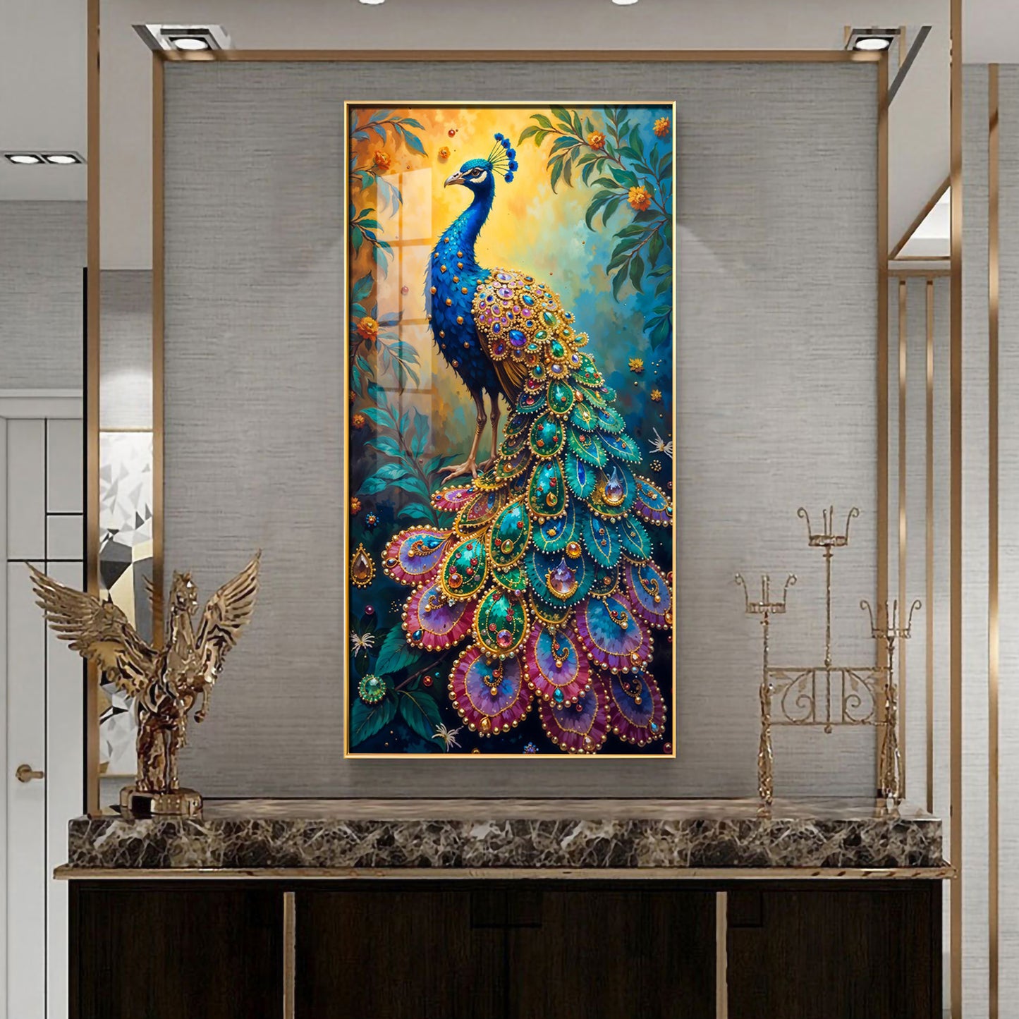Peacock In Sunrise Premium Acrylic Vertical Wall Art