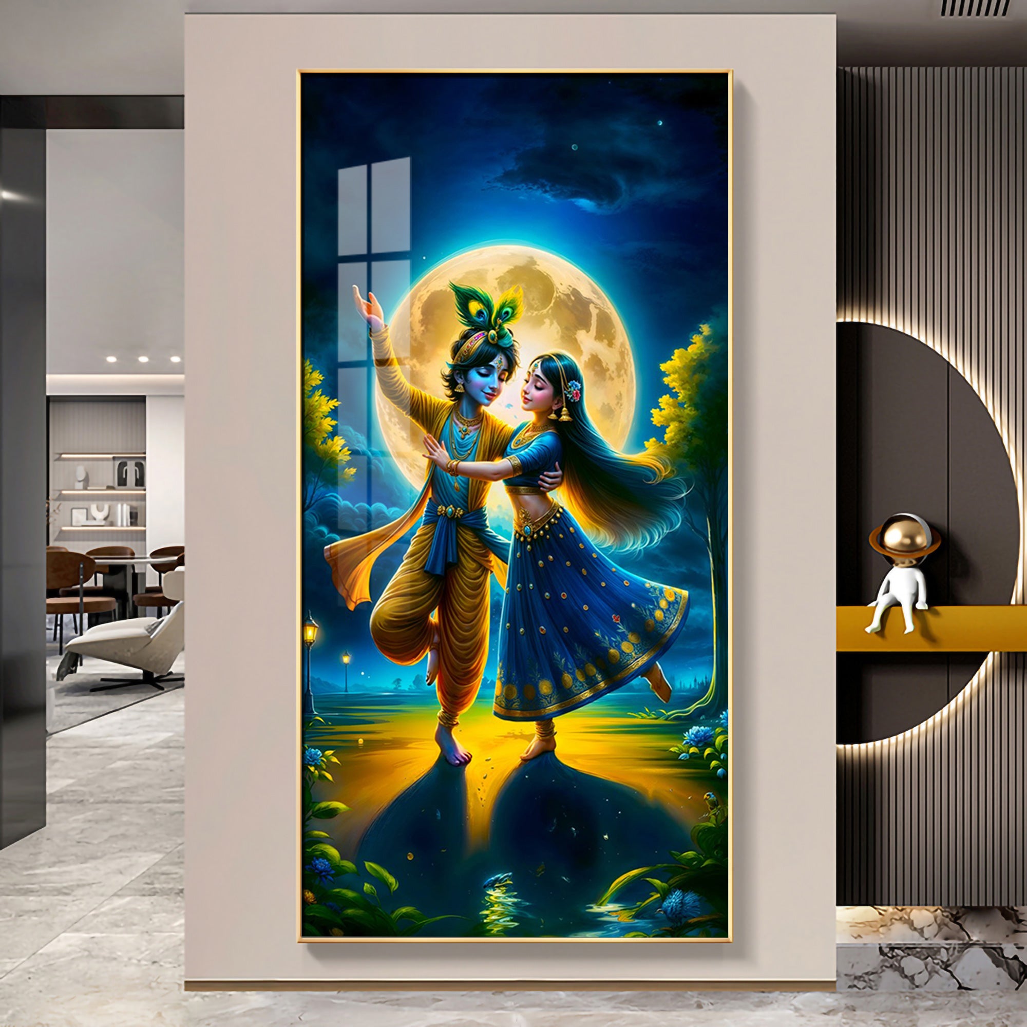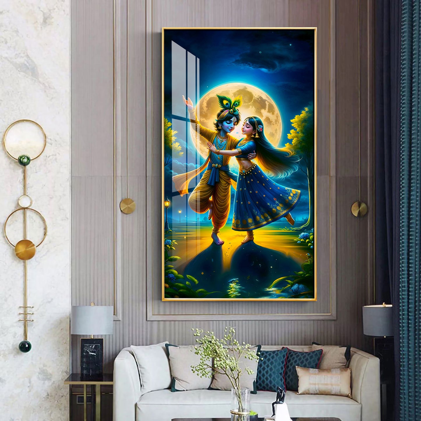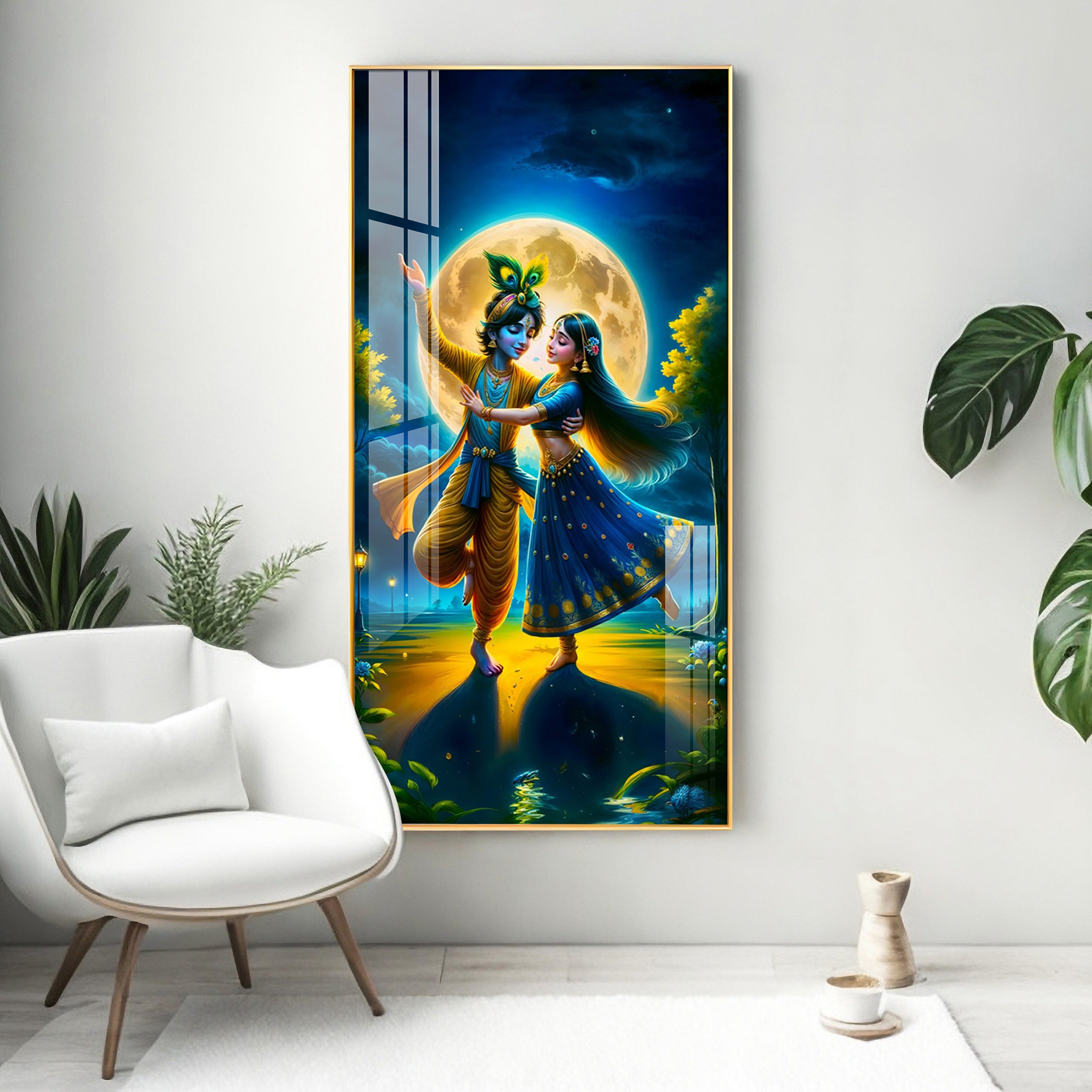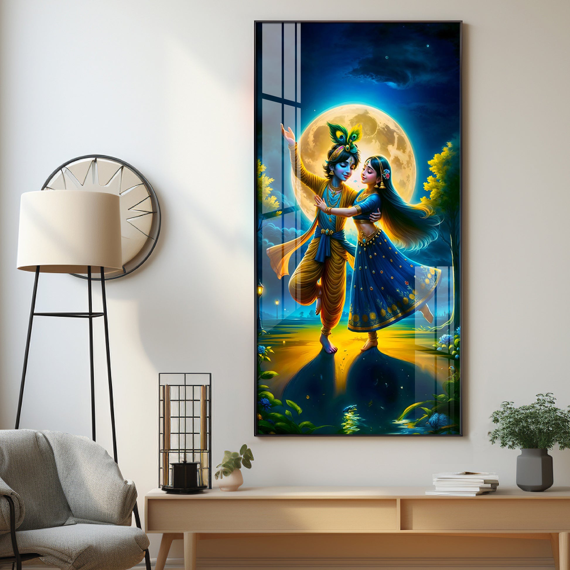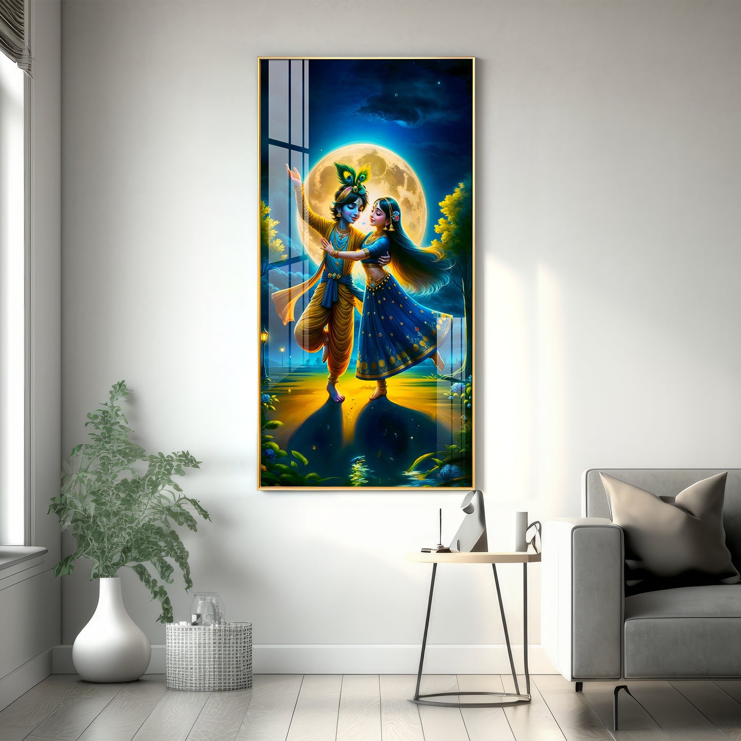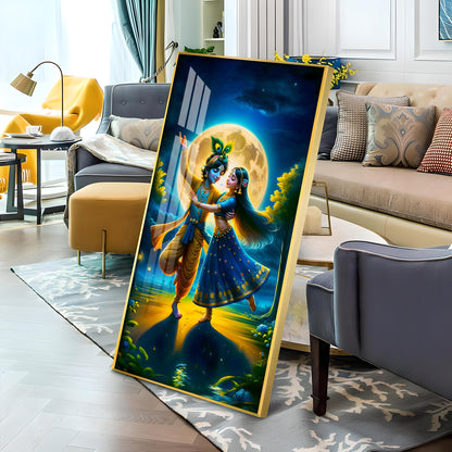 Radha Krishna Dancing Premium Acrylic Vertical Wall Art