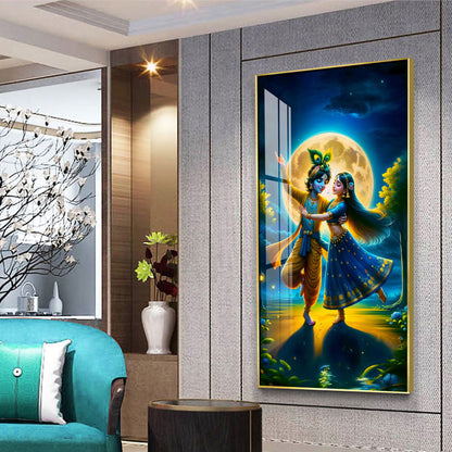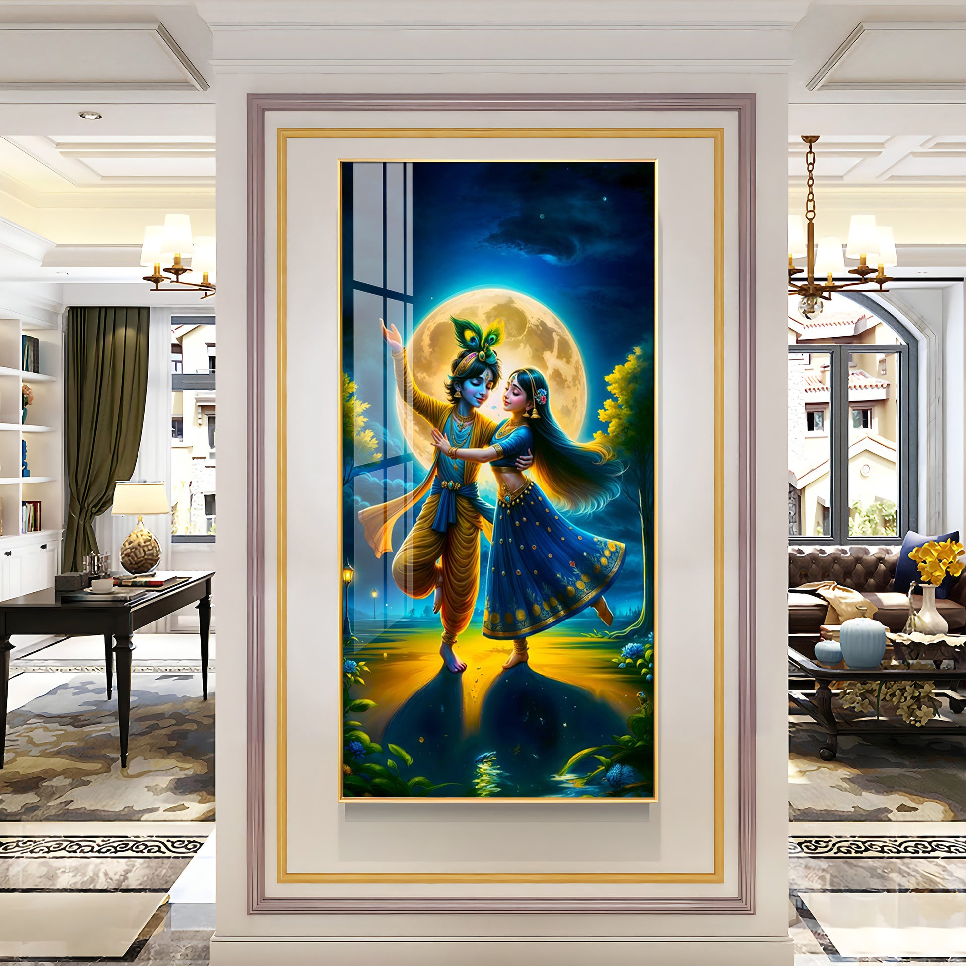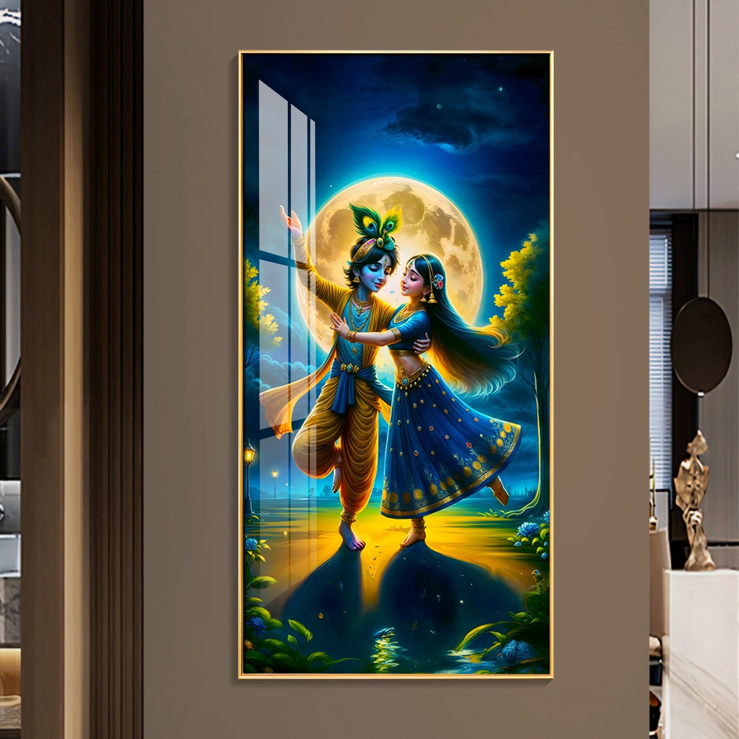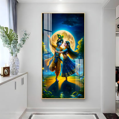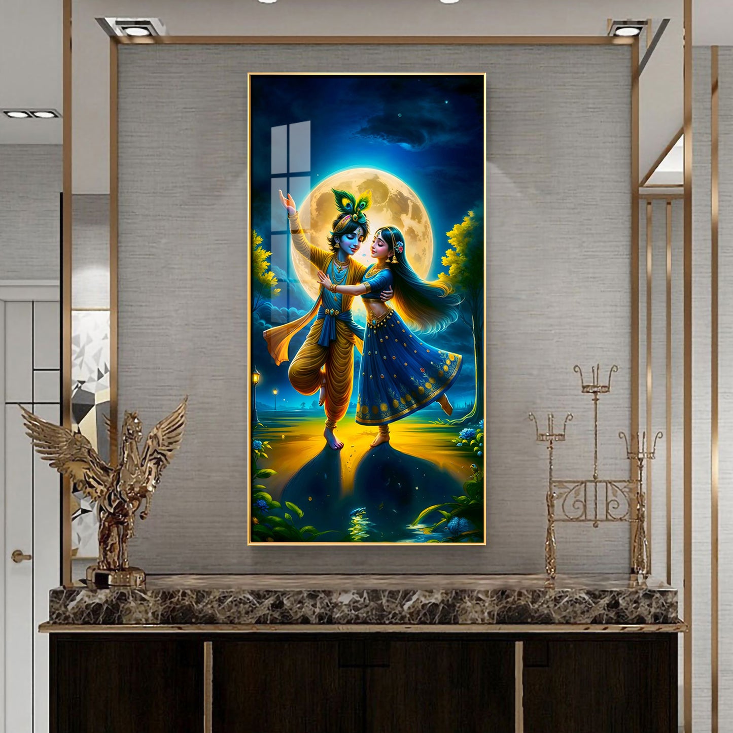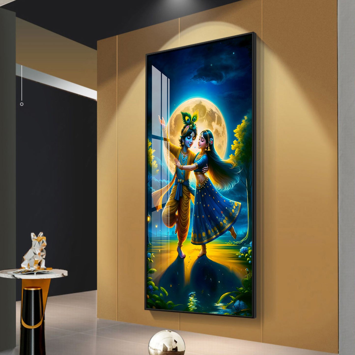 Radha Krishna Dancing Premium Acrylic Vertical Wall Art