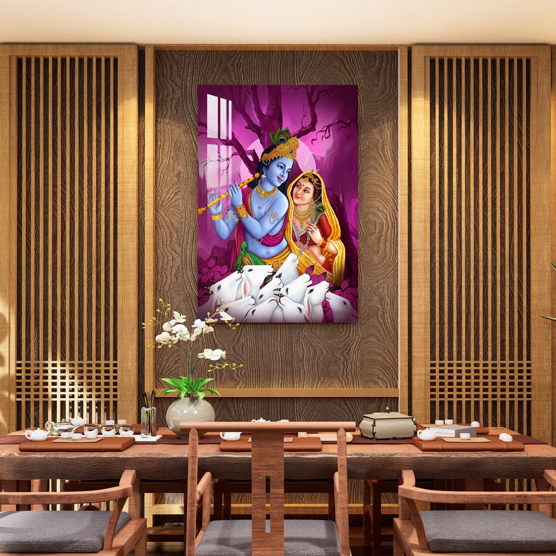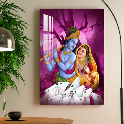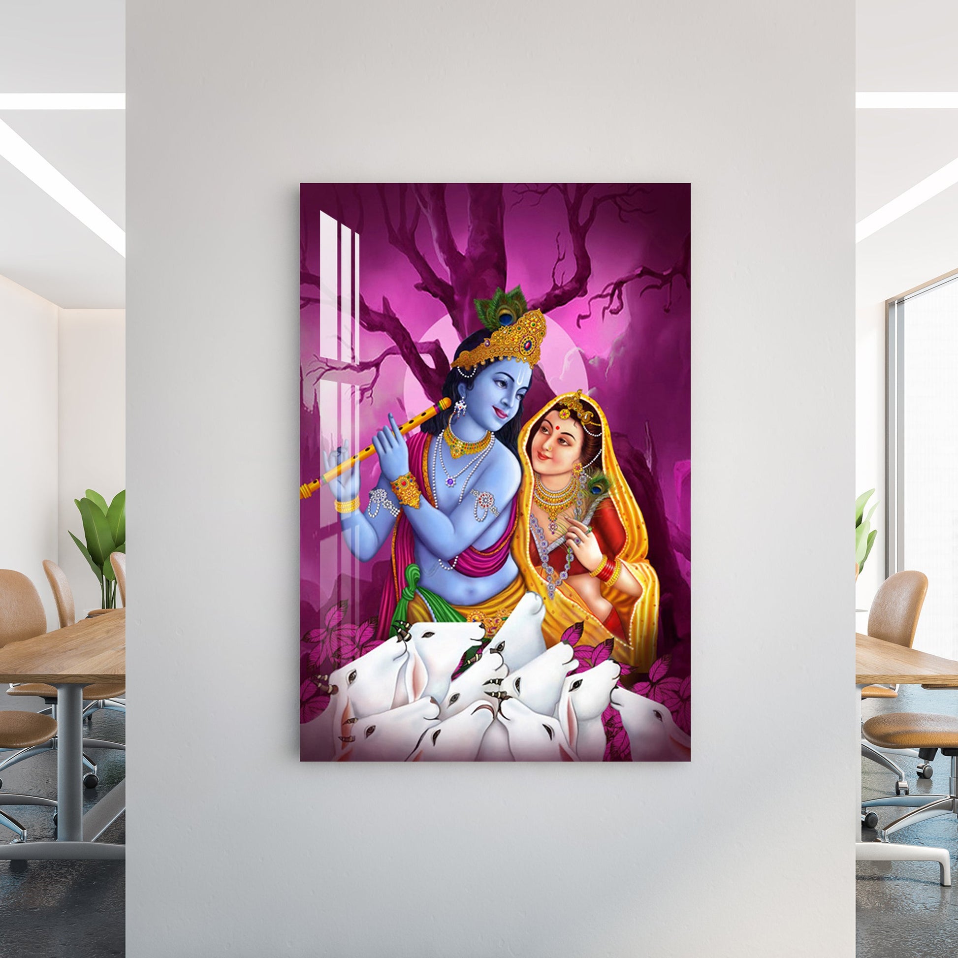 Radha Krishna in Gokul Acrylic Wall Art - 29.5X20 inches / 3MM