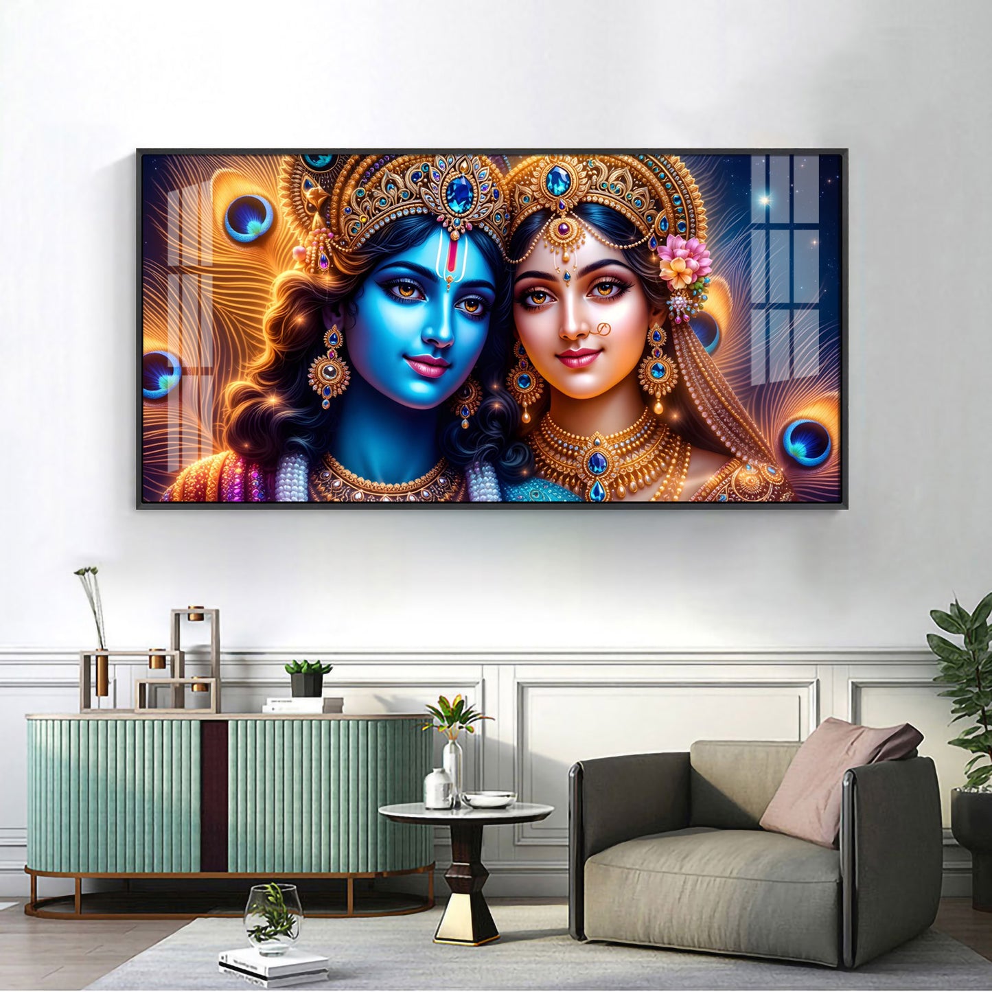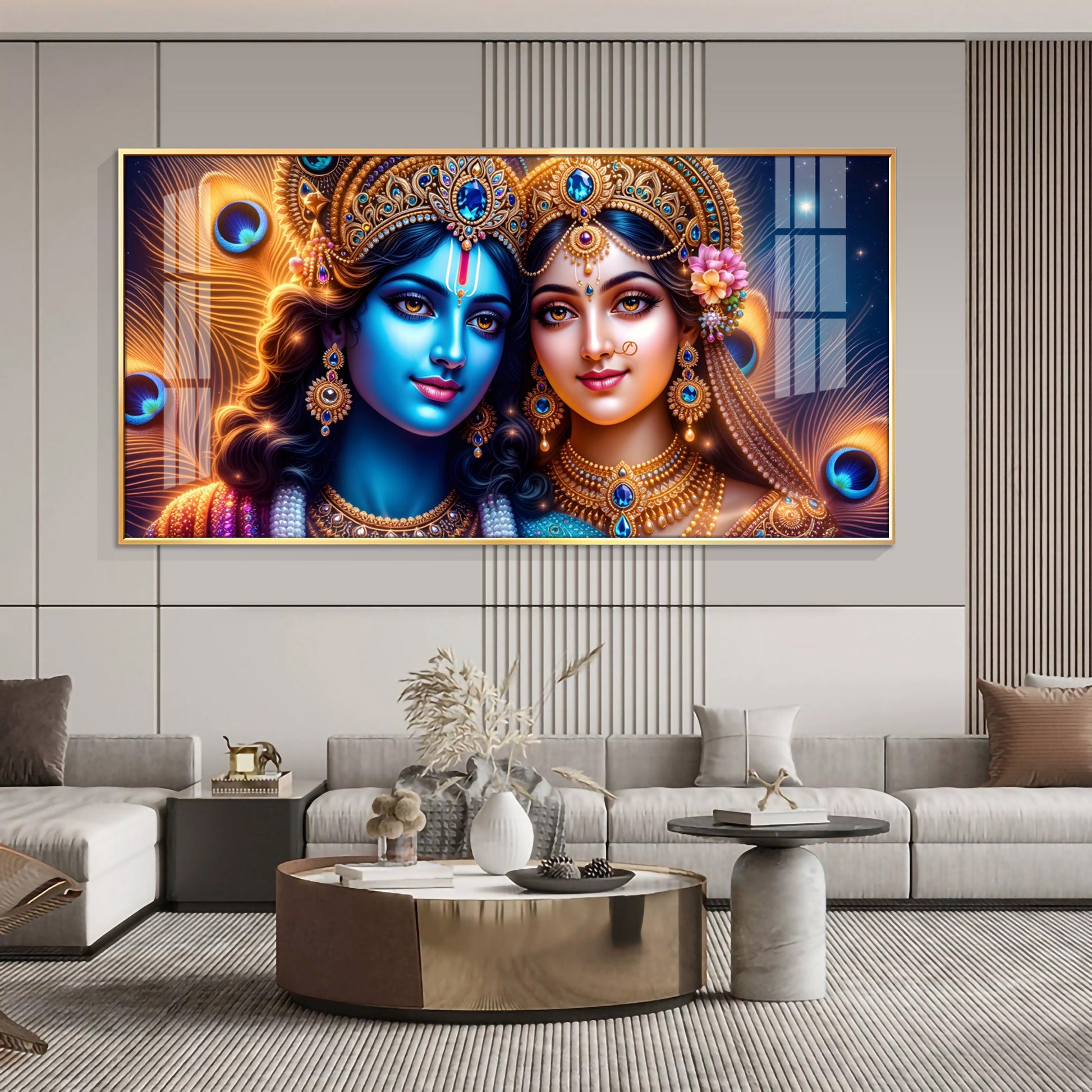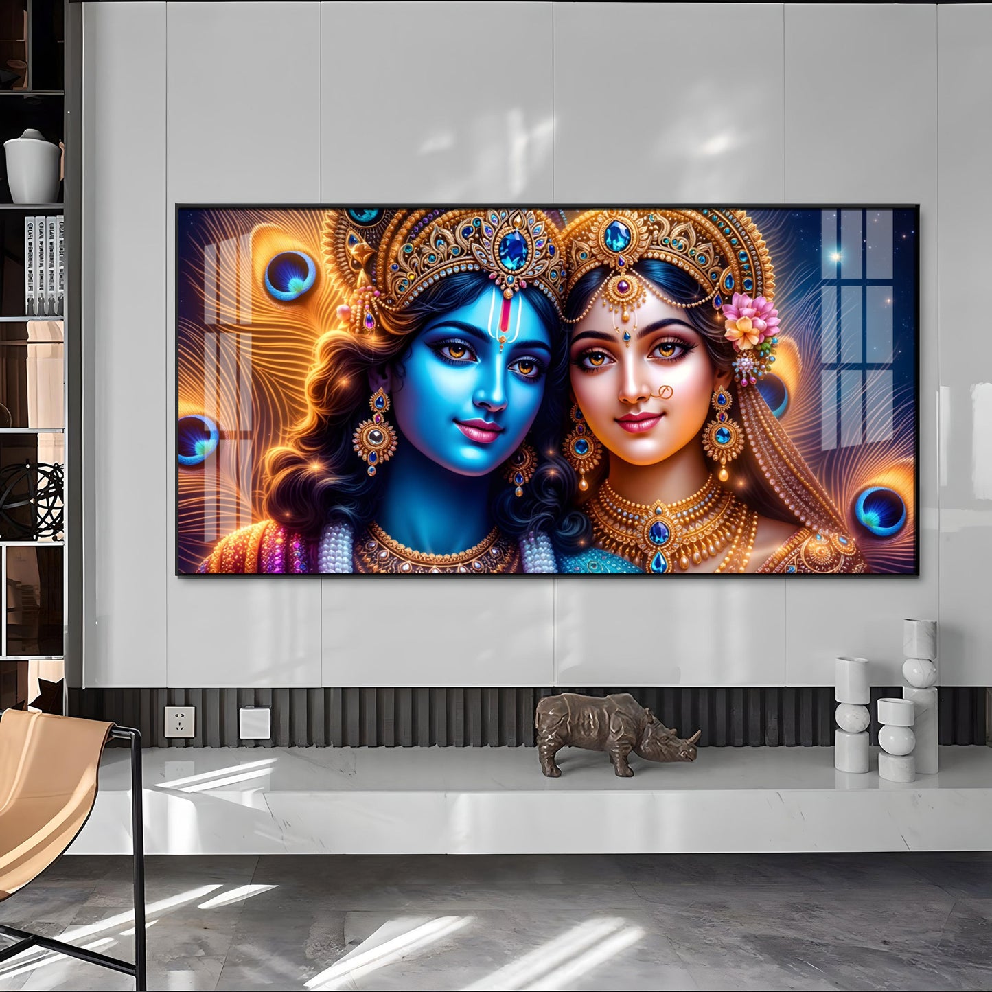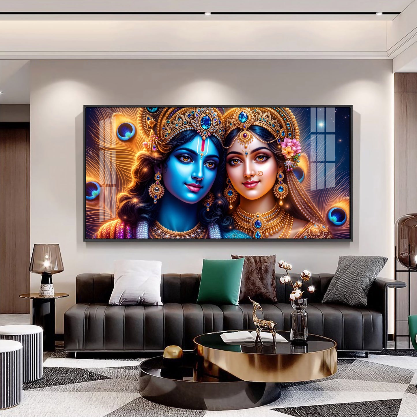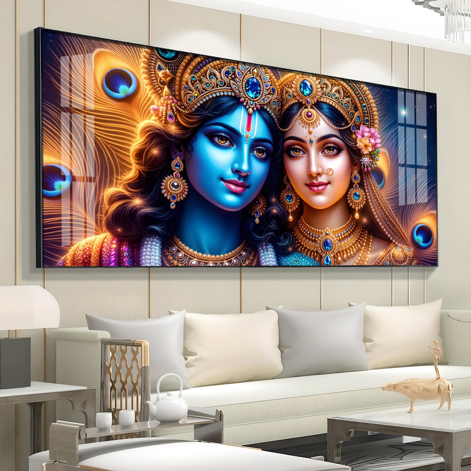 Radha Krishna In Luminous Virbant Premium Acrylic Horizontal Wall Art