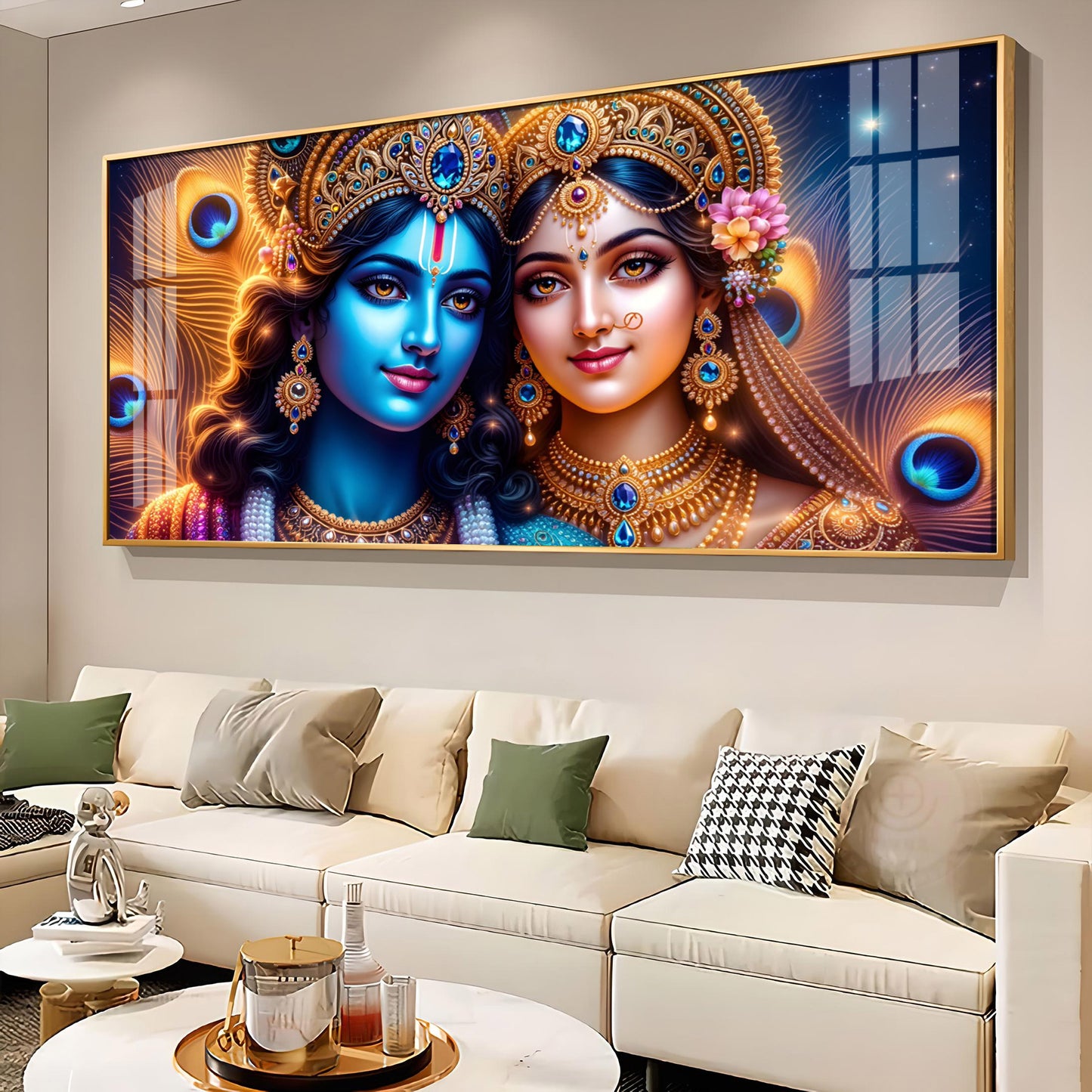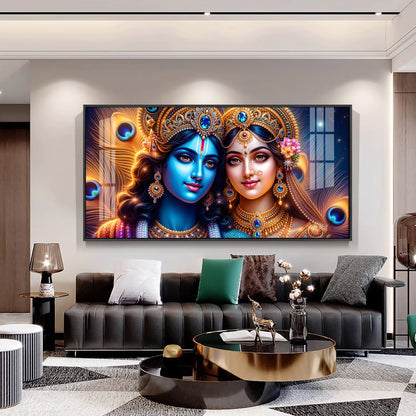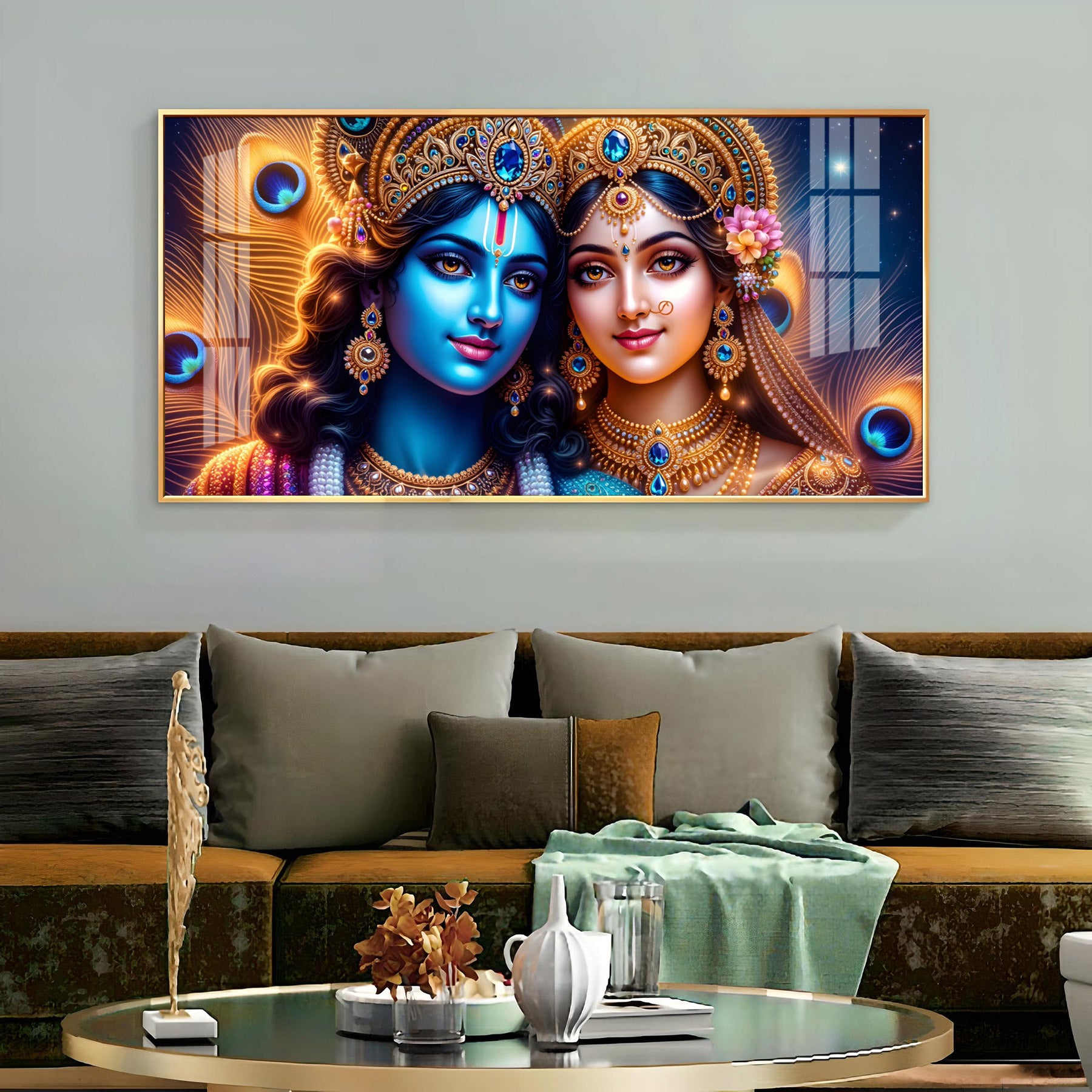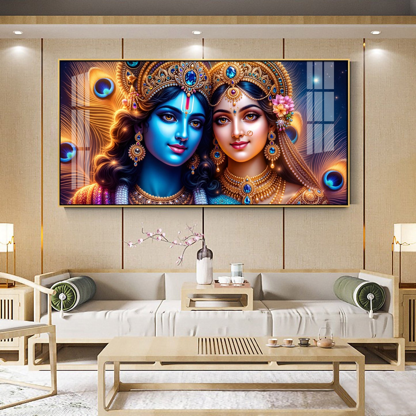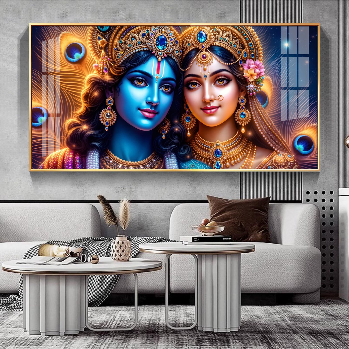 Radha Krishna In Luminous Virbant Premium Acrylic Horizontal Wall Art