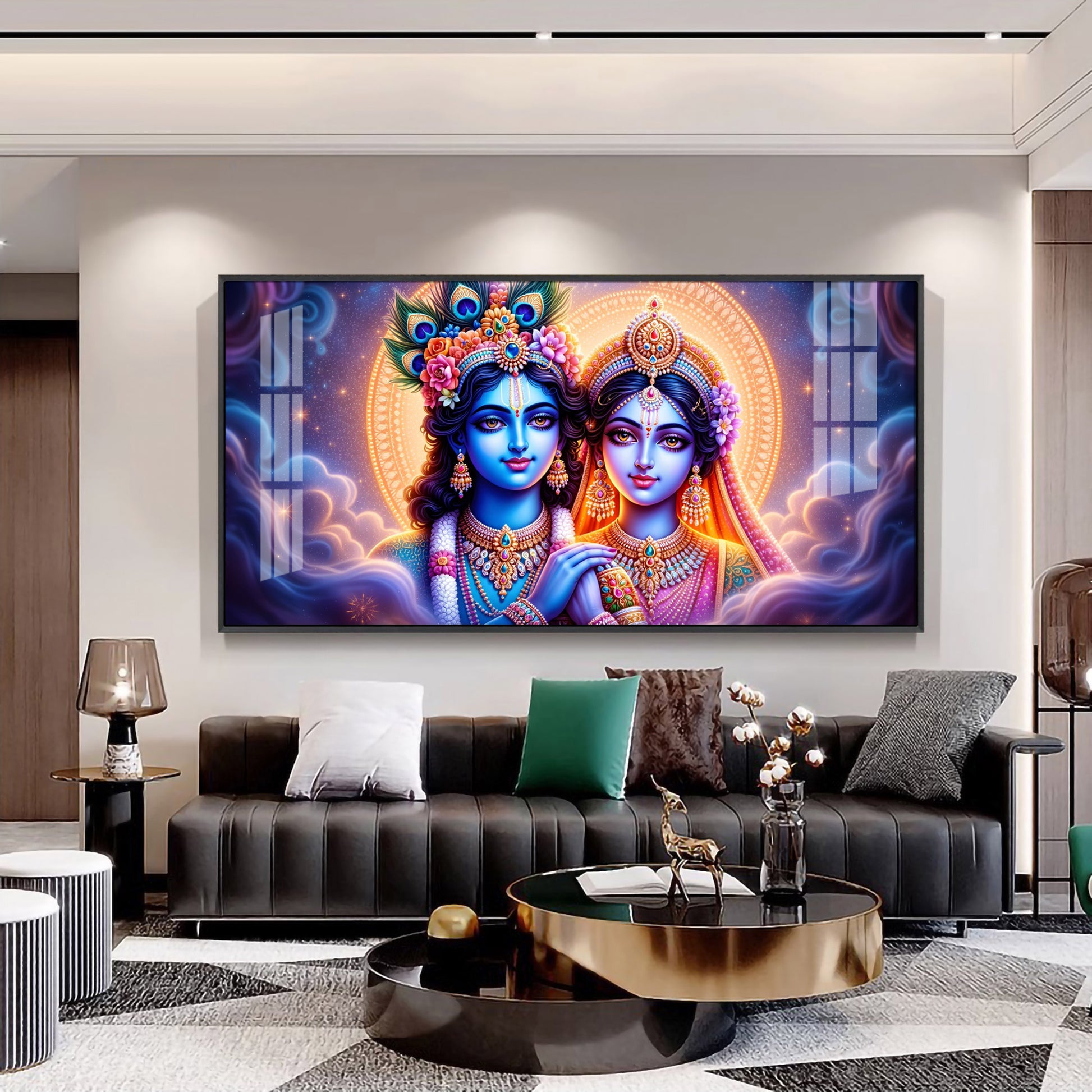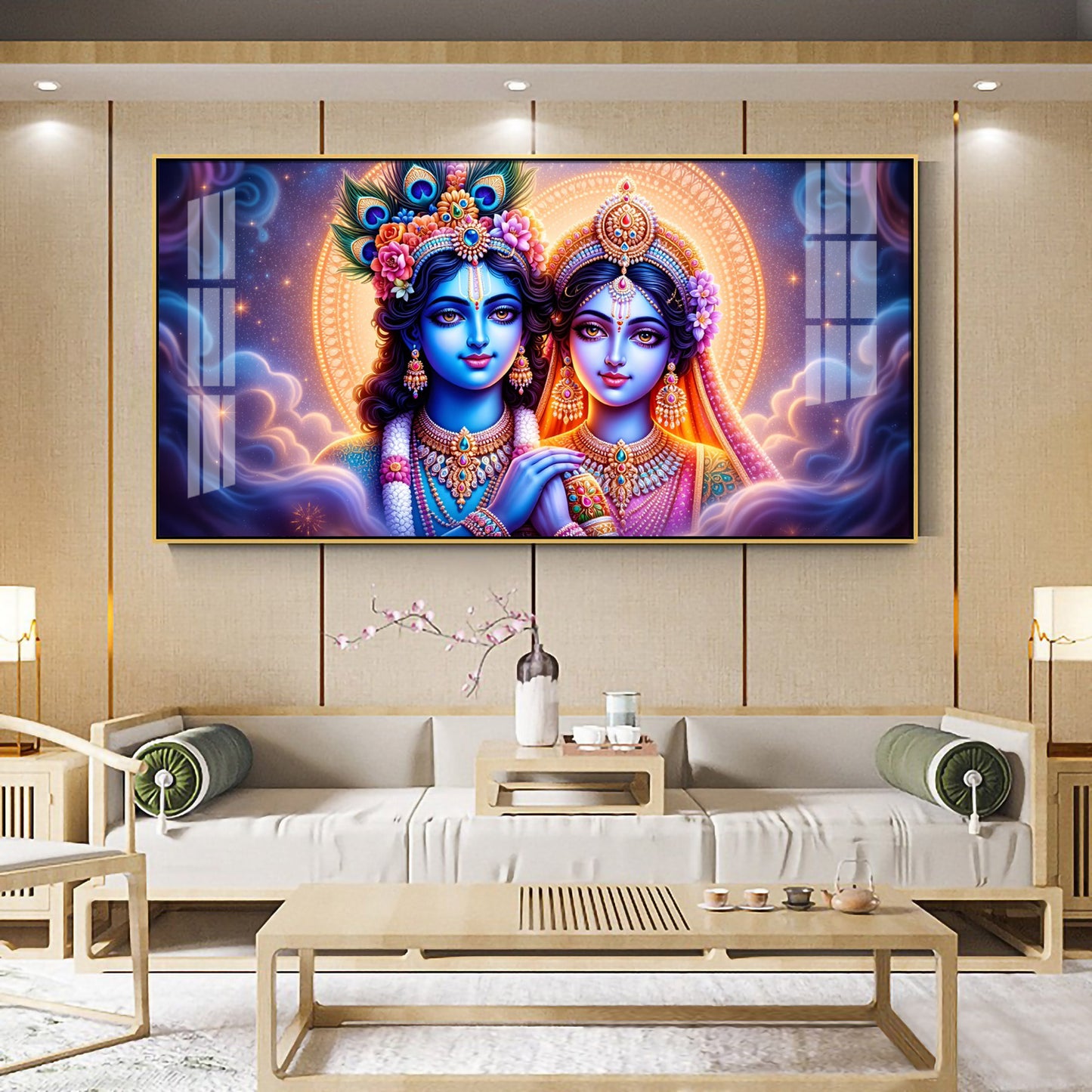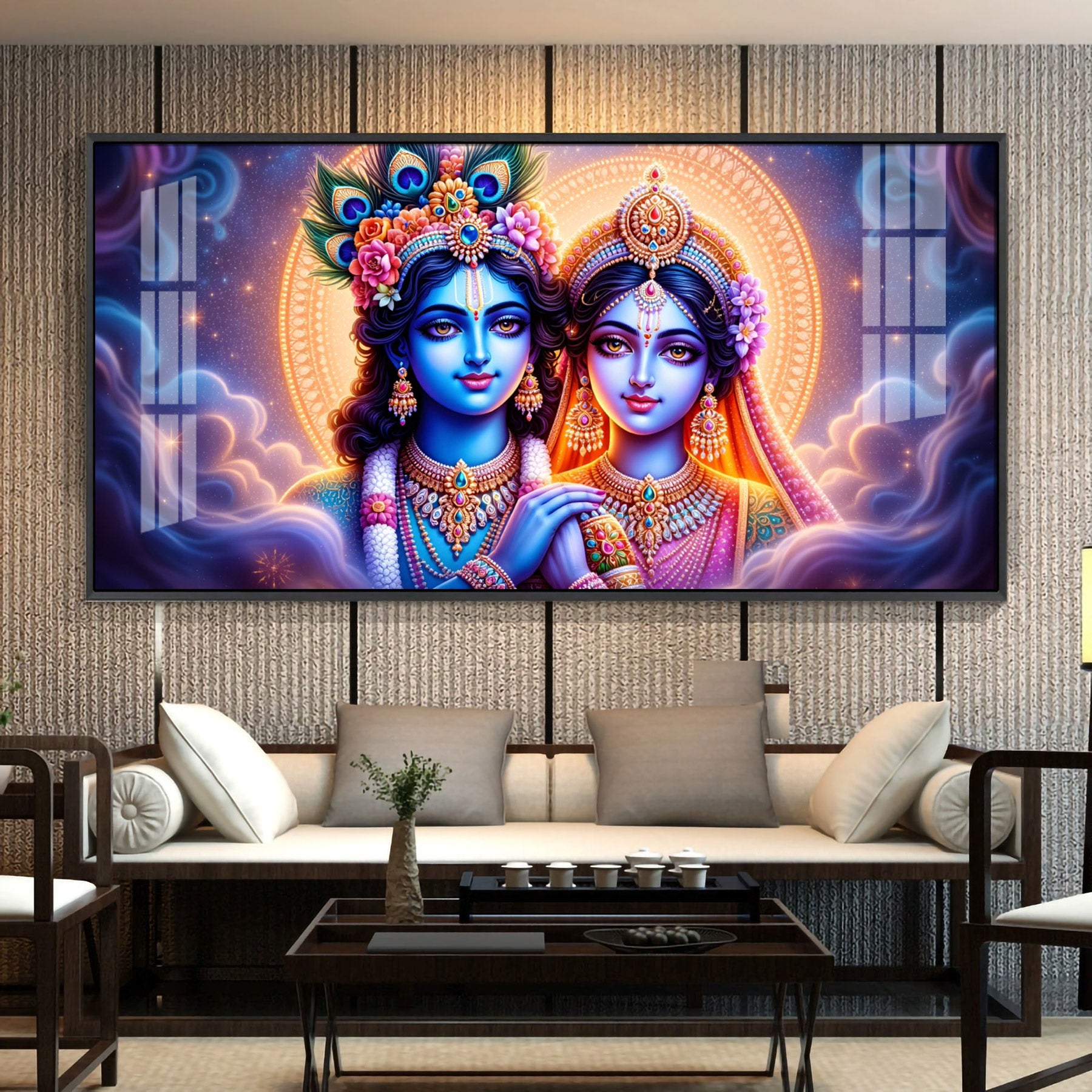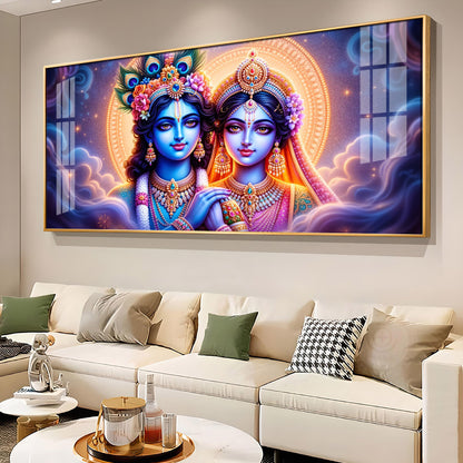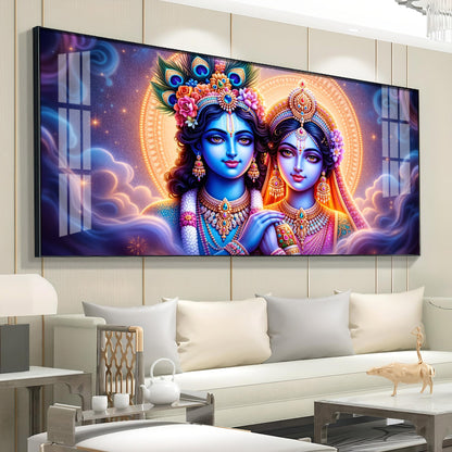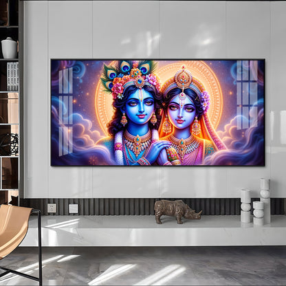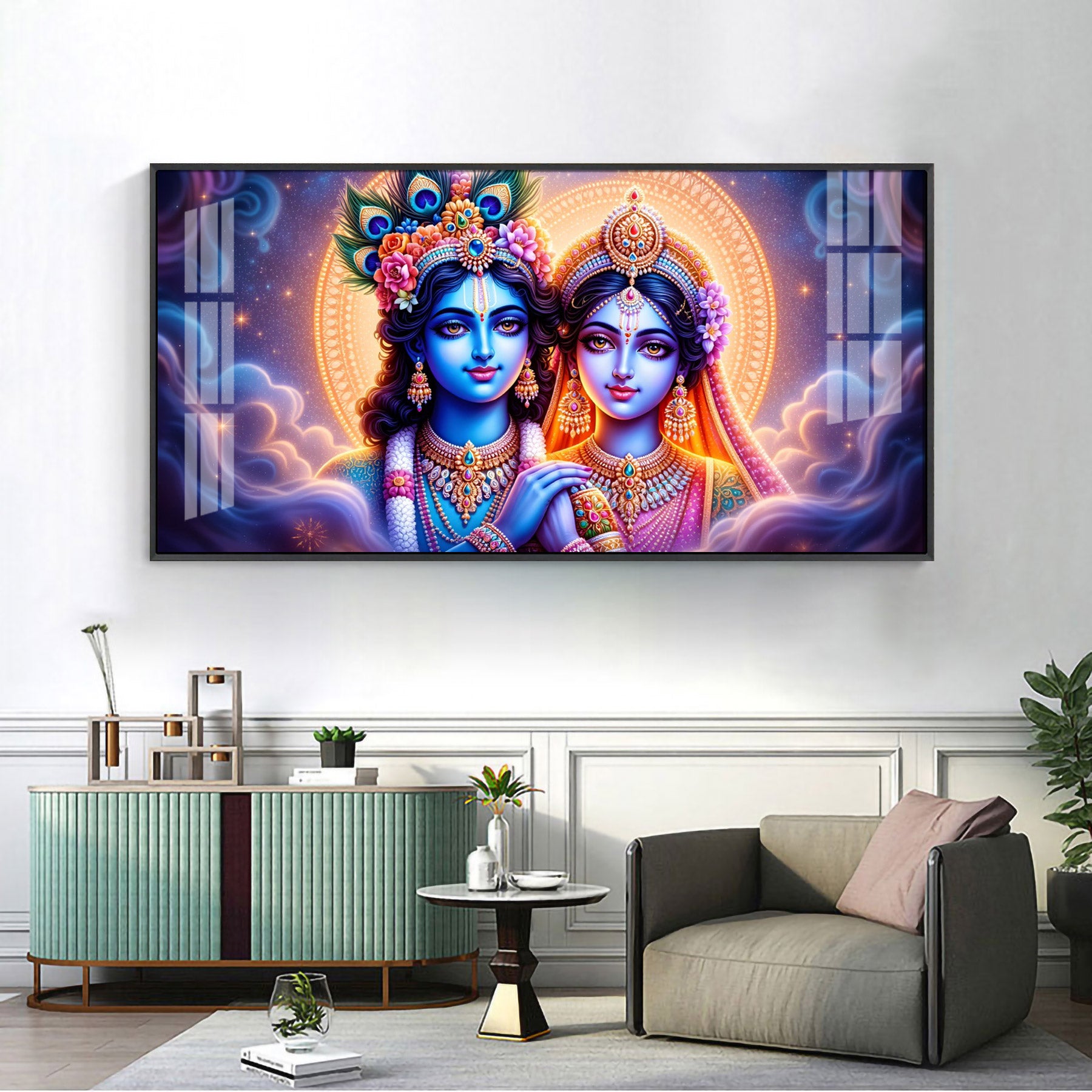 Radha Krishna In Majestic Cloud Premium Acrylic Horizontal Wall Art