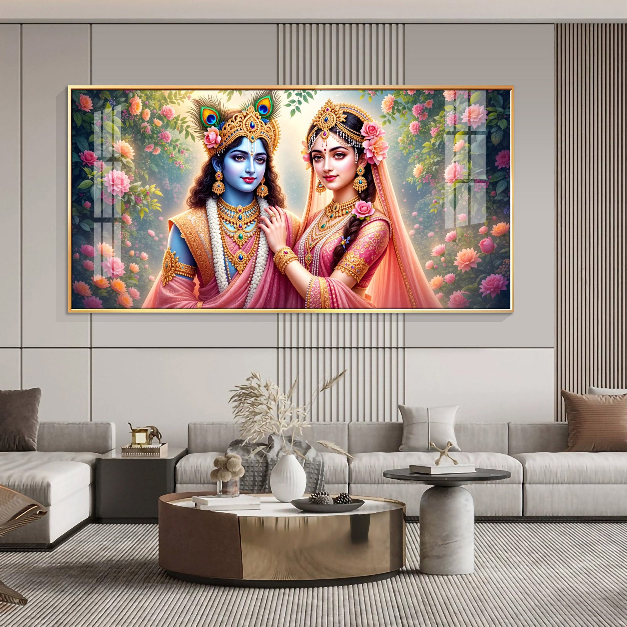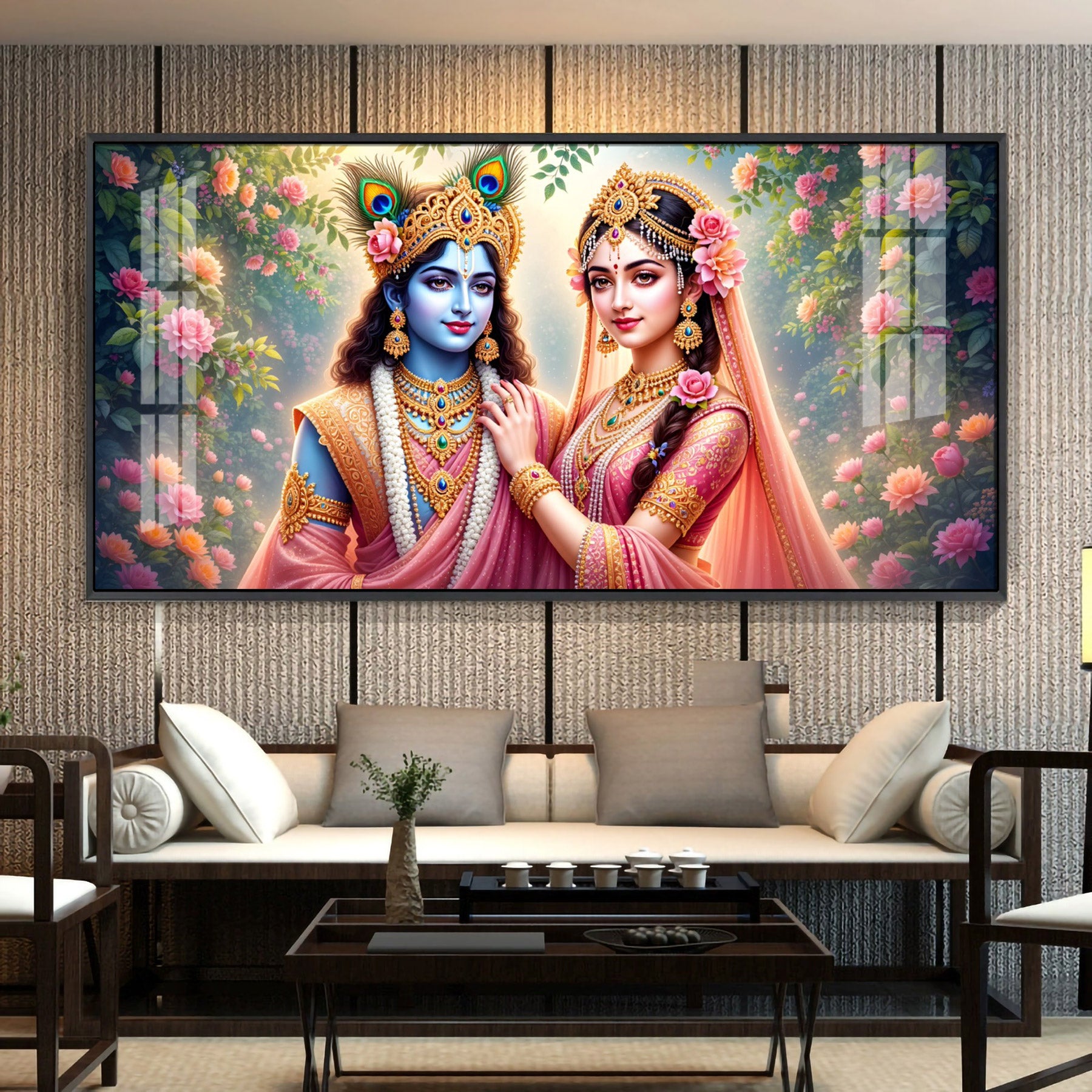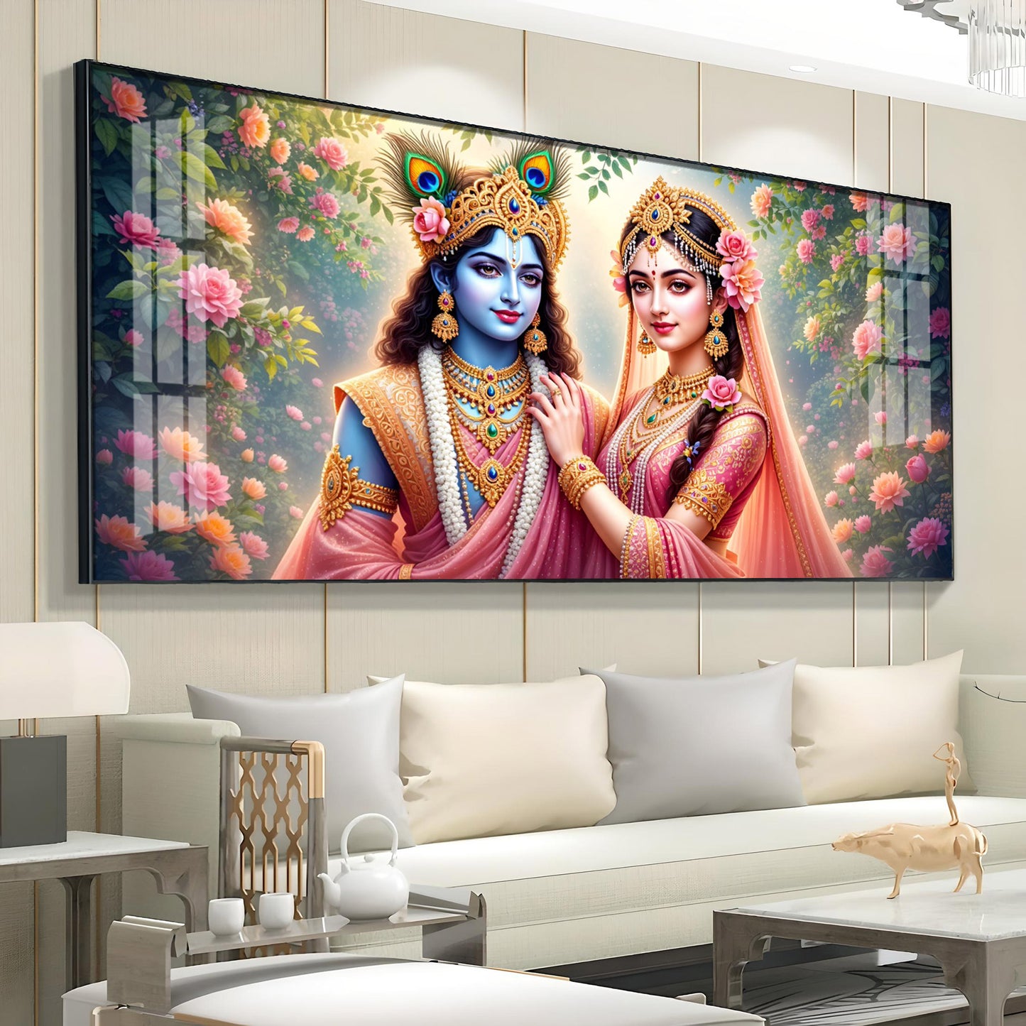 Radha Rani With Krishna Premium Acrylic Horizontal Wall Art