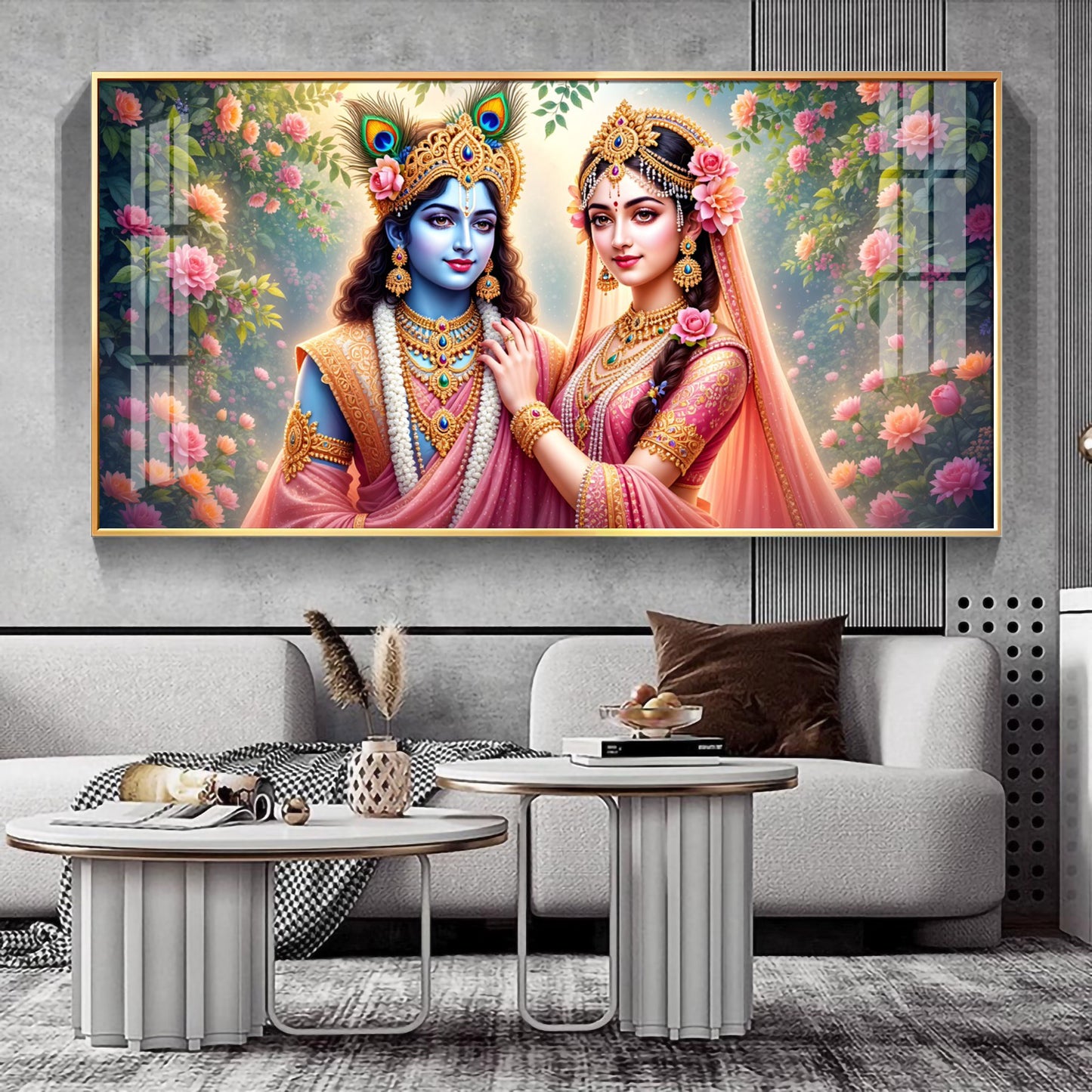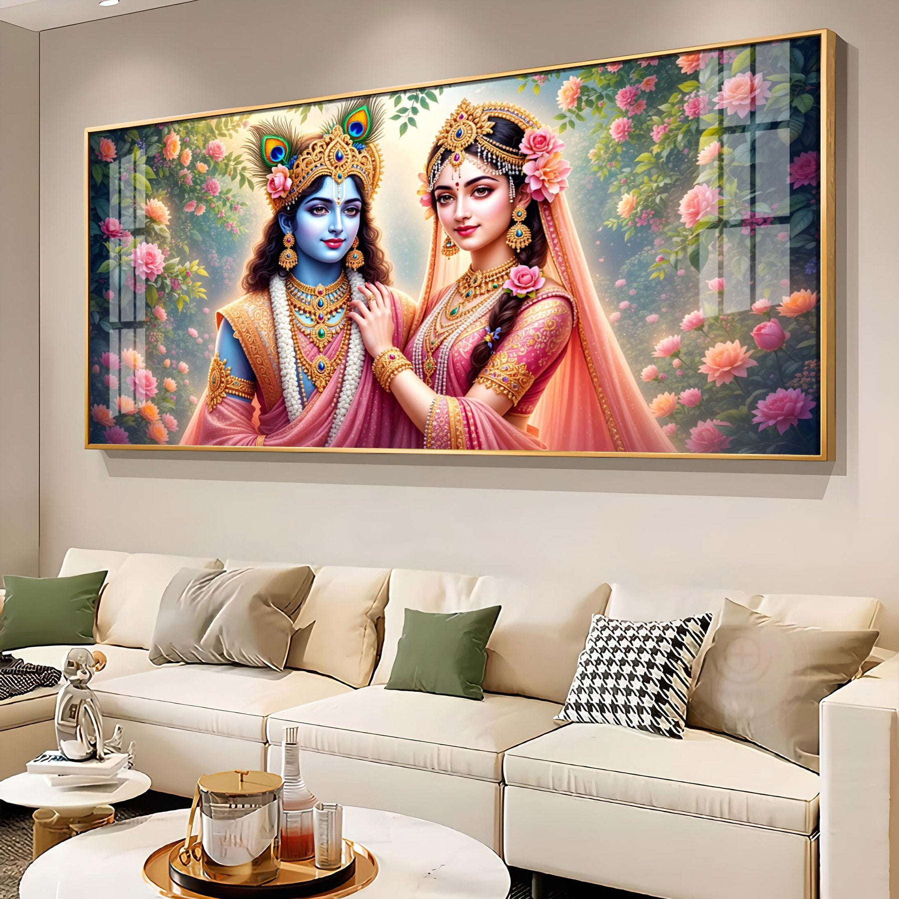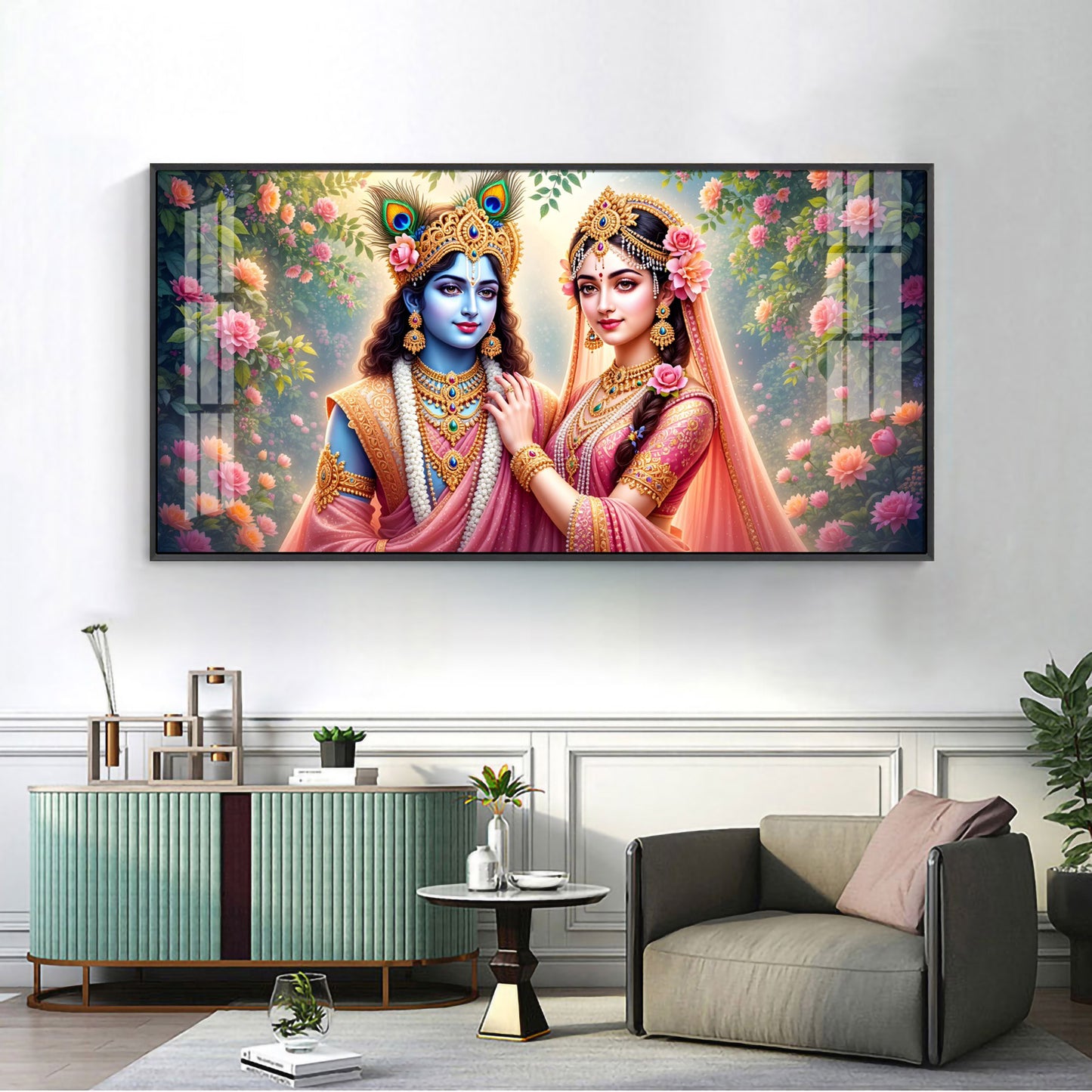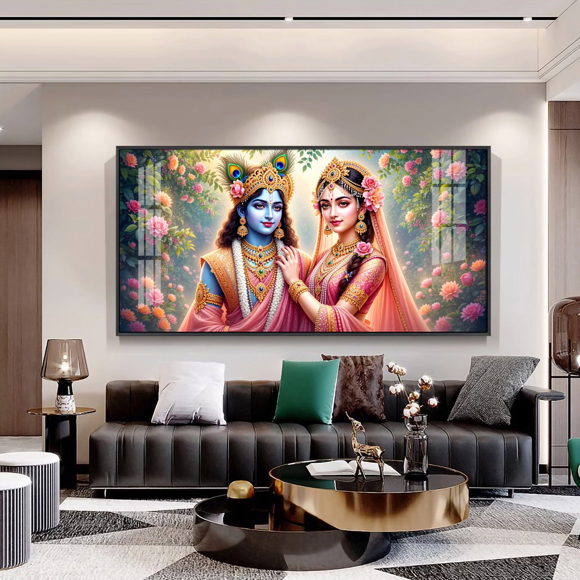 Radha Rani With Krishna Premium Acrylic Horizontal Wall Art