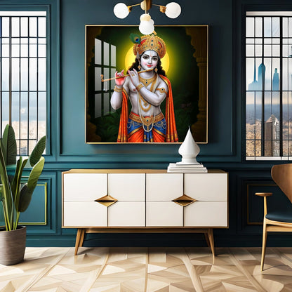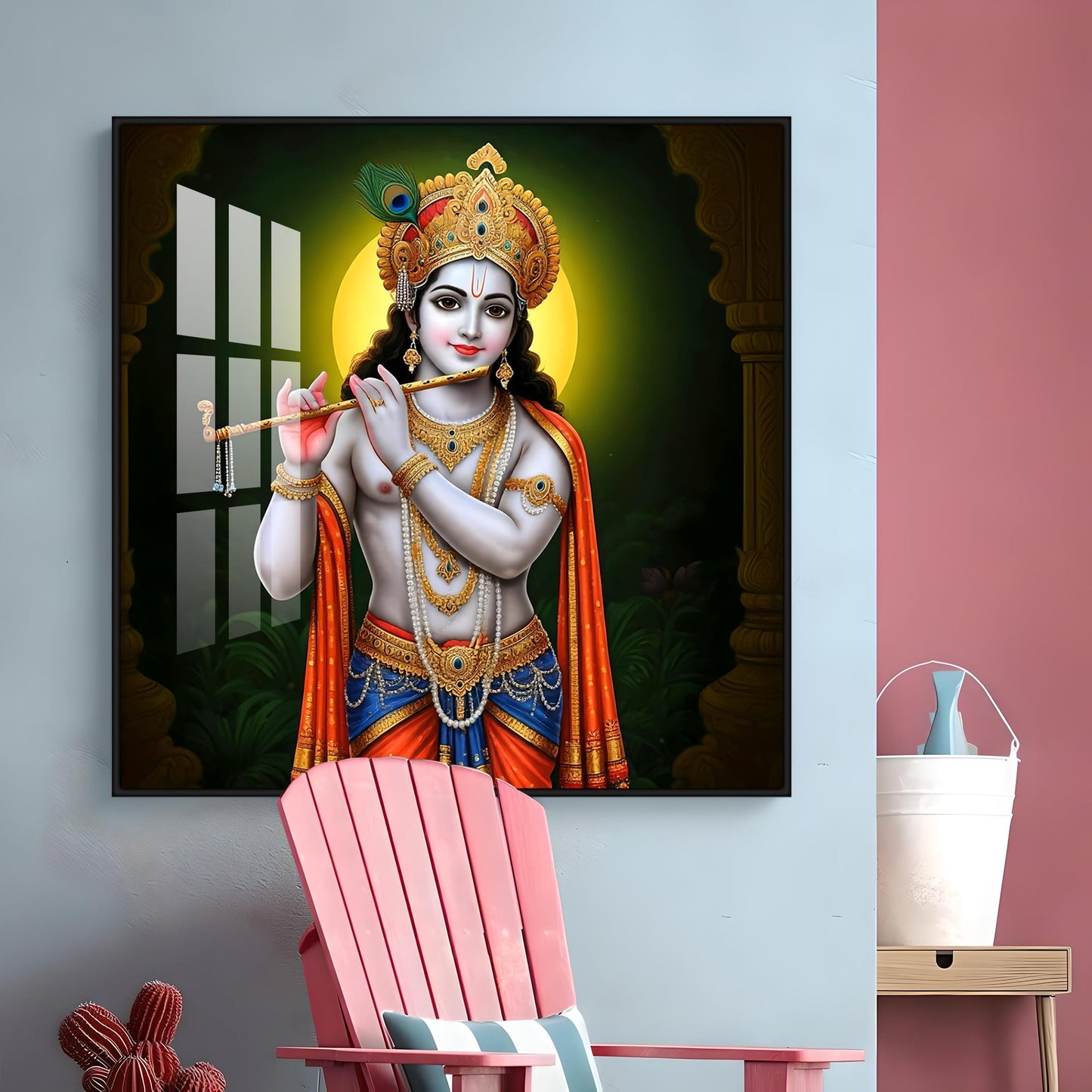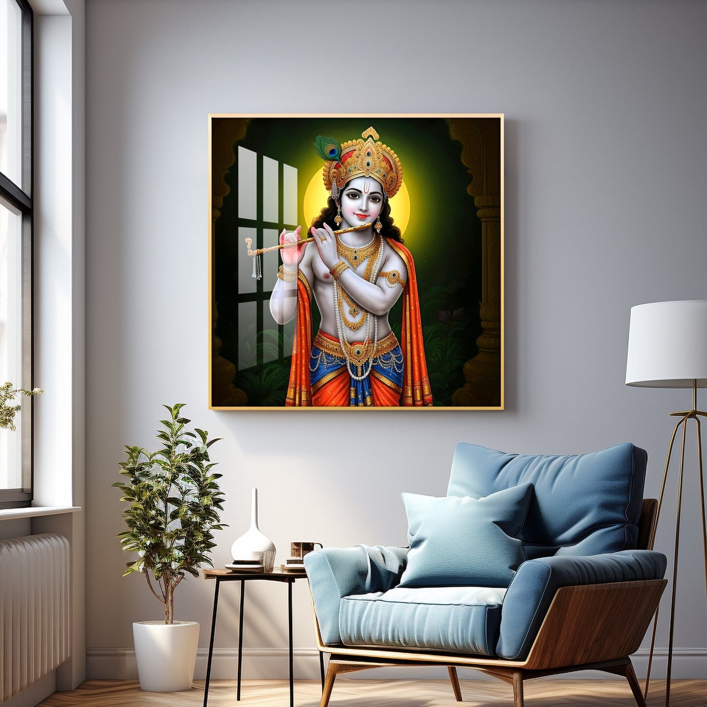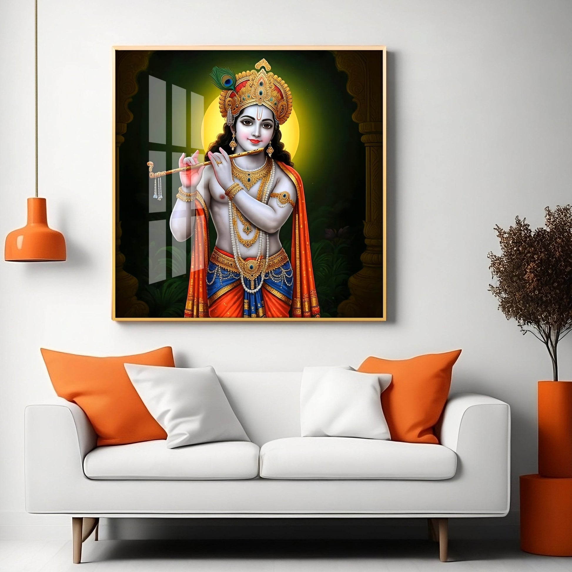 Sacred Essence Of Krishna Premium Acrylic Square Wall Art