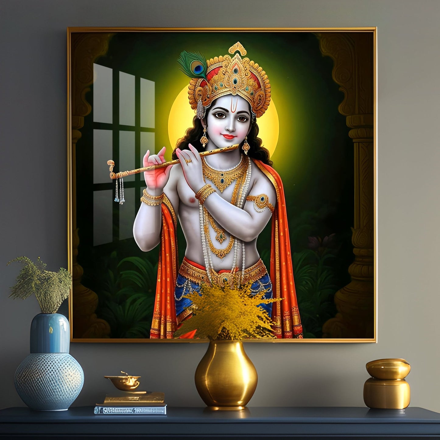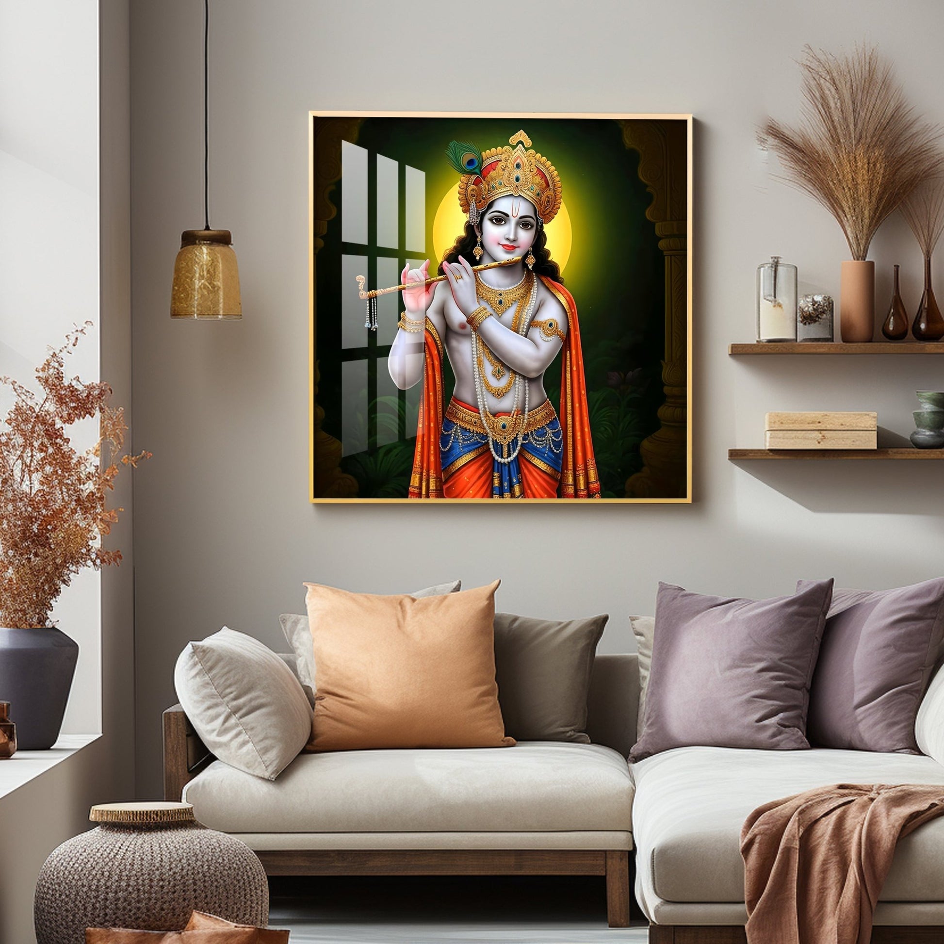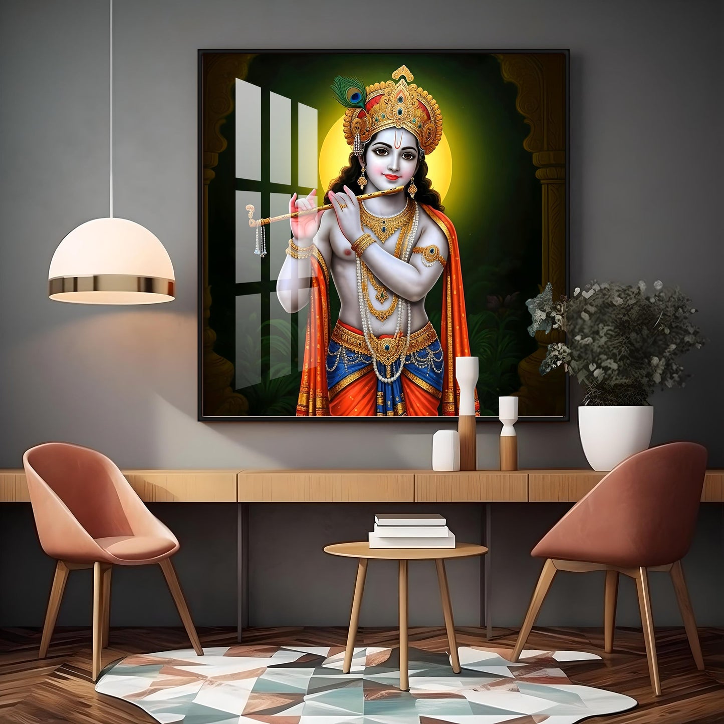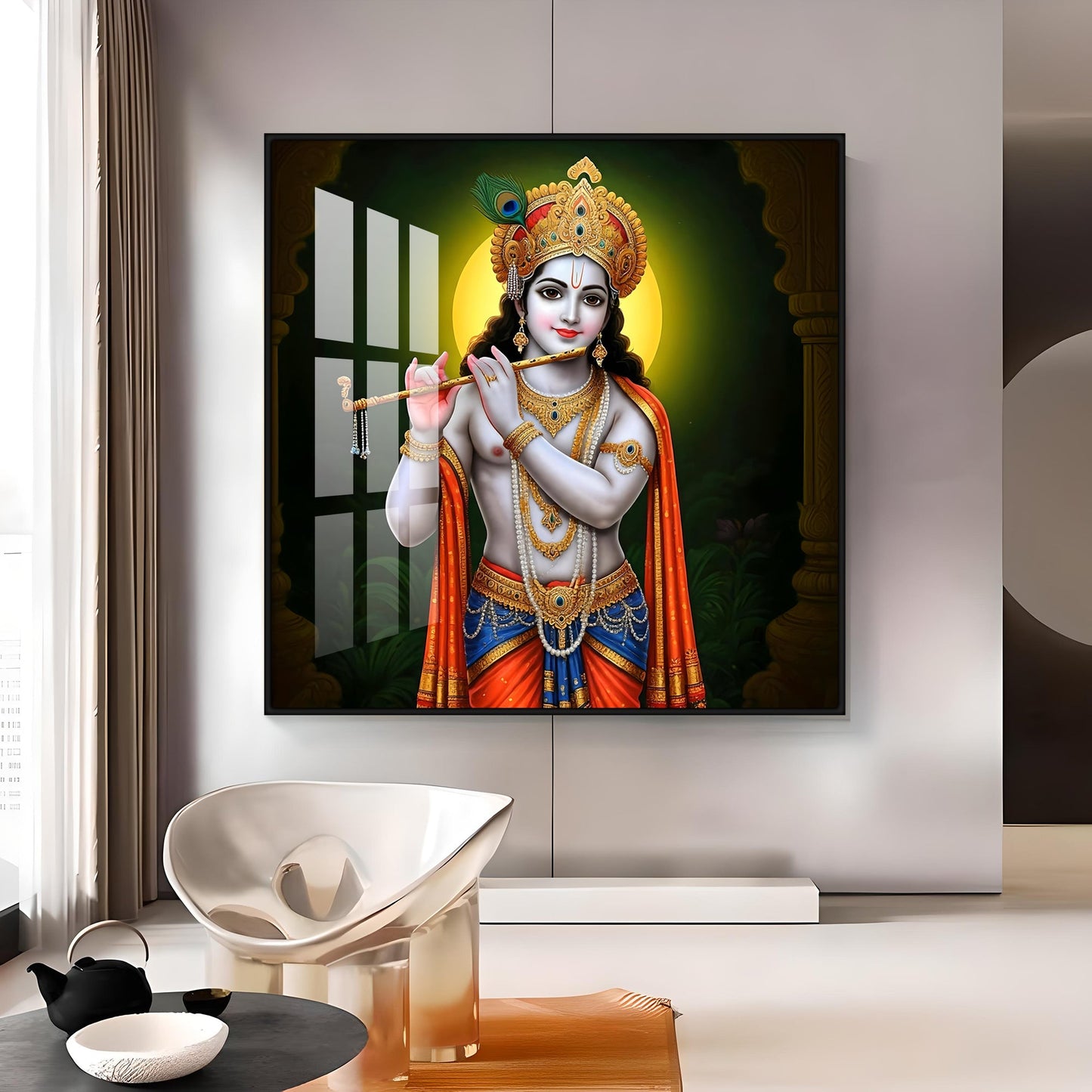 Sacred Essence Of Krishna Premium Acrylic Square Wall Art