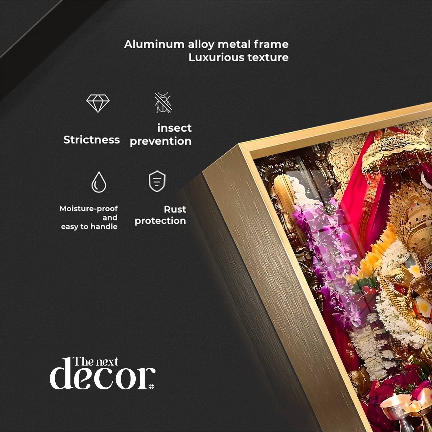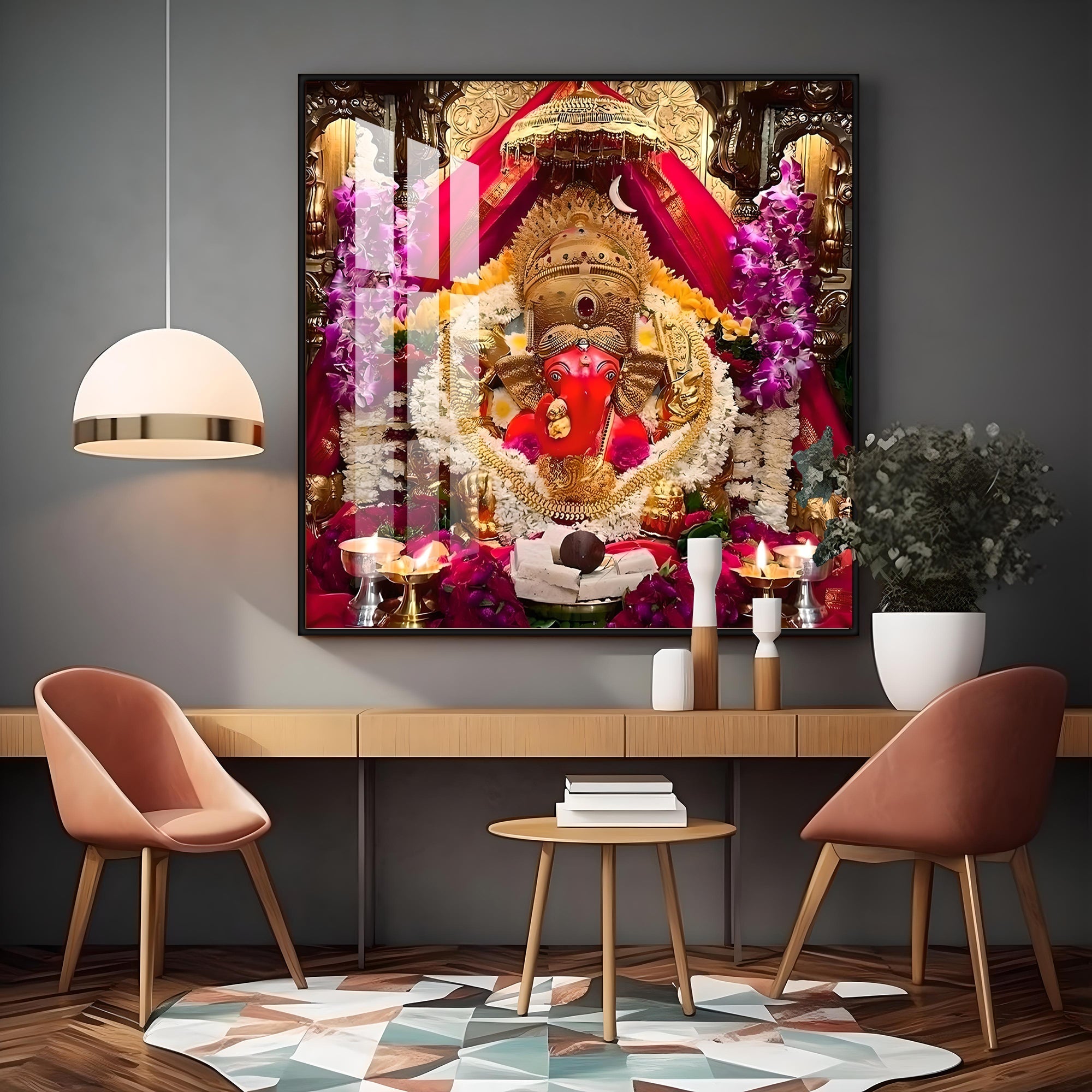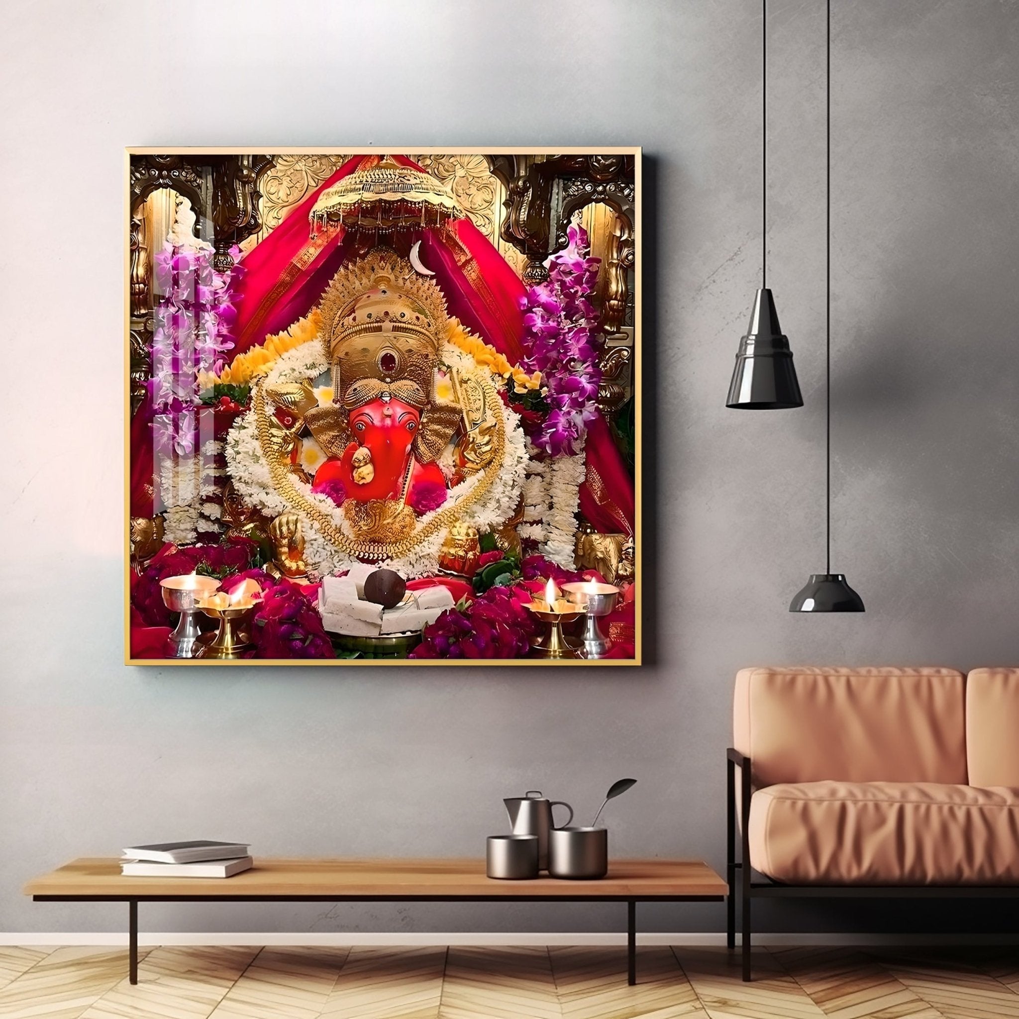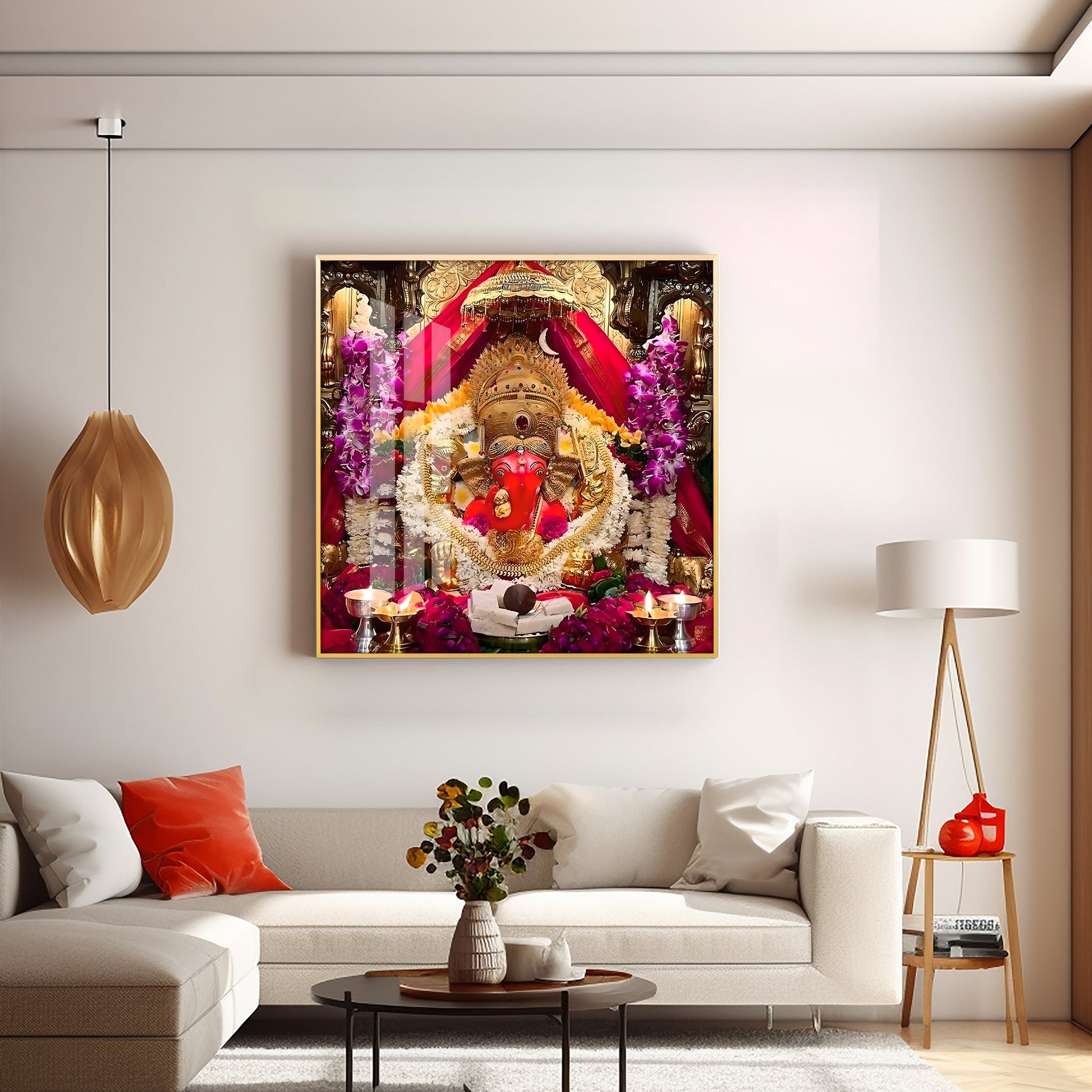 Shree Siddhivinayak Ganapati Premium Acrylic Square Wall Art - 30X30 inches / Gold