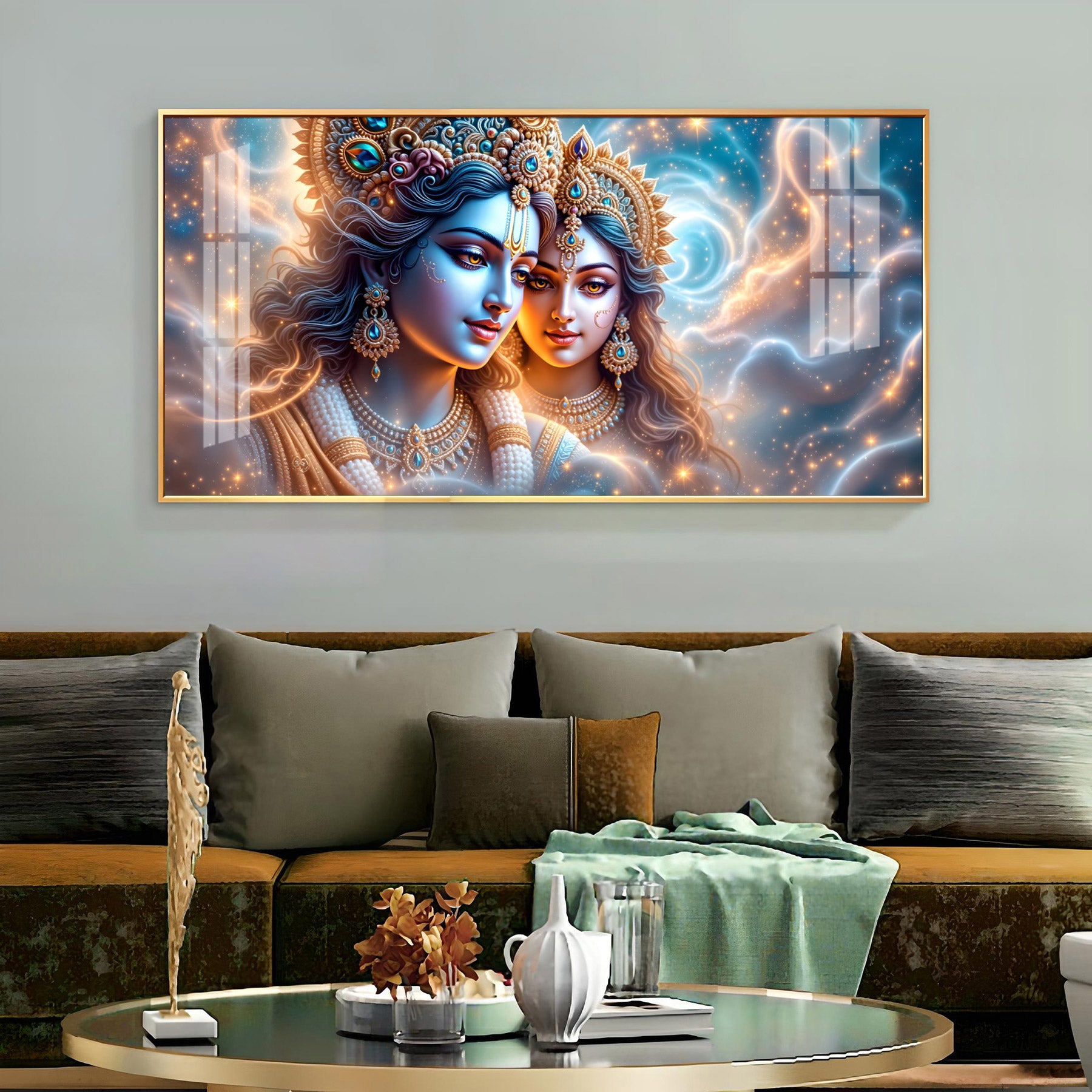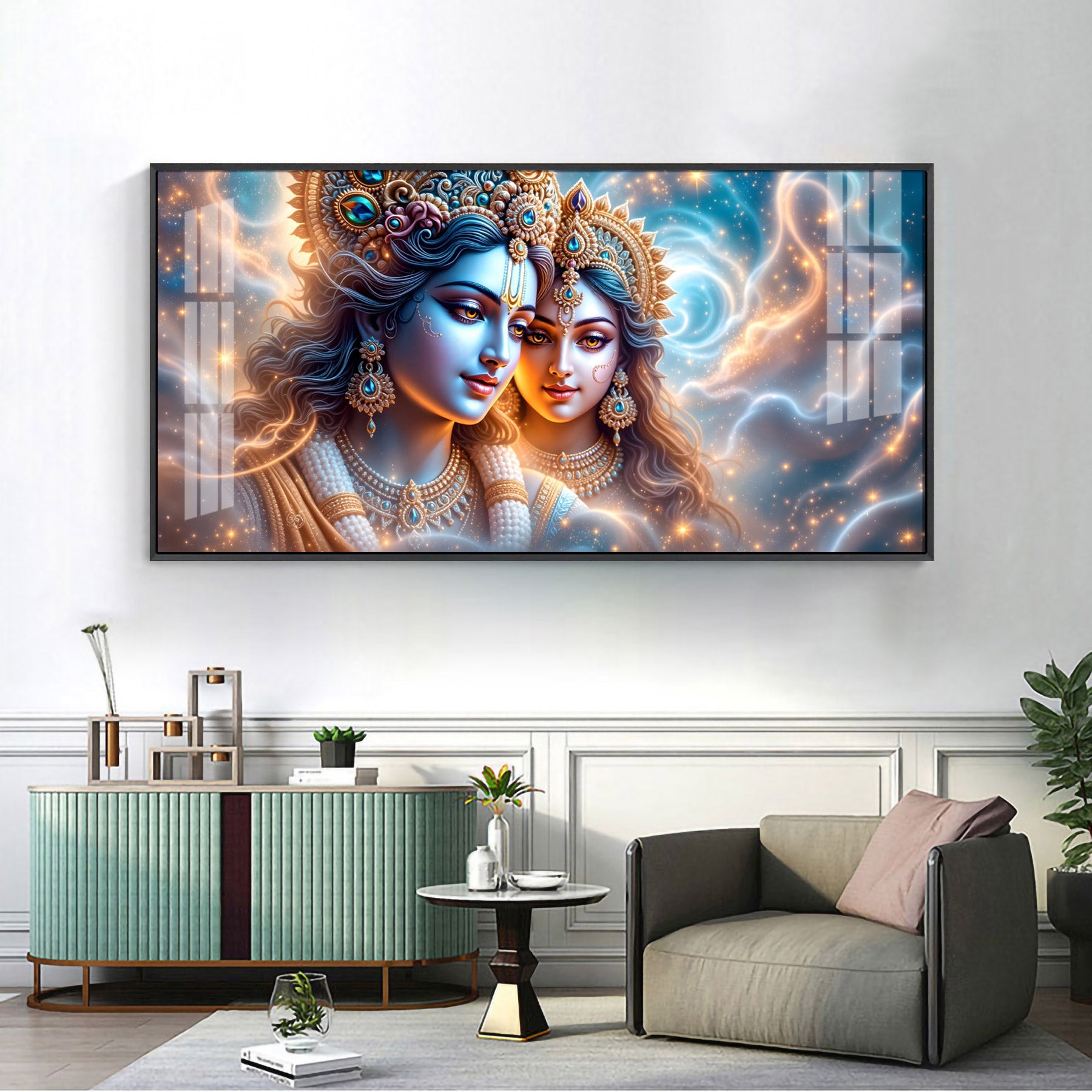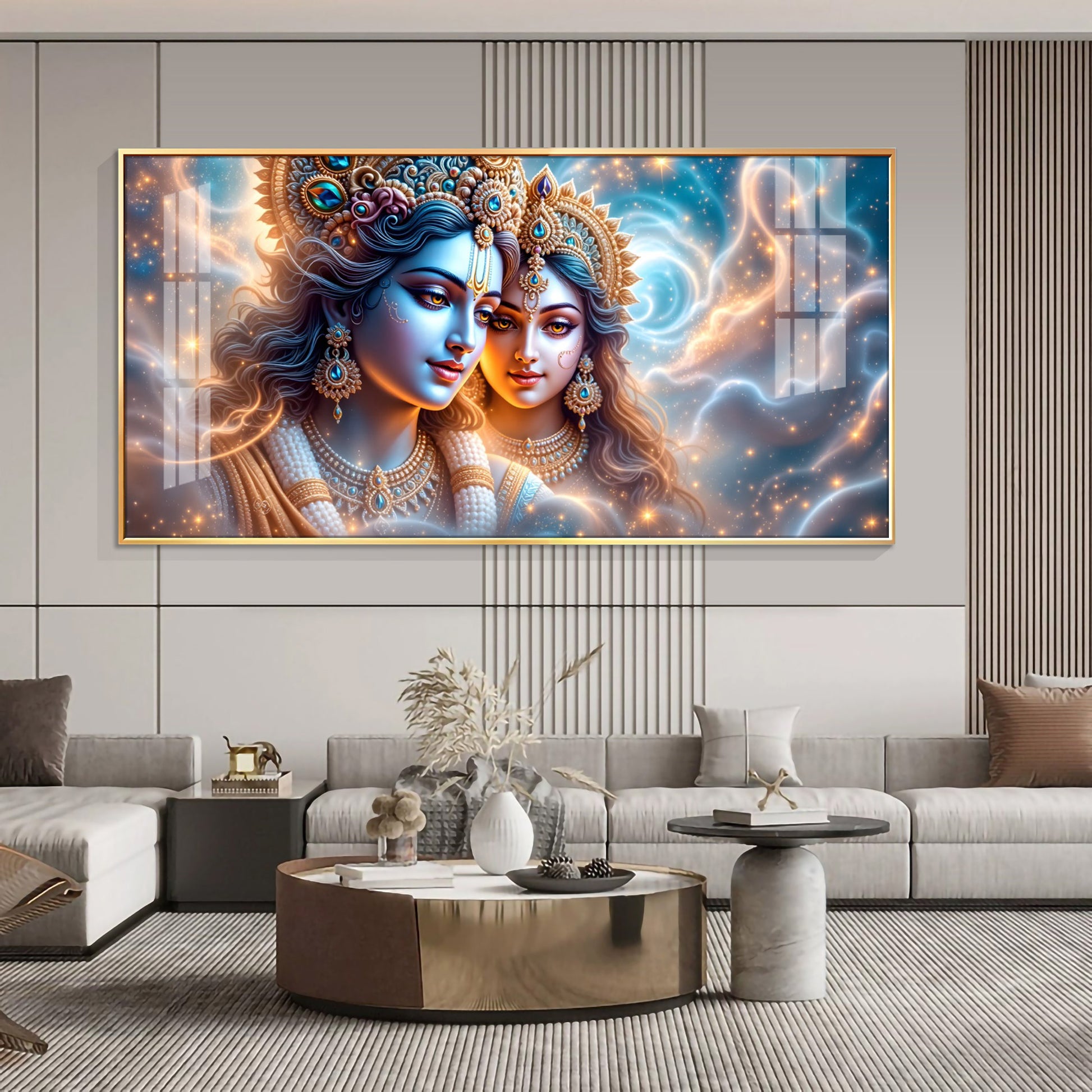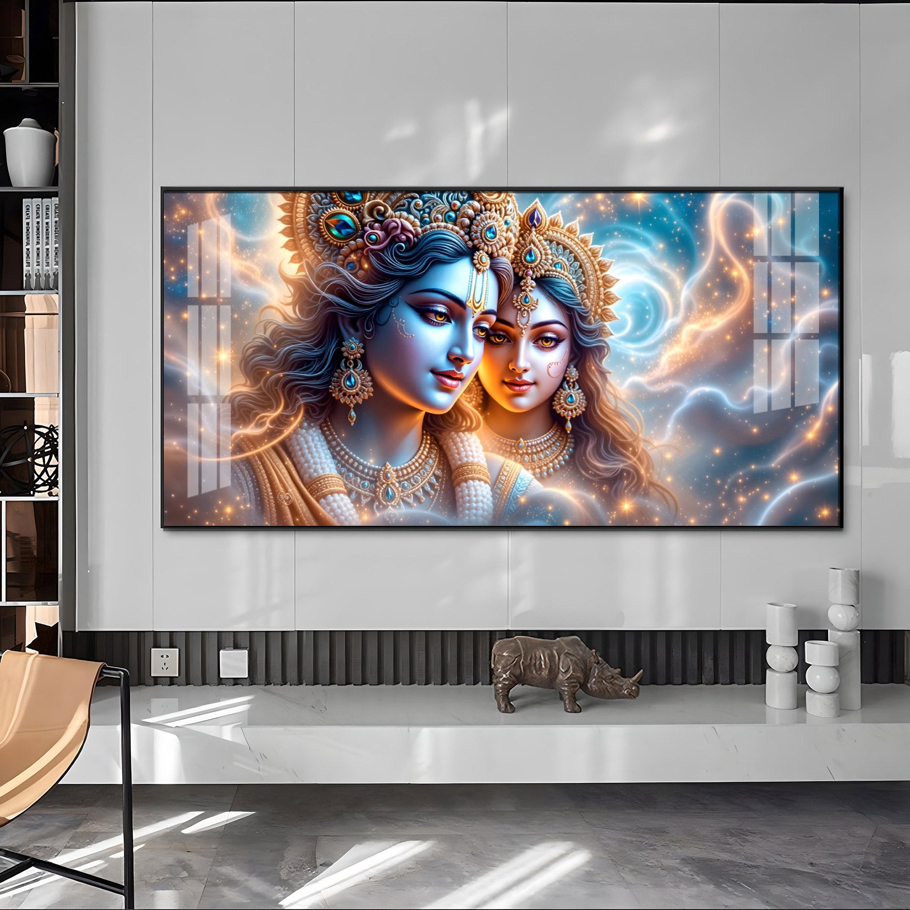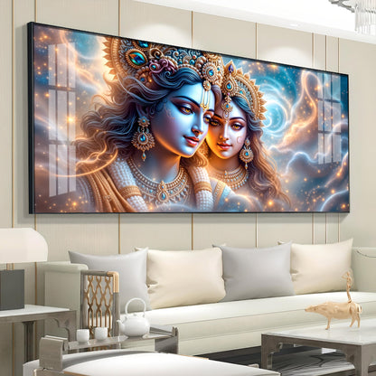 Shri Krishna And Radha In Nebula Cloud Premium Acrylic Horizontal Wall Art