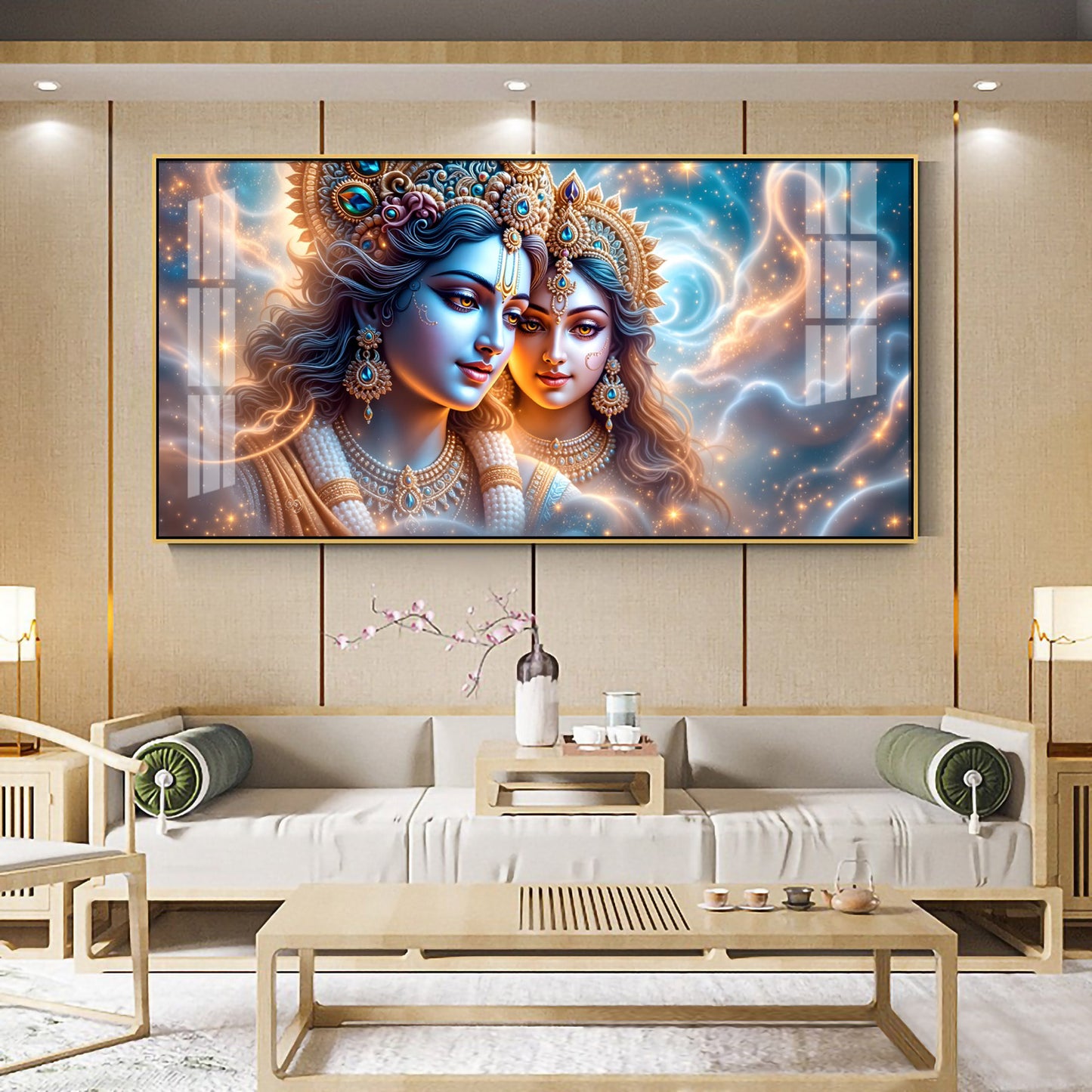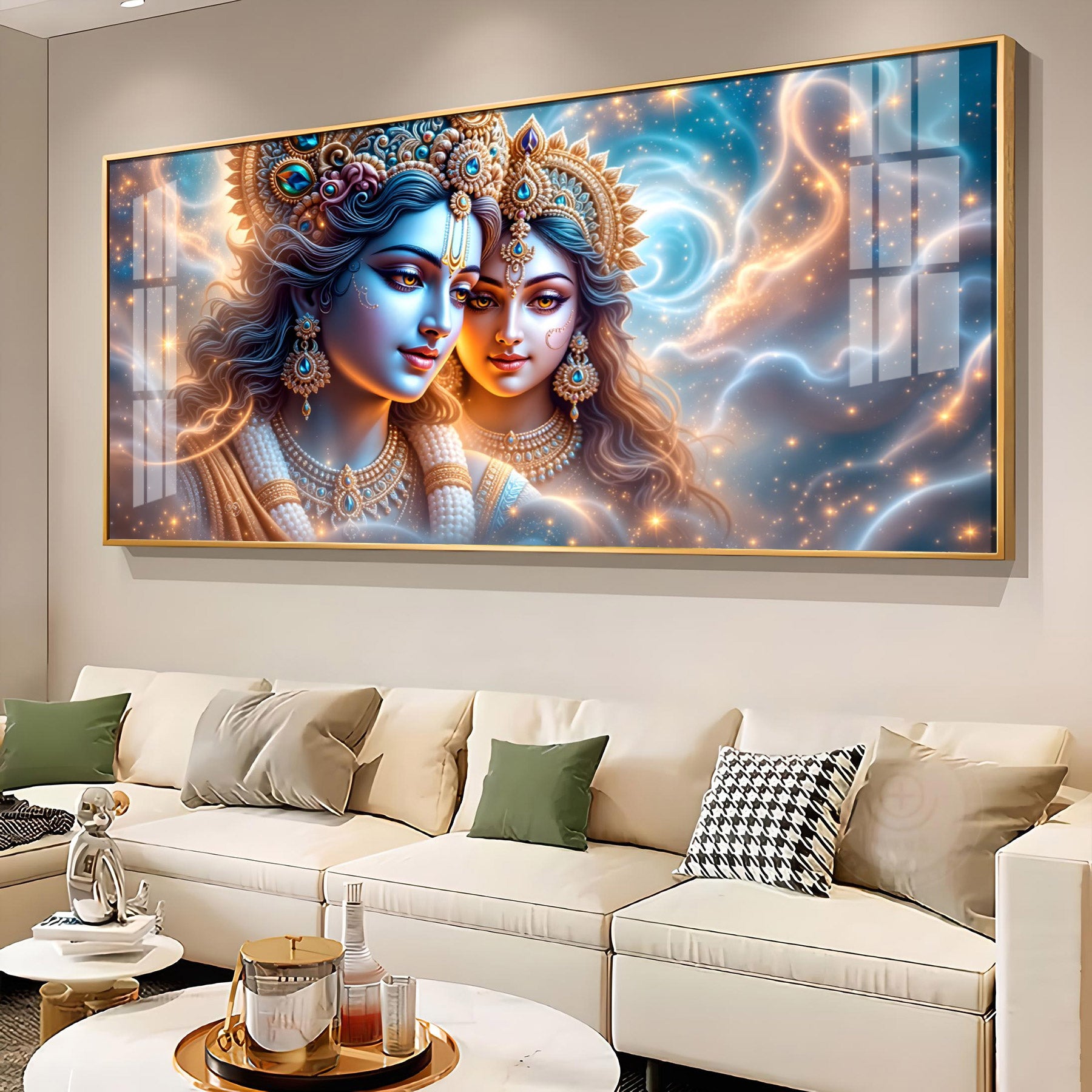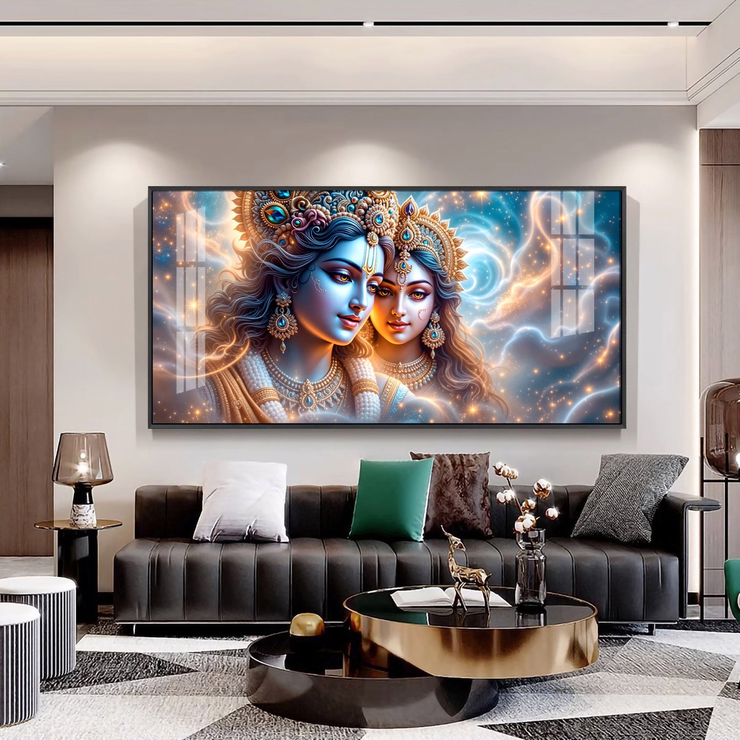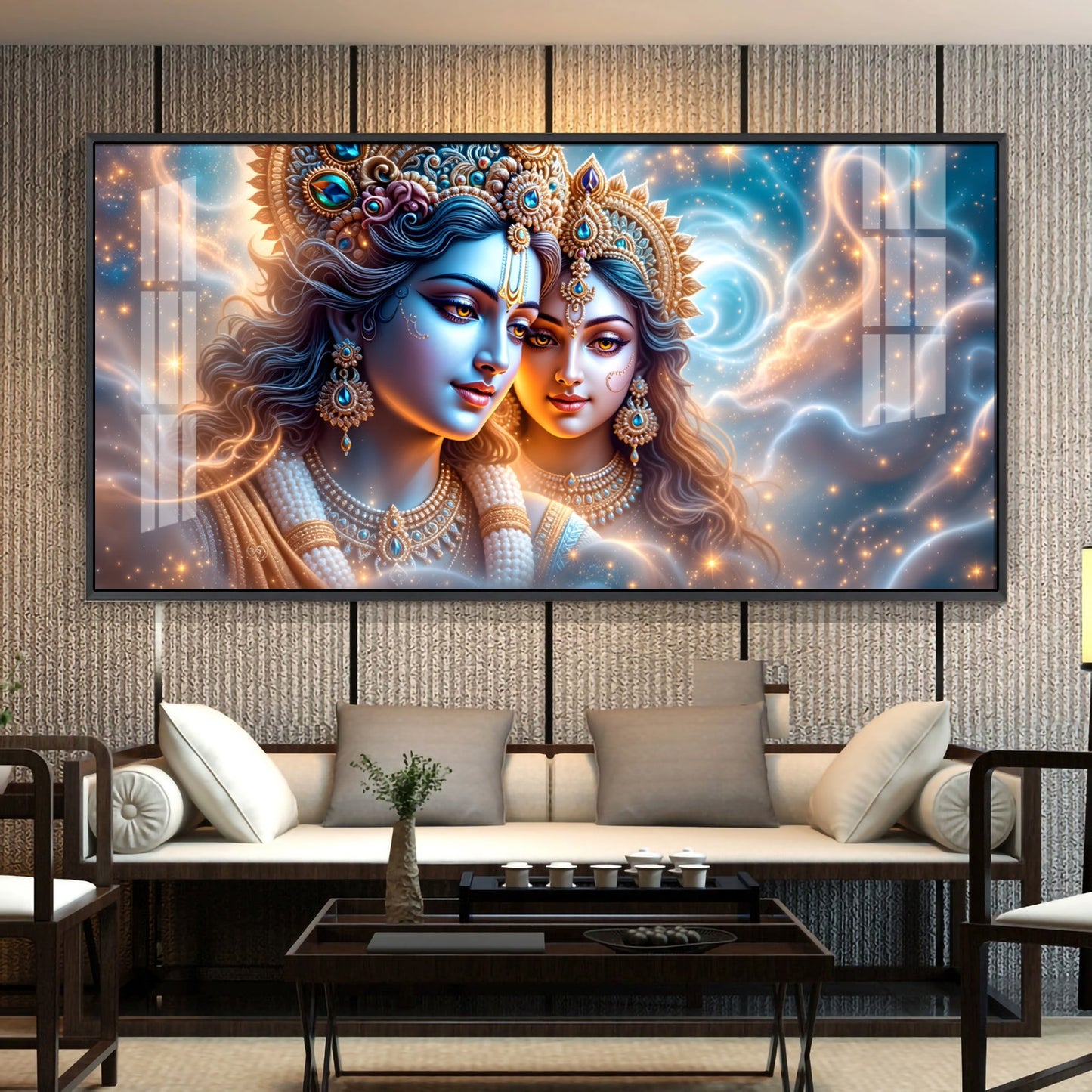 Shri Krishna And Radha In Nebula Cloud Premium Acrylic Horizontal Wall Art