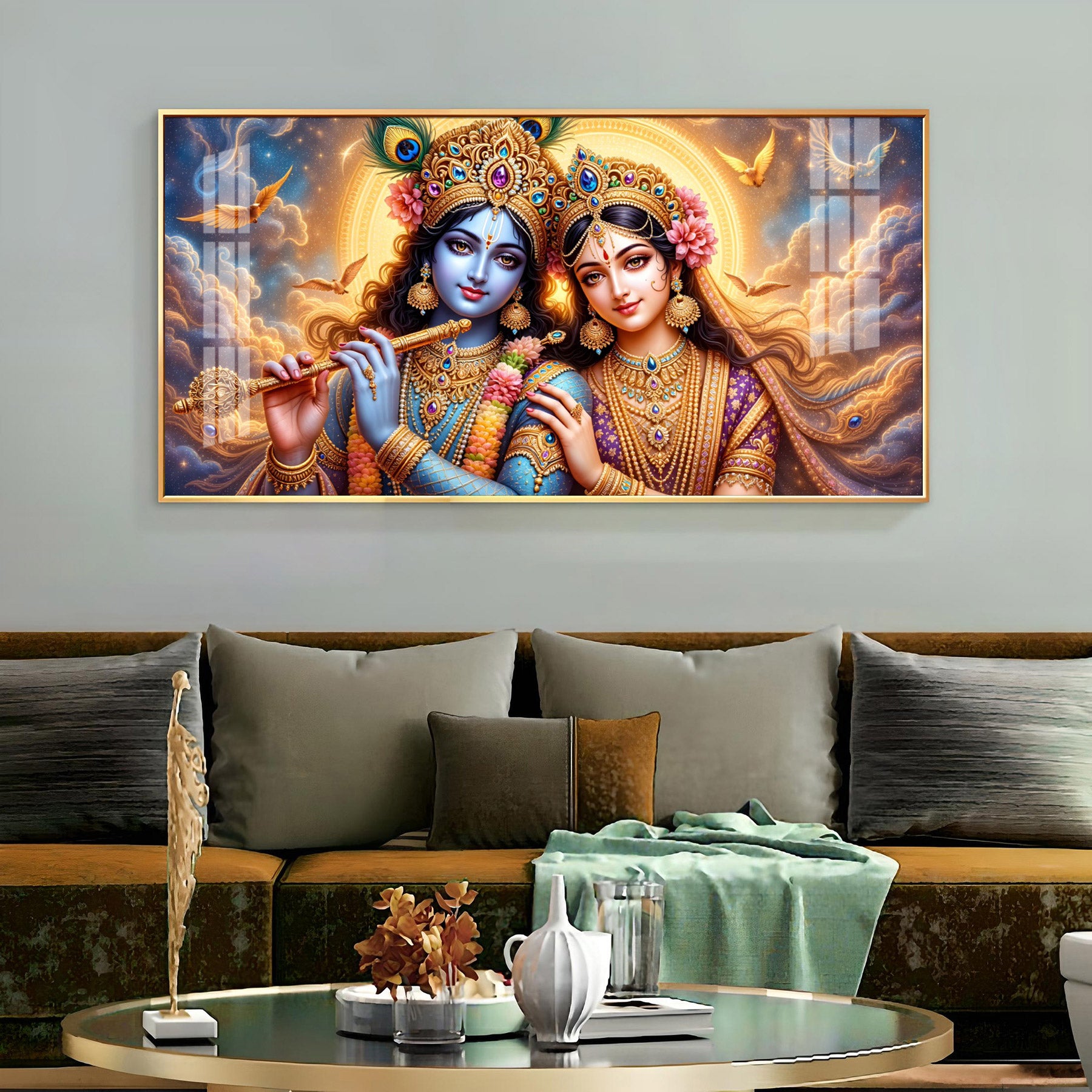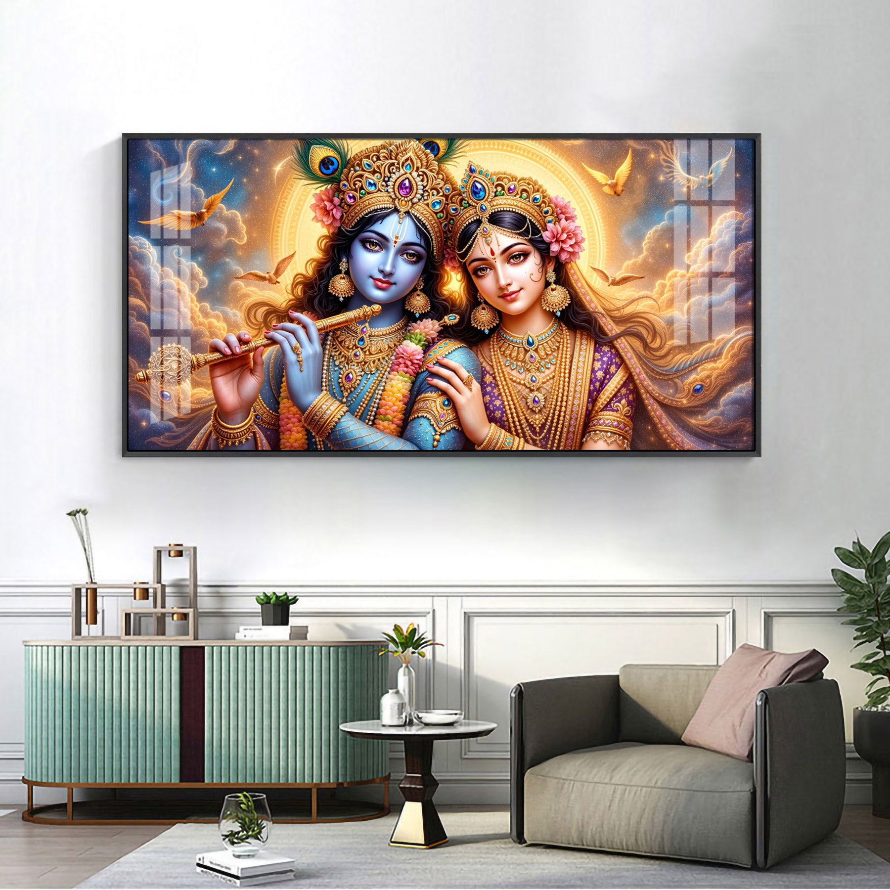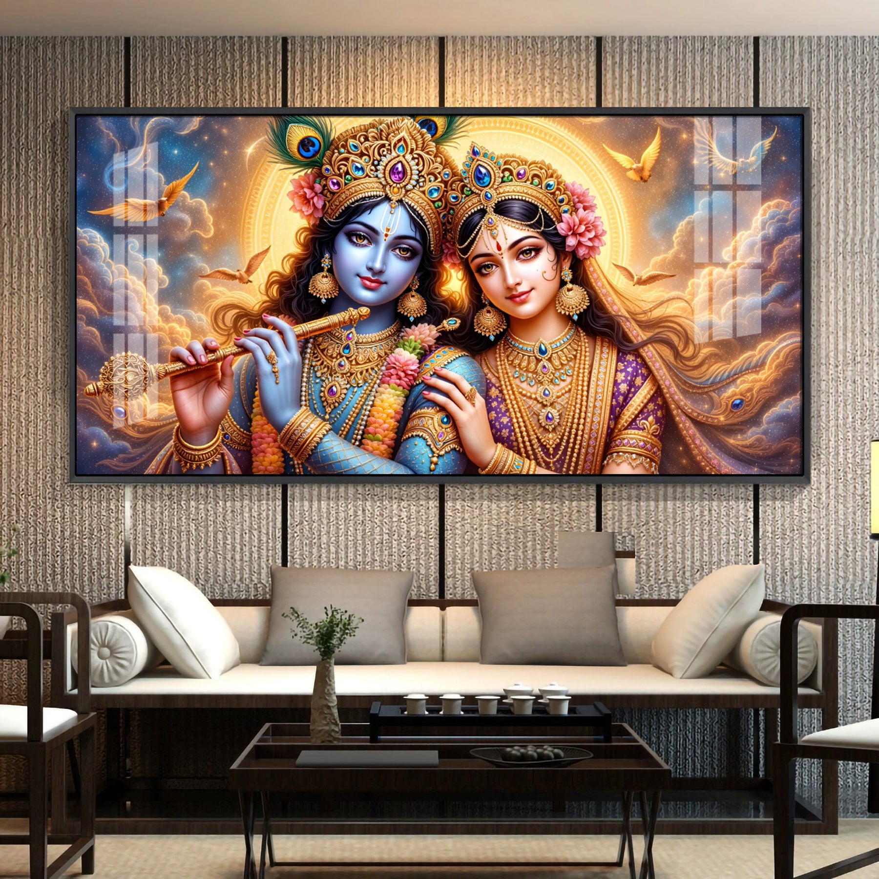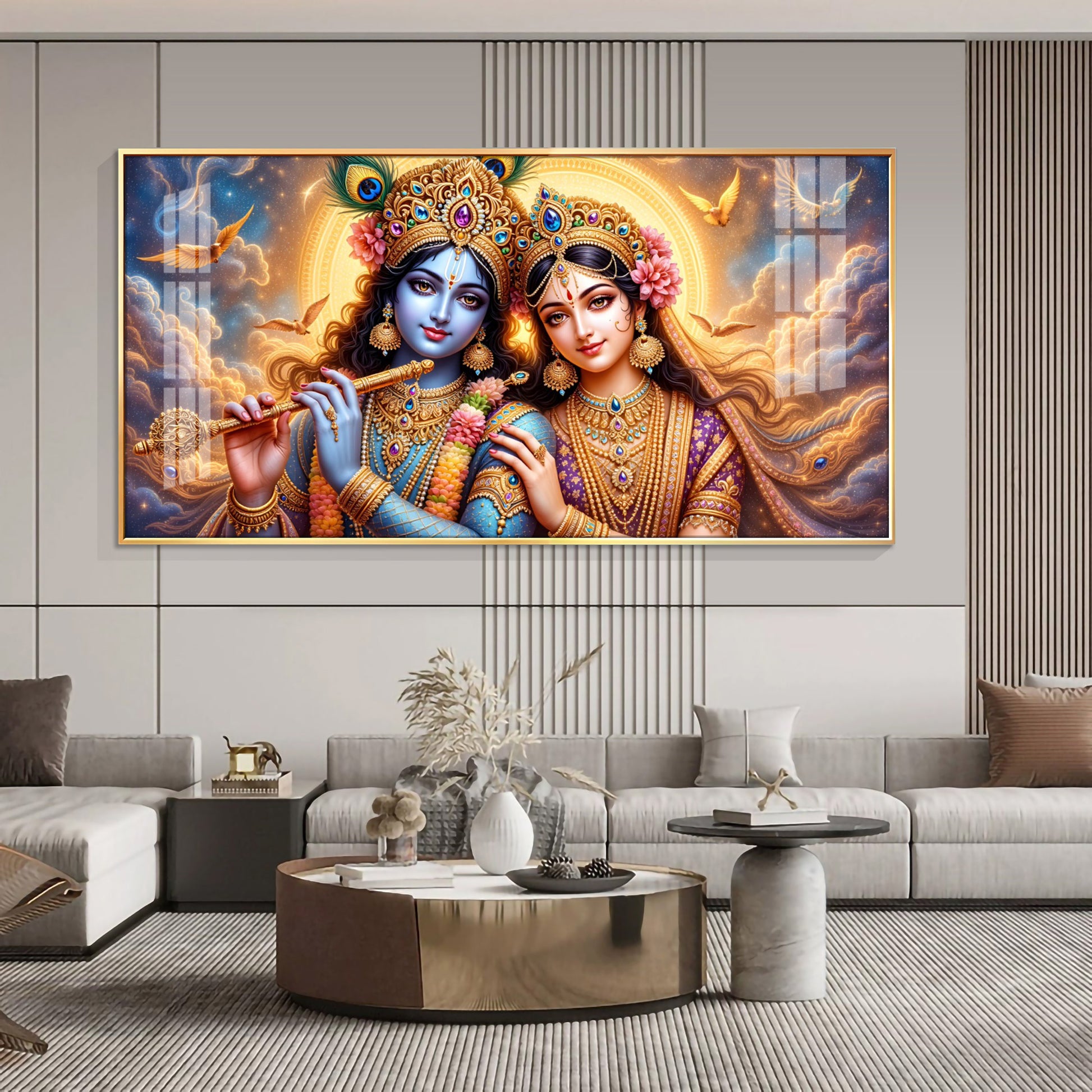 Shri Krishna And Radha In Sunburn Cloud Premium Acrylic Horizontal Wall Art