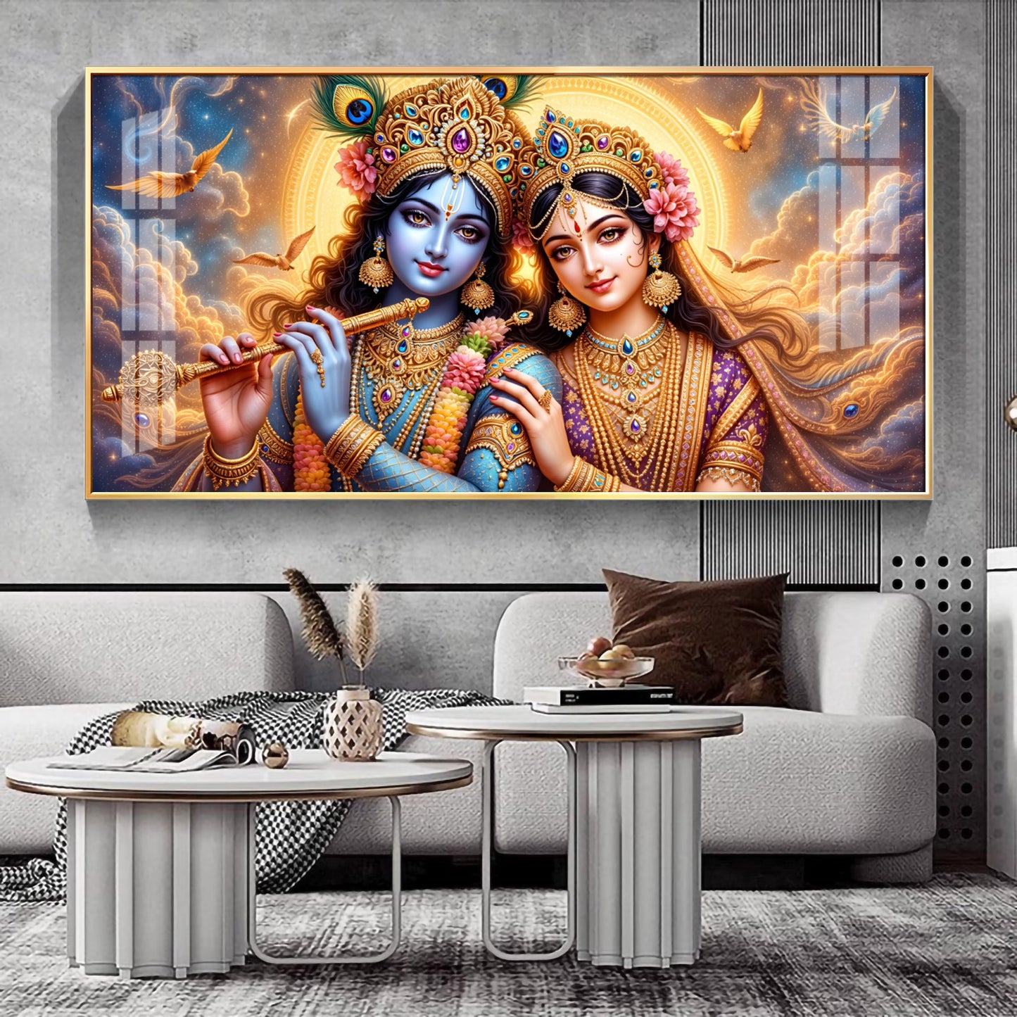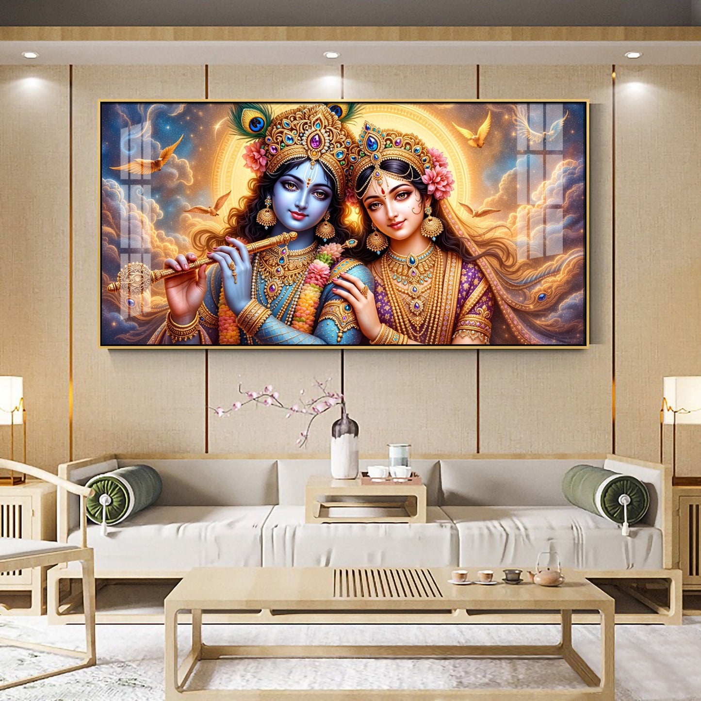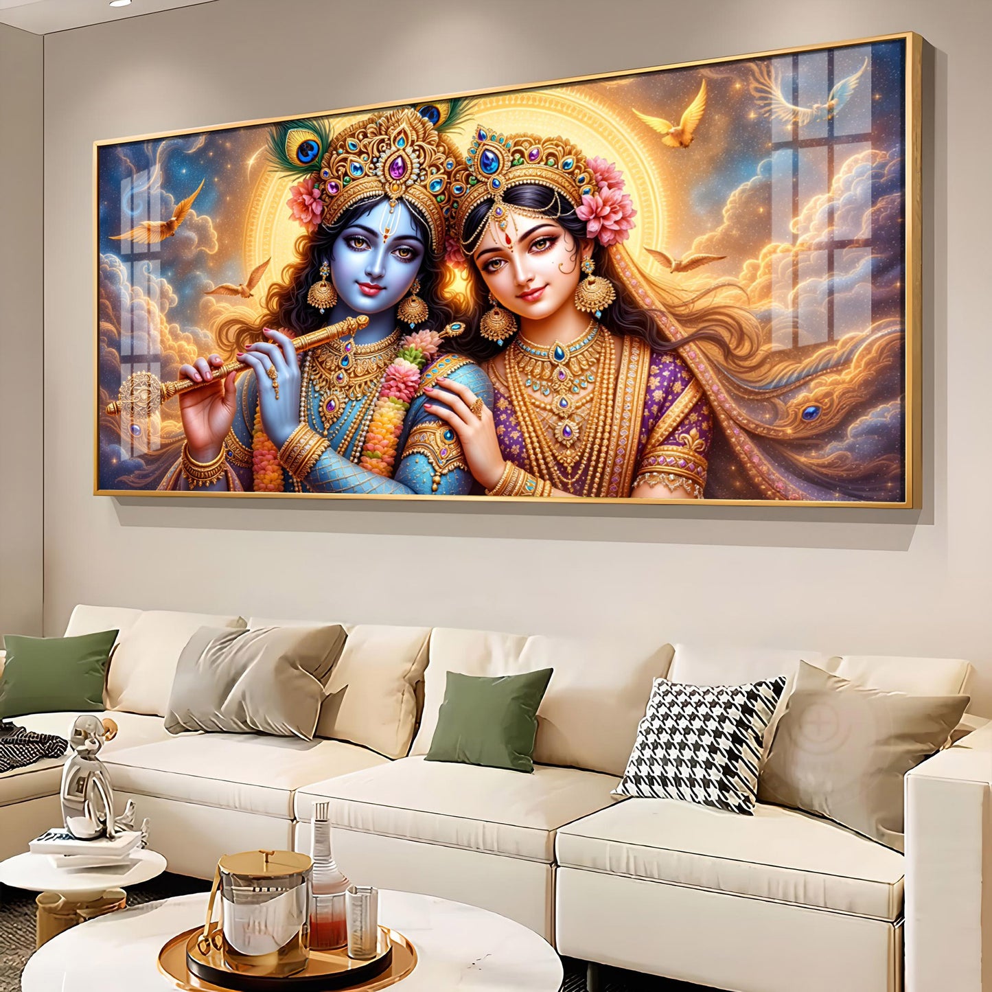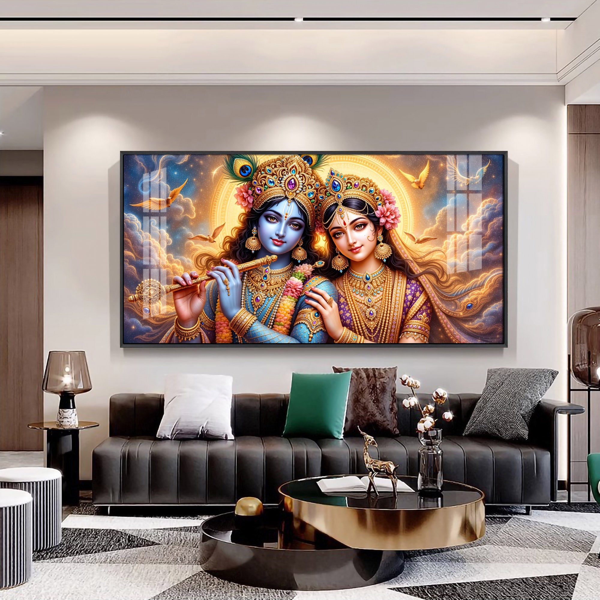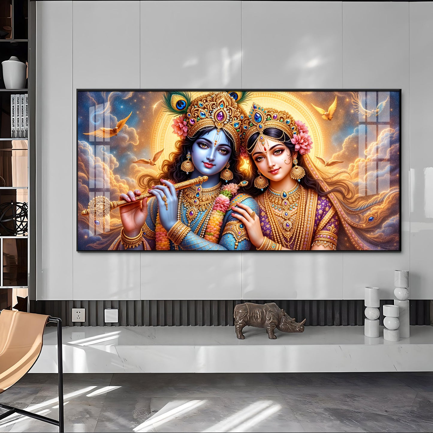 Shri Krishna And Radha In Sunburn Cloud Premium Acrylic Horizontal Wall Art