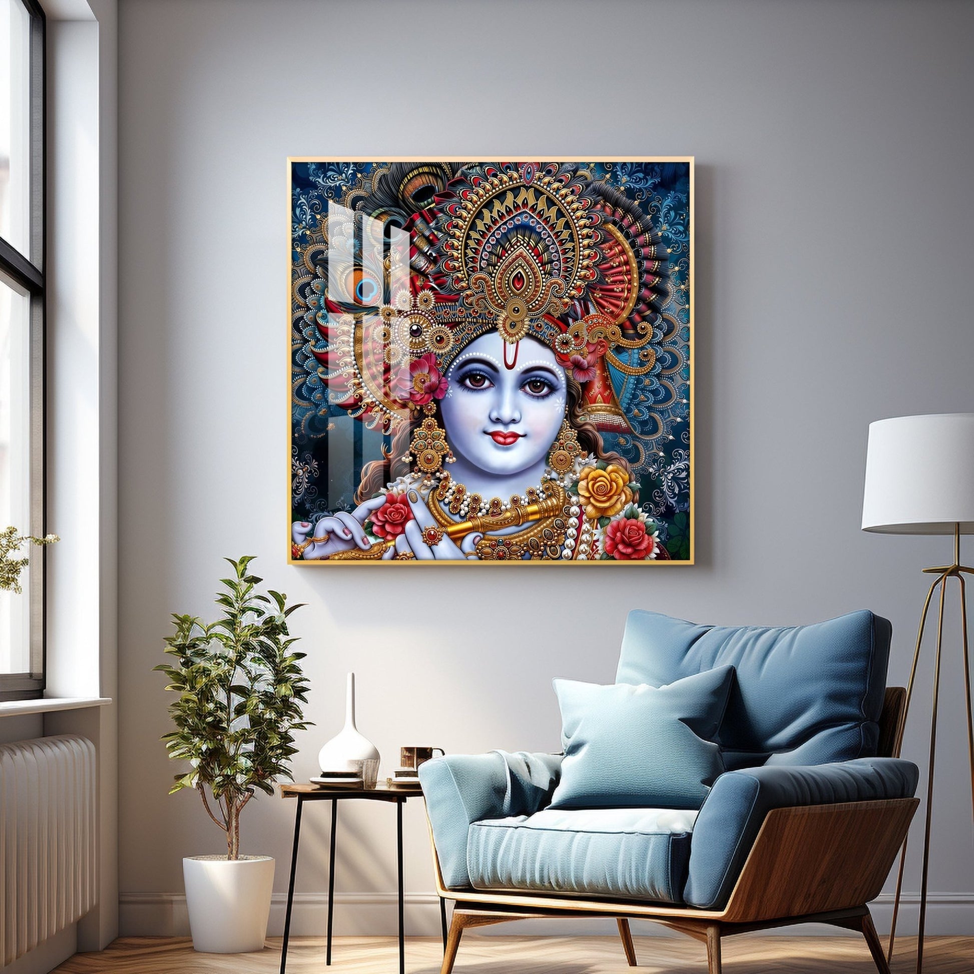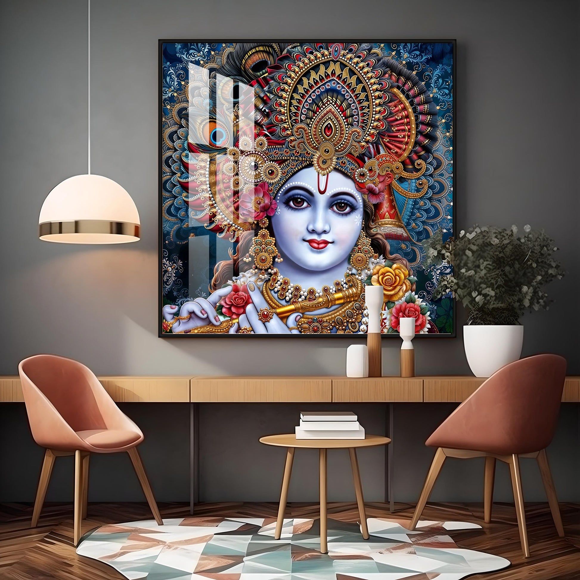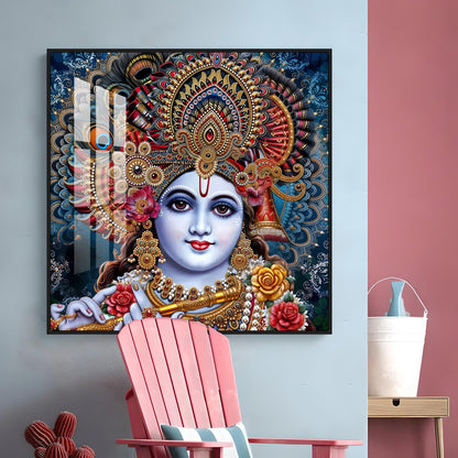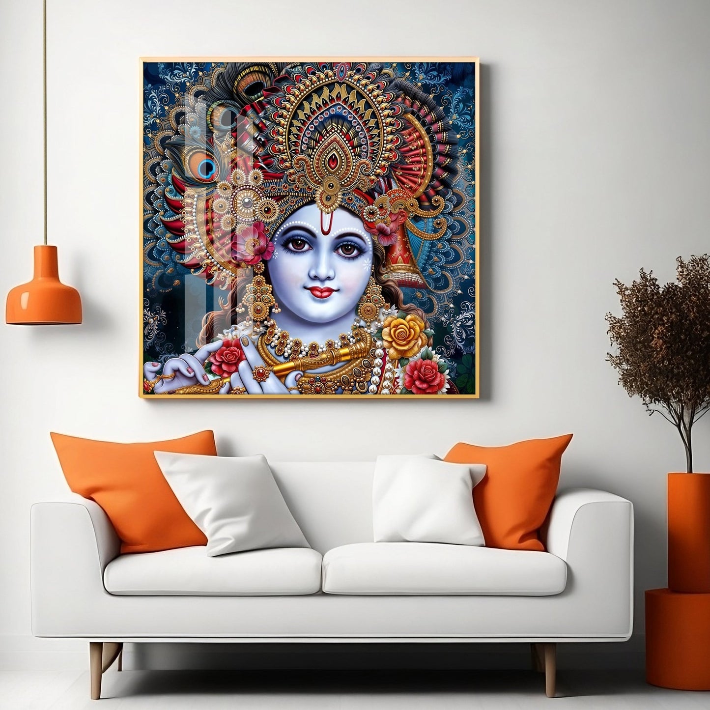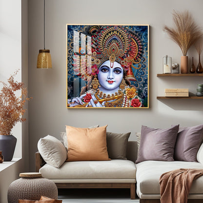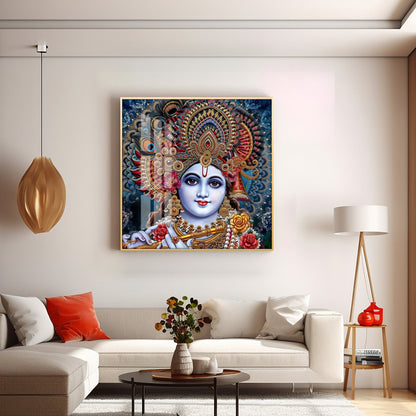 Shri Krishna With Bansuri Premium Acrylic Square Wall Art