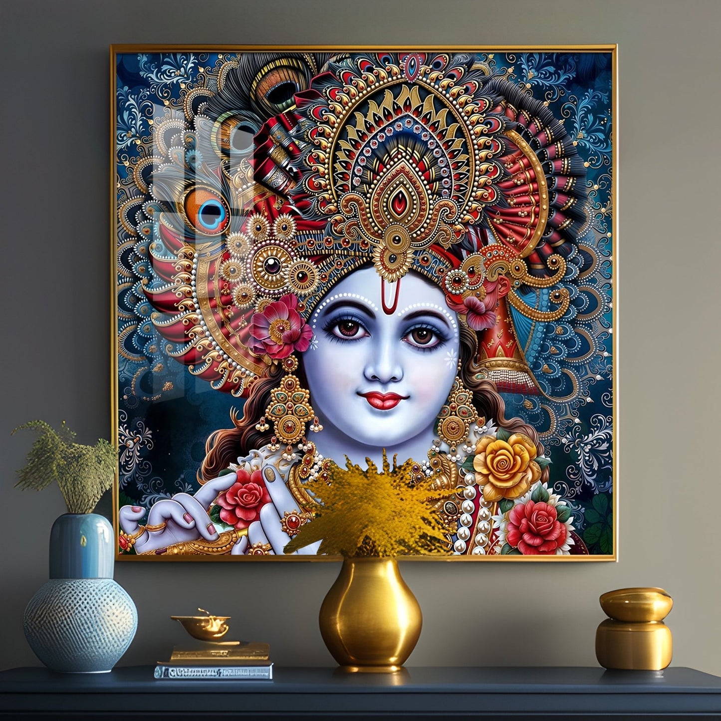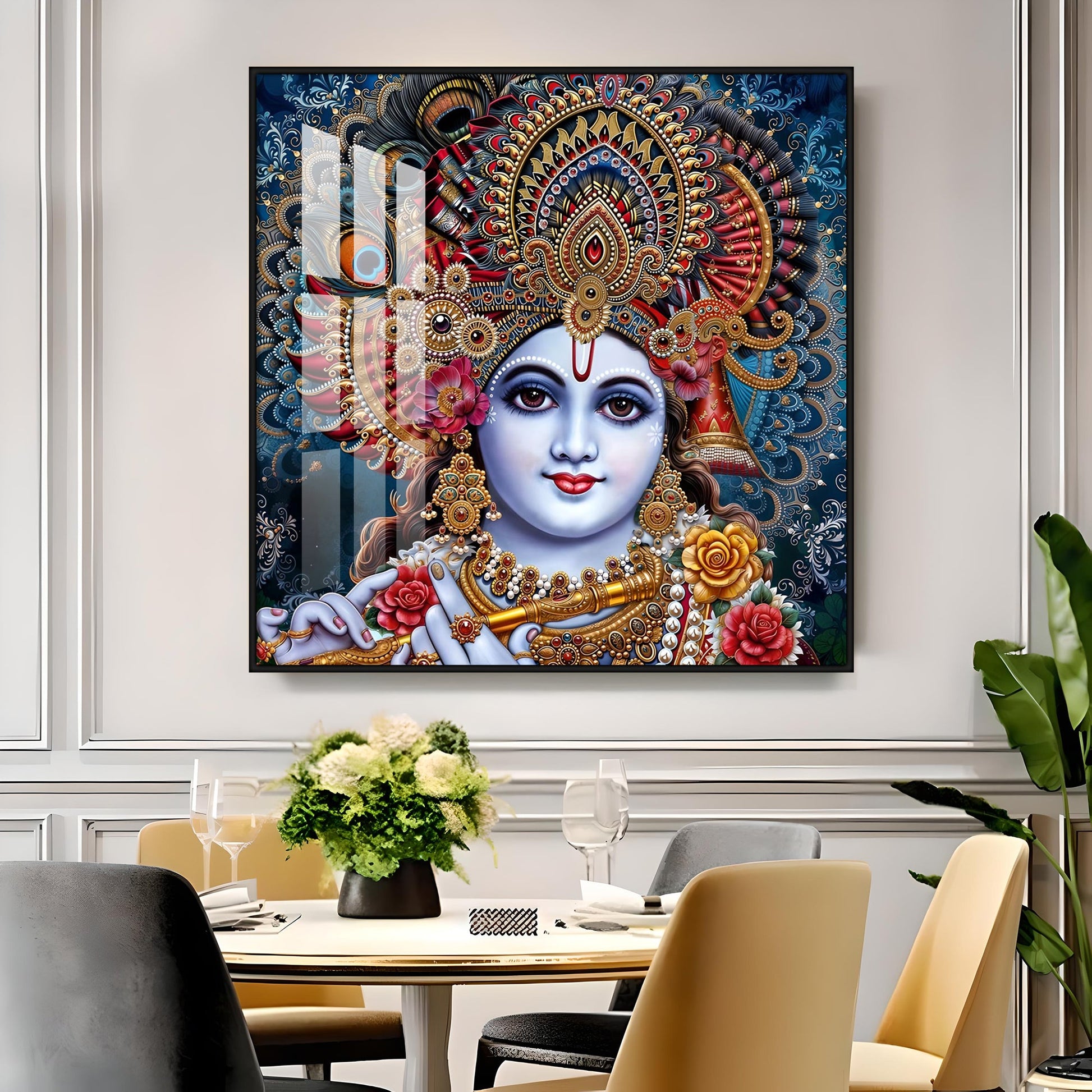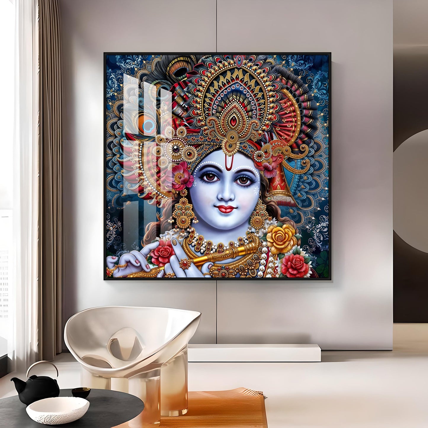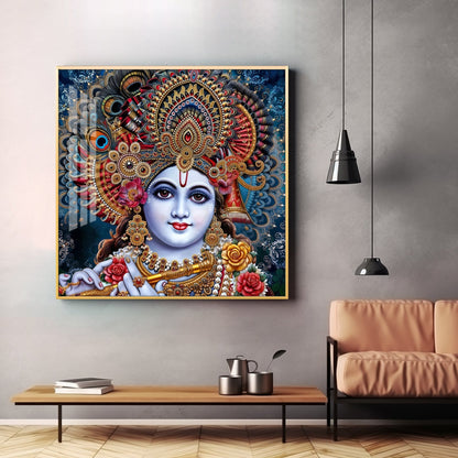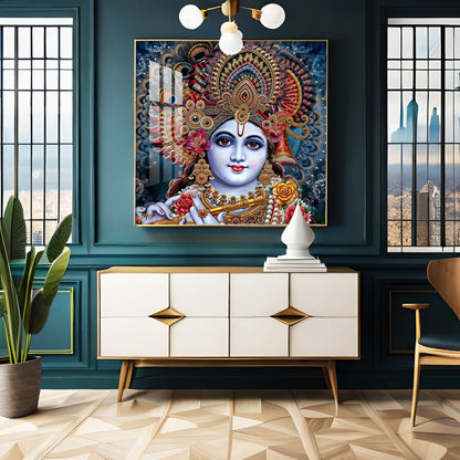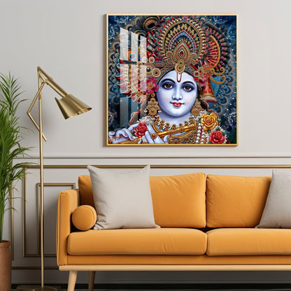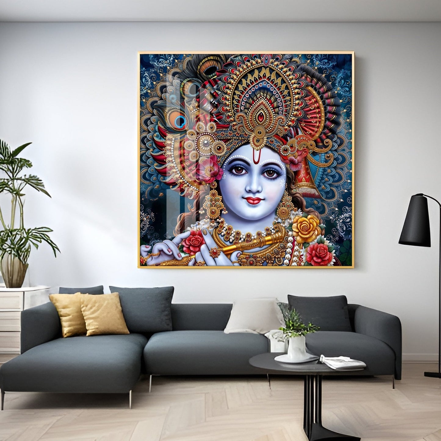 Shri Krishna With Bansuri Premium Acrylic Square Wall Art
