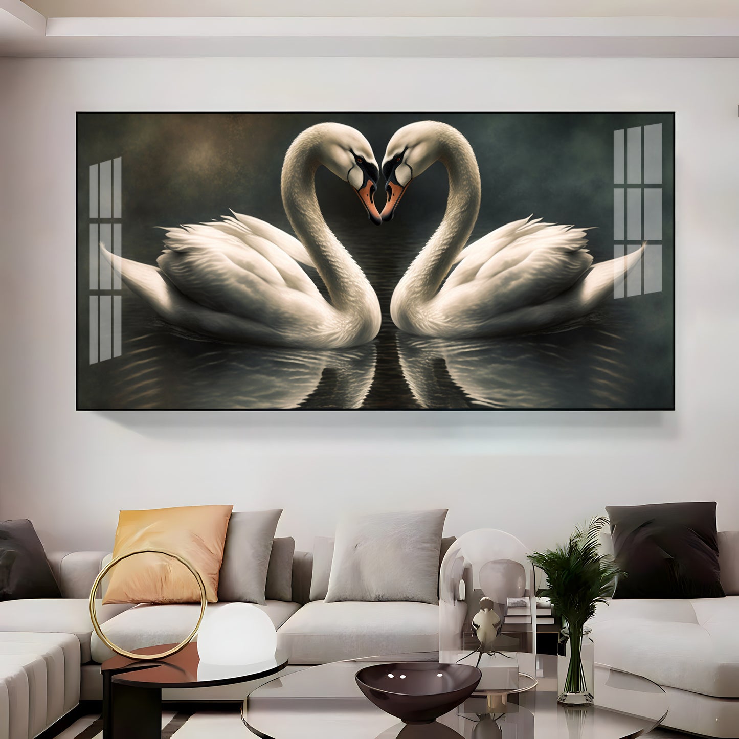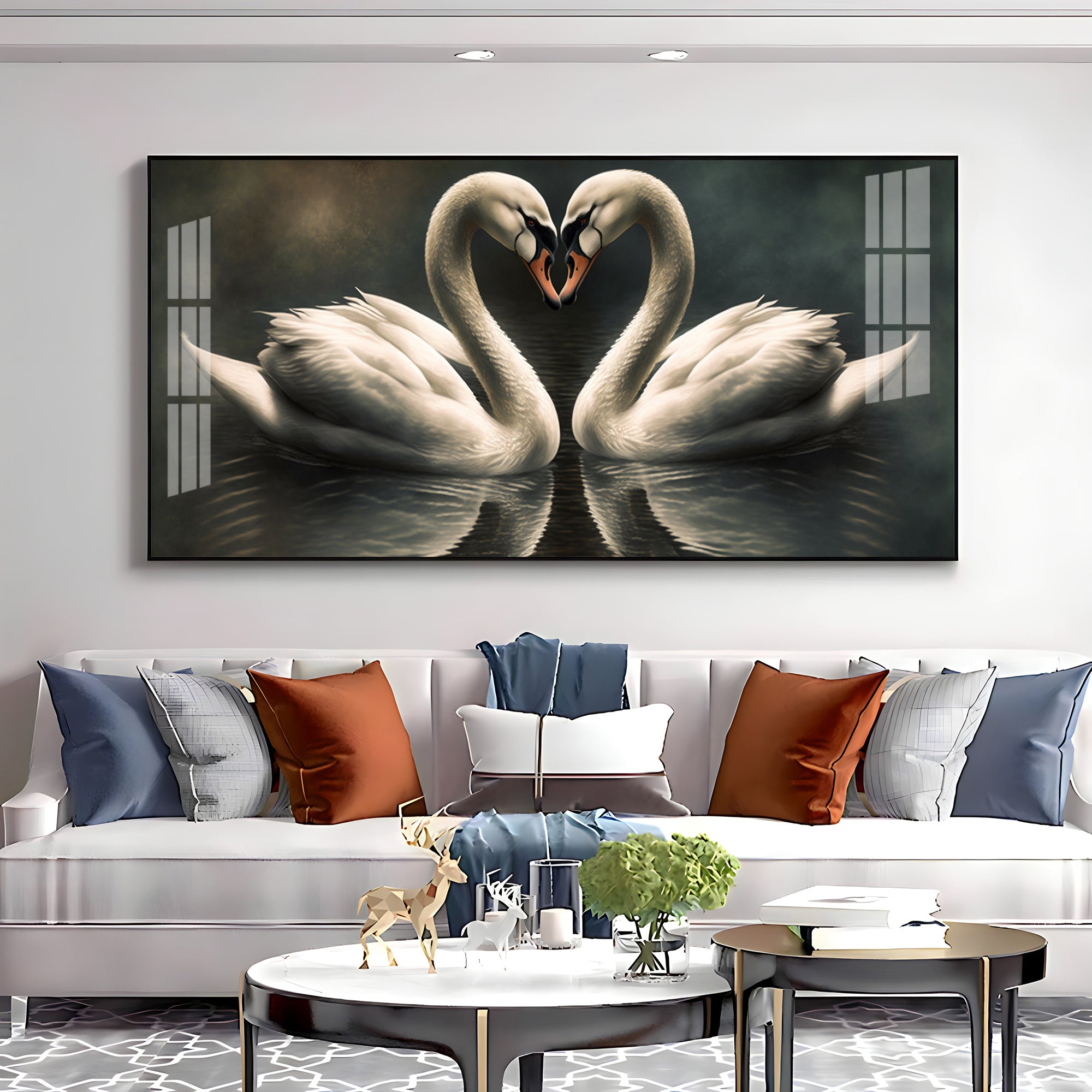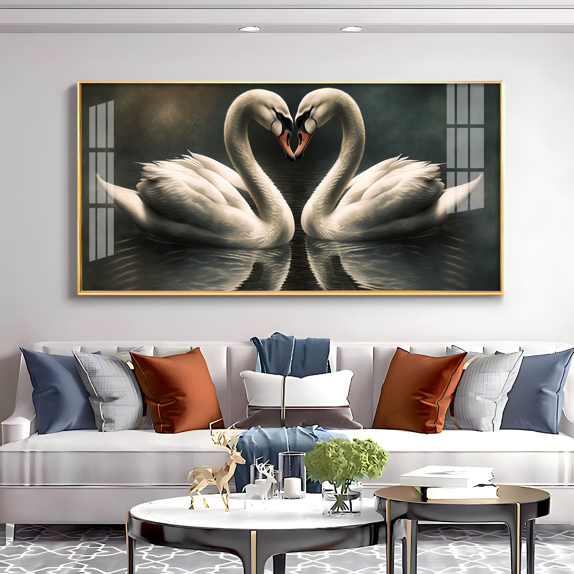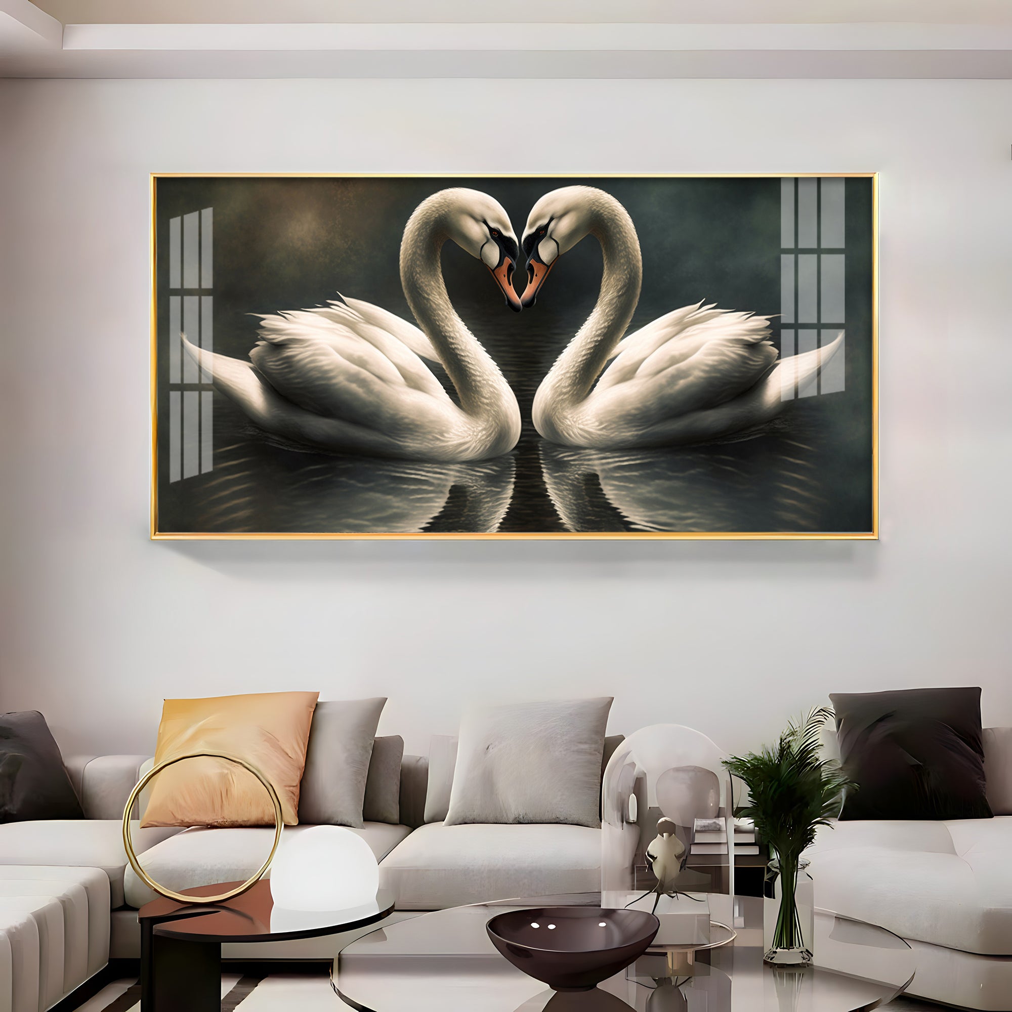 Soulful Vibrant Two Swan Premium Acrylic Horizontal Wall Art
