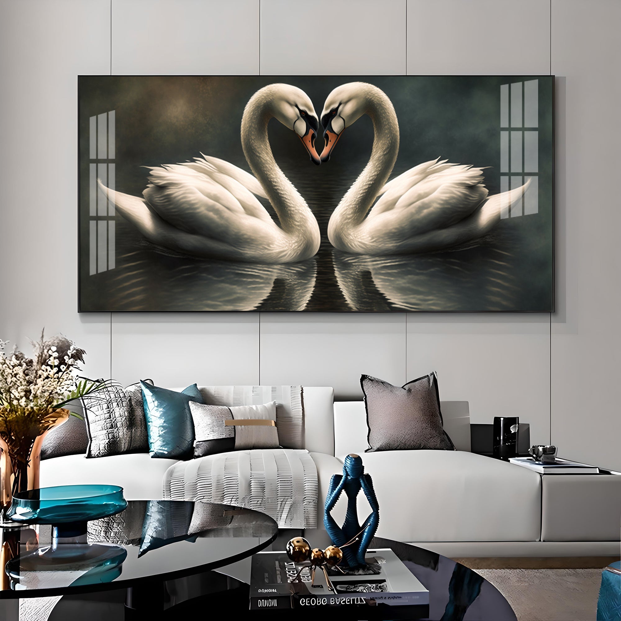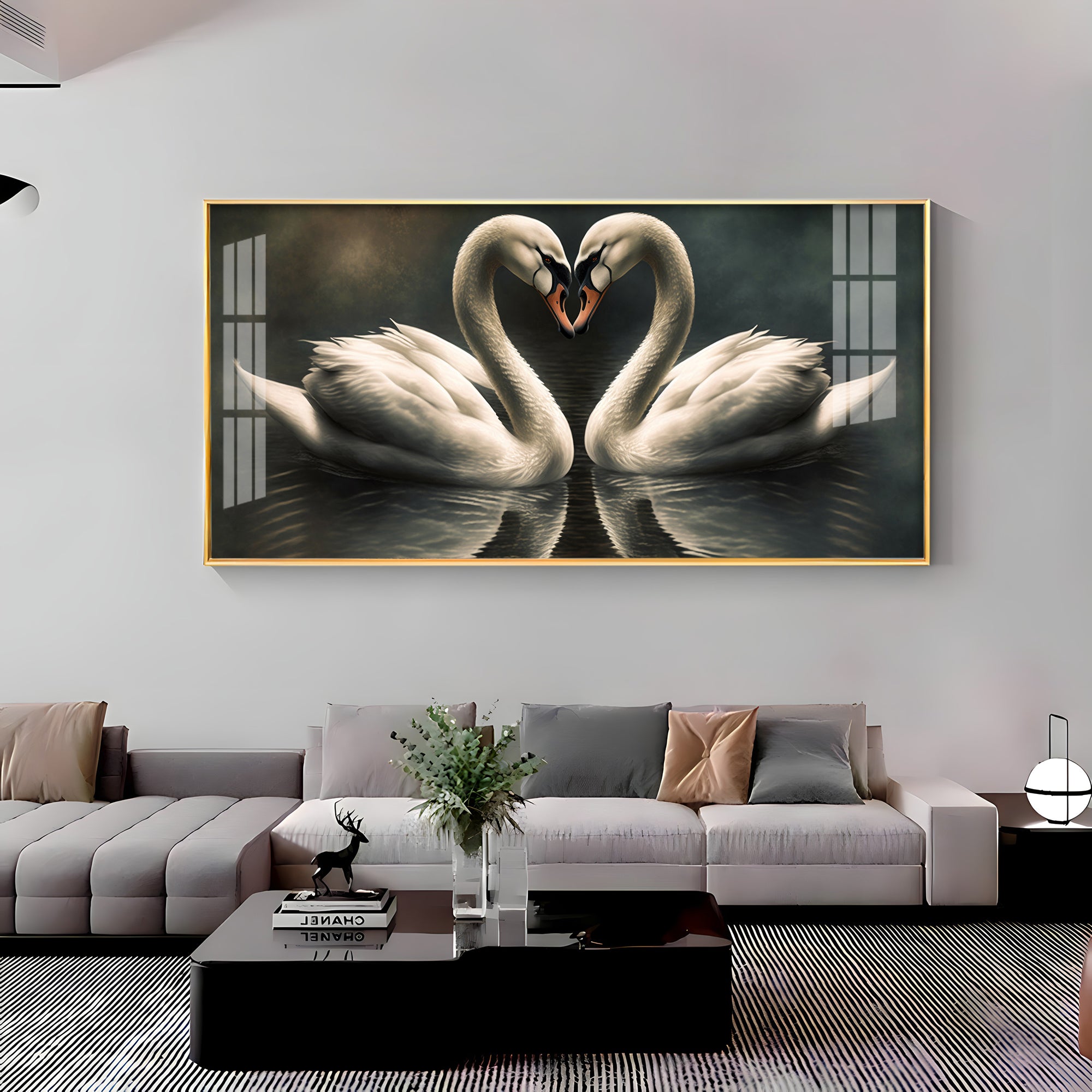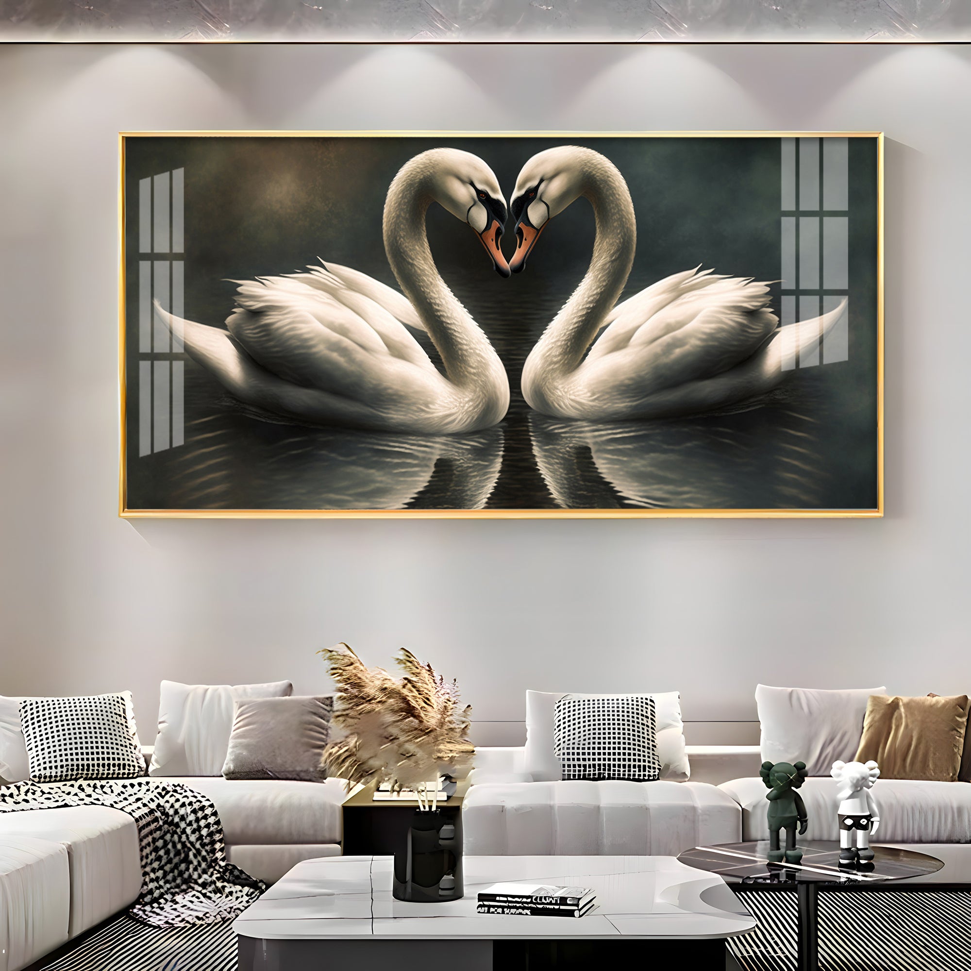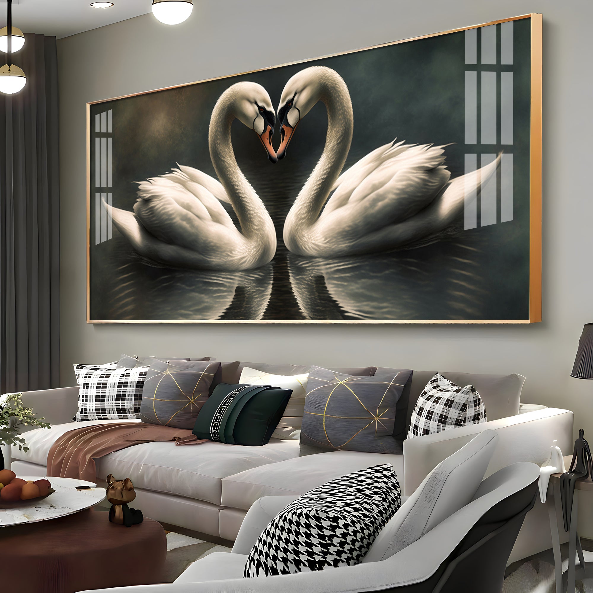 Soulful Vibrant Two Swan Premium Acrylic Horizontal Wall Art