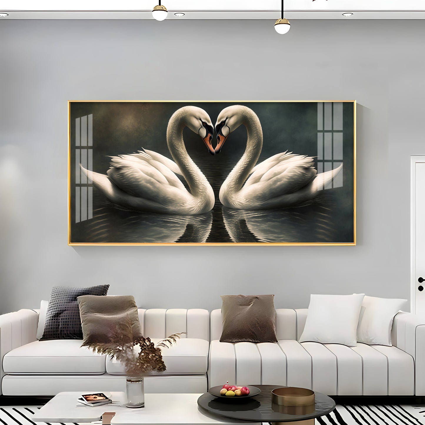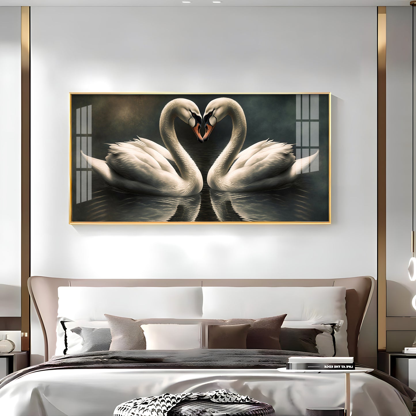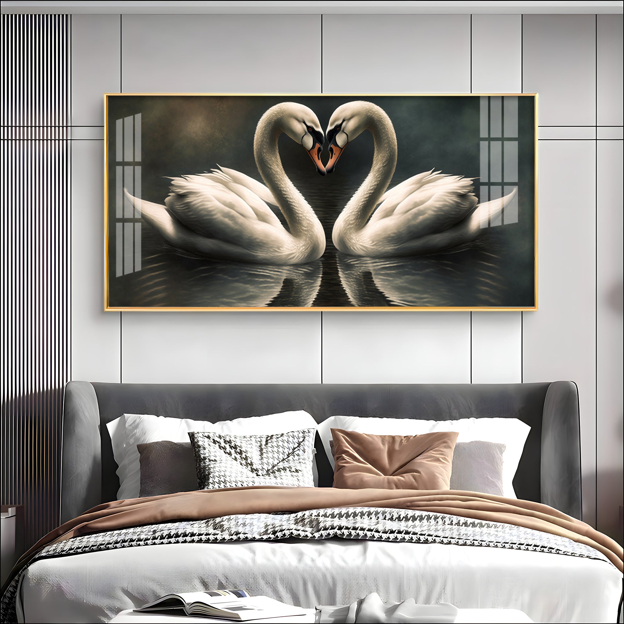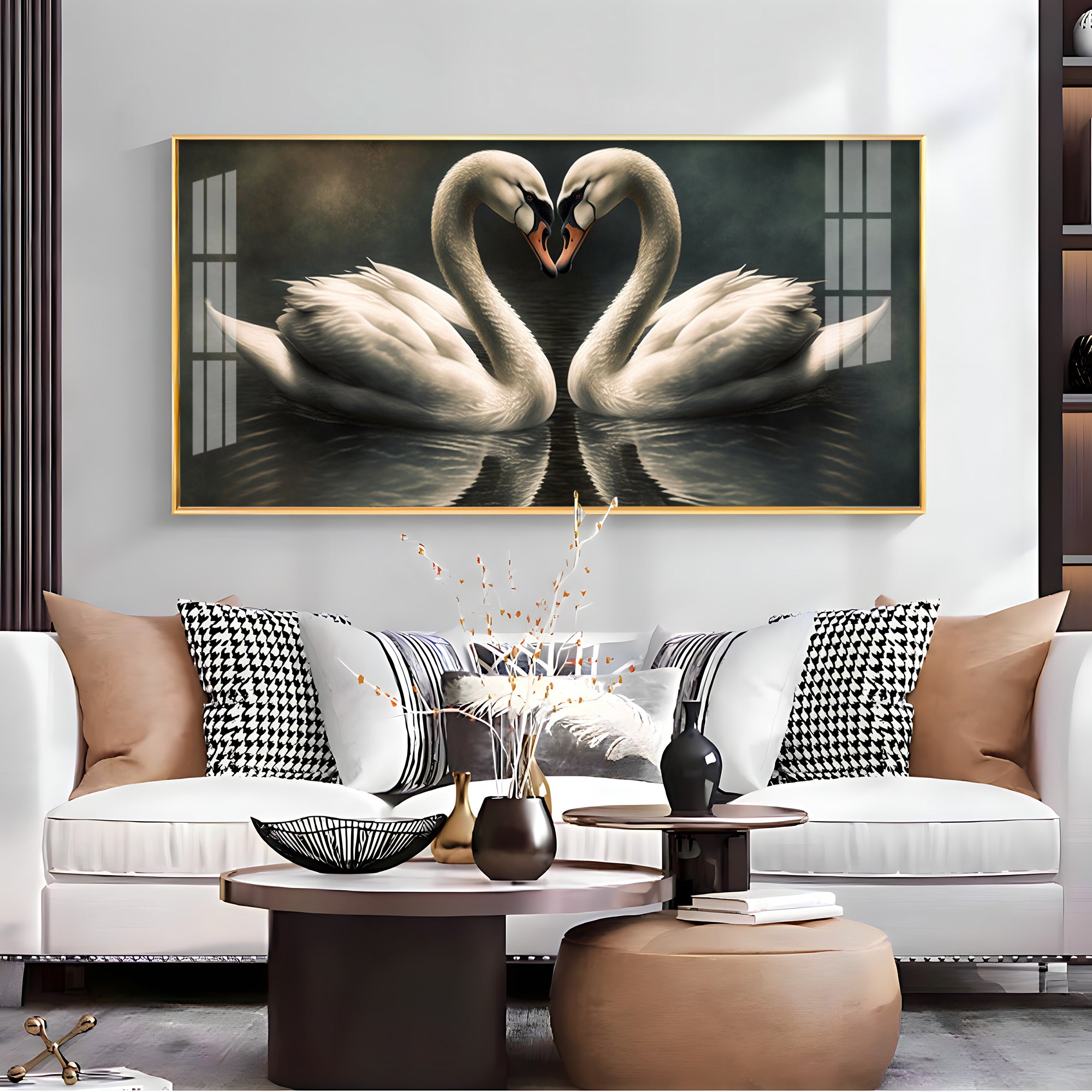 Soulful Vibrant Two Swan Premium Acrylic Horizontal Wall Art