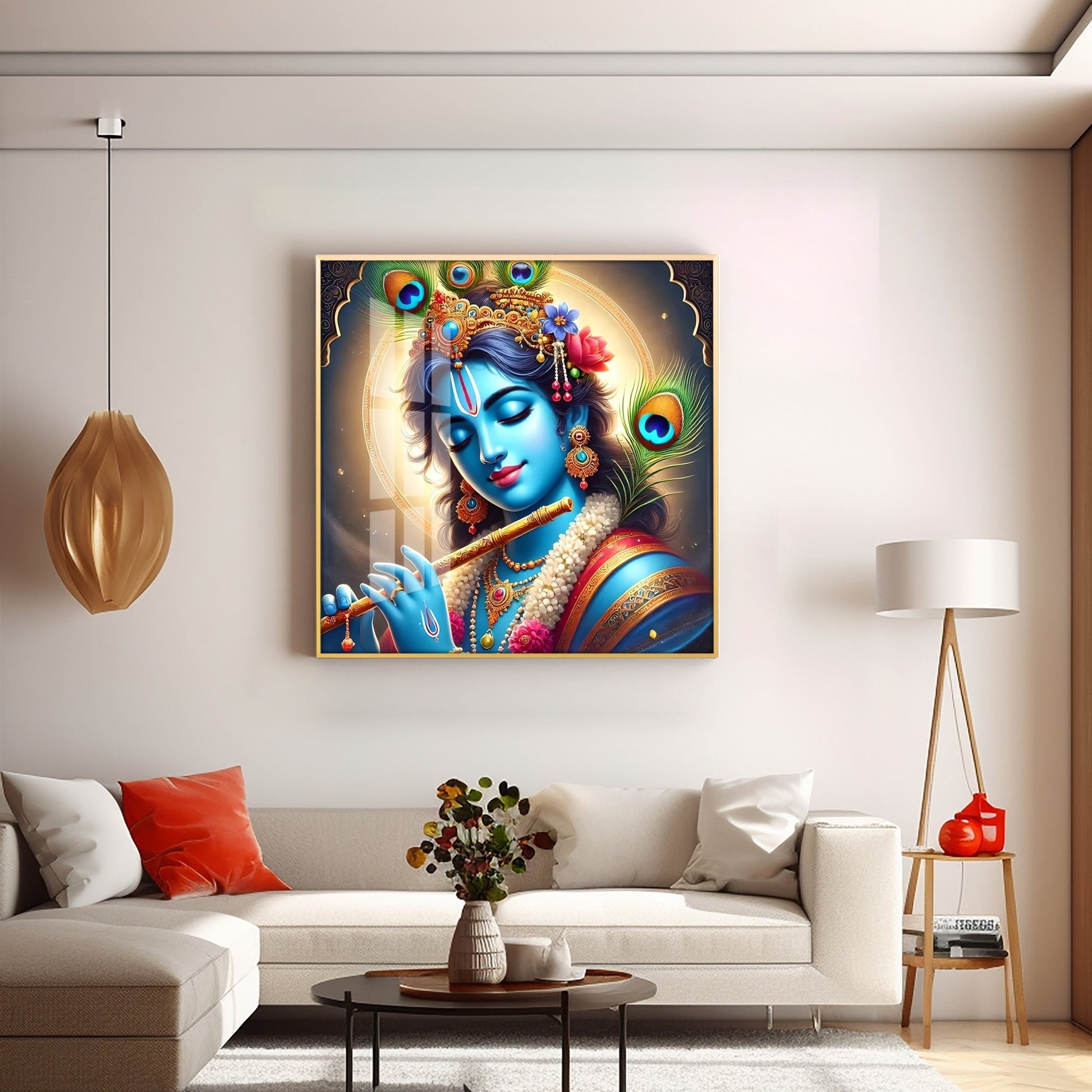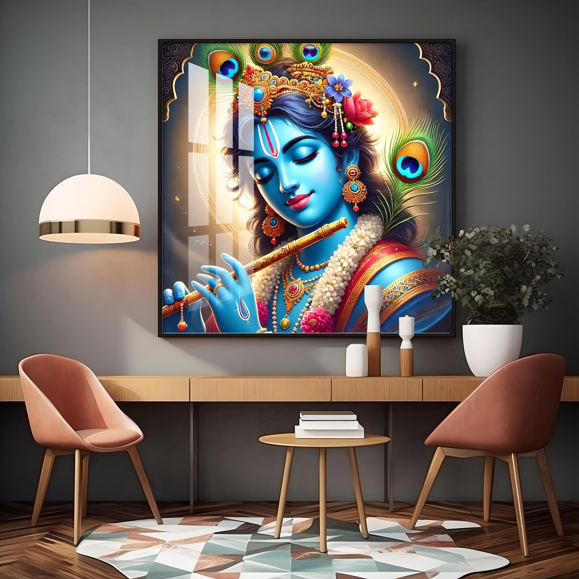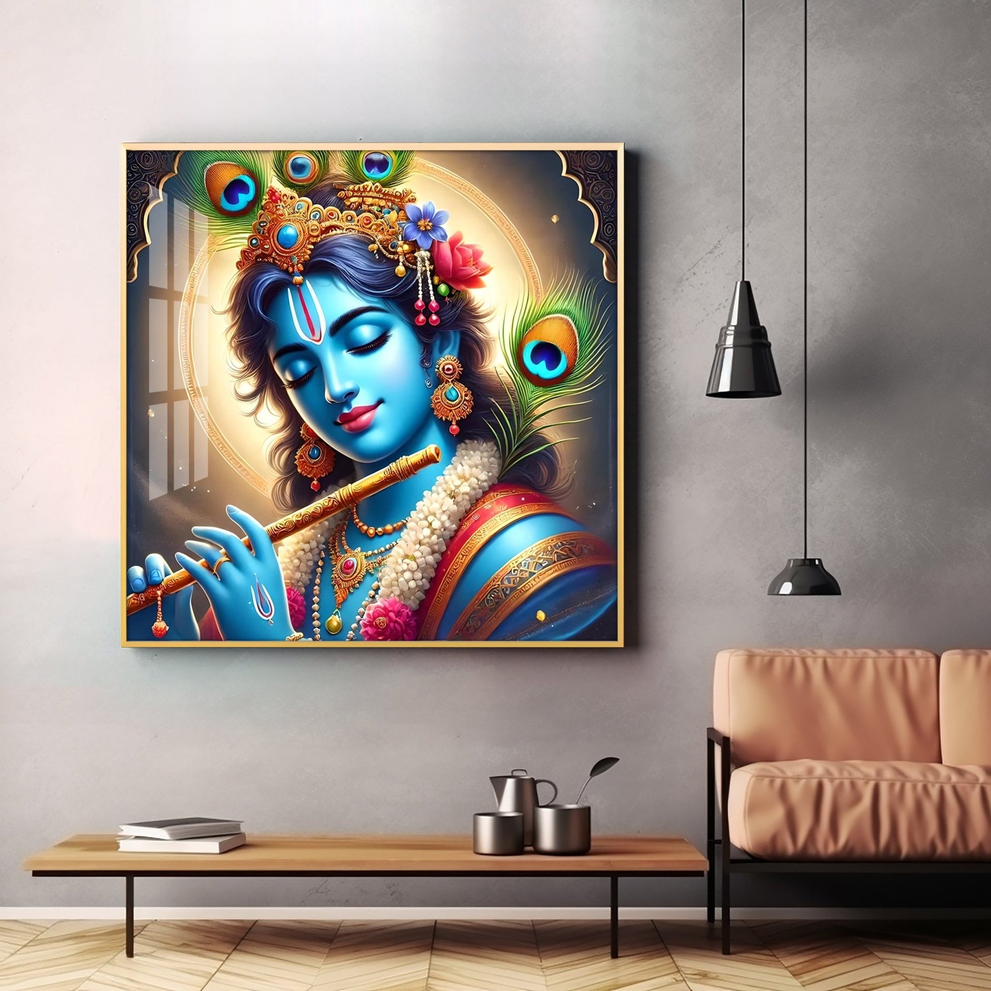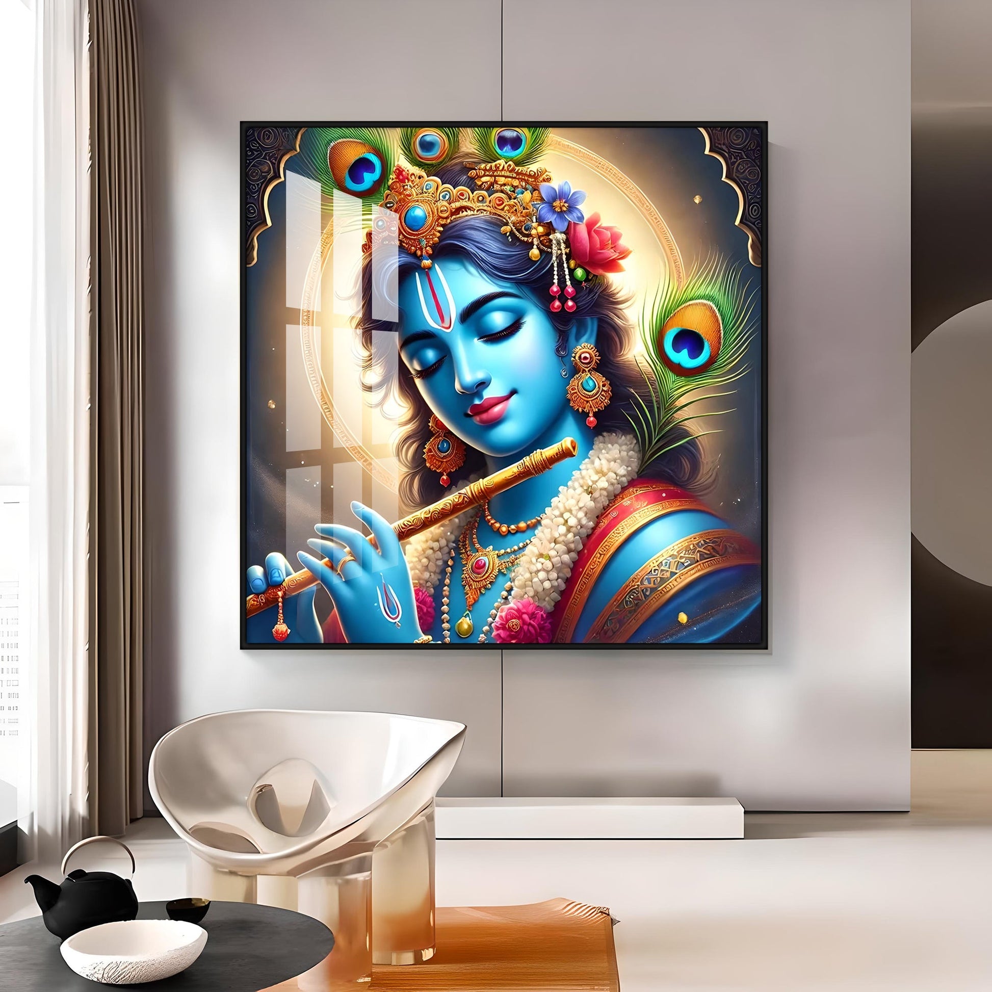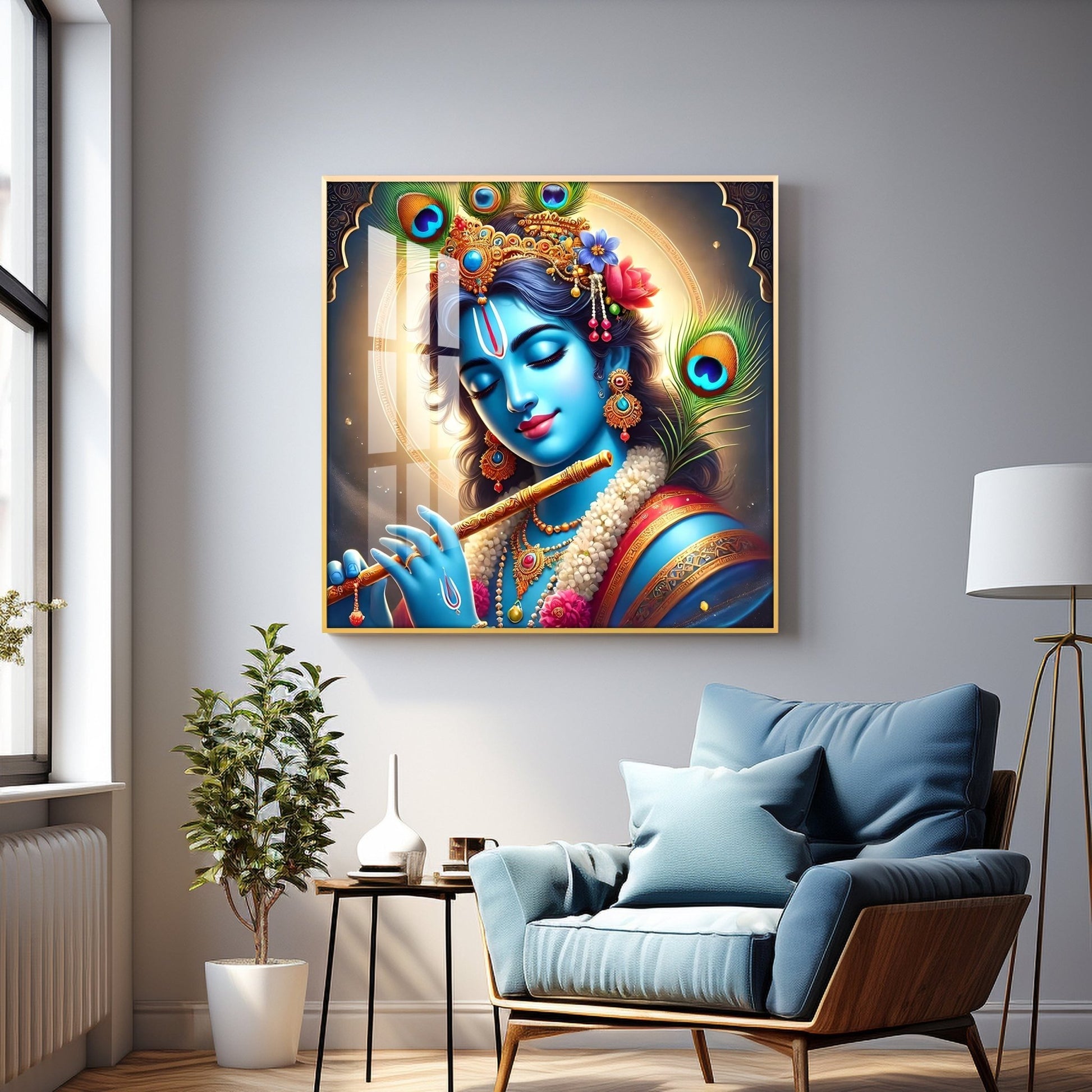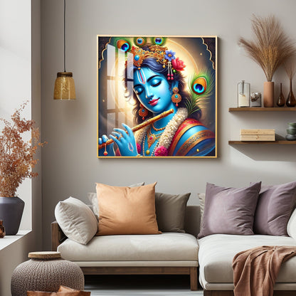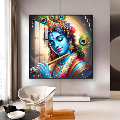 Spiritual Aura Of Krishna Premium Acrylic Square Wall Art
