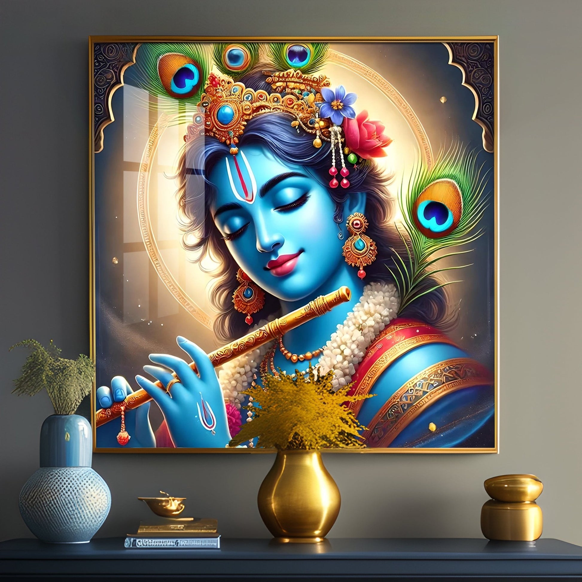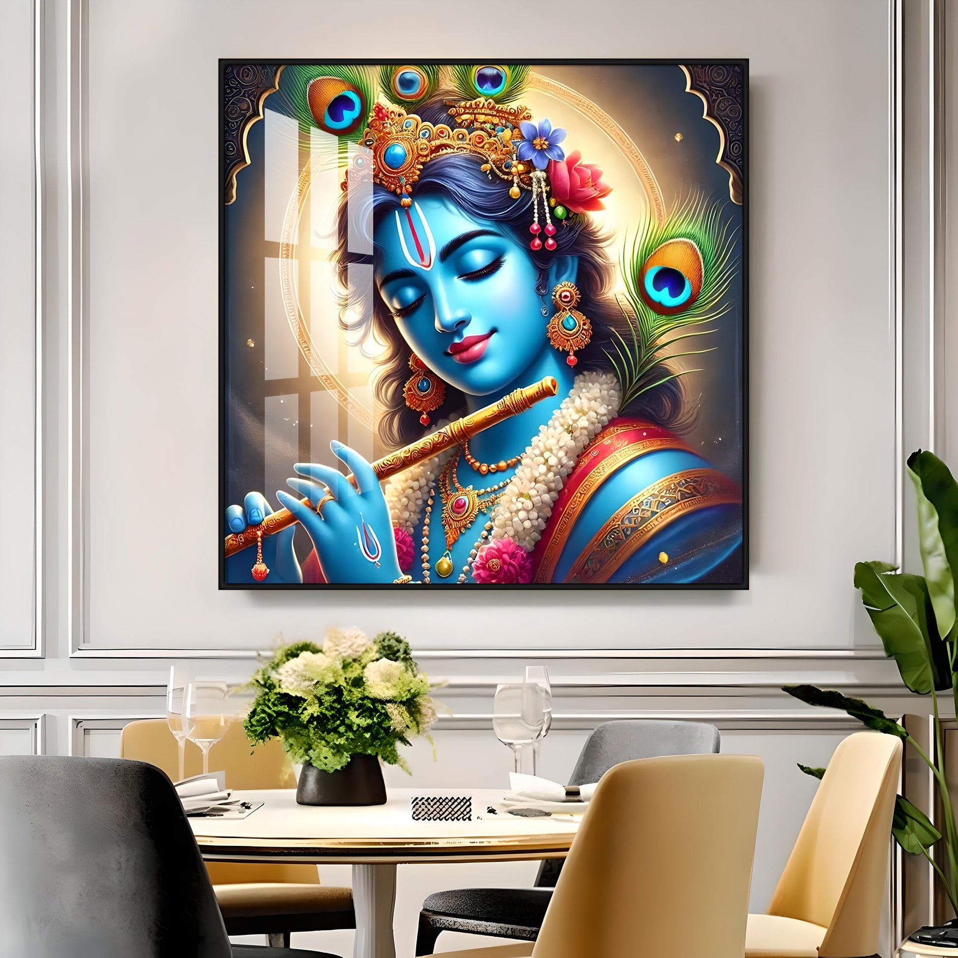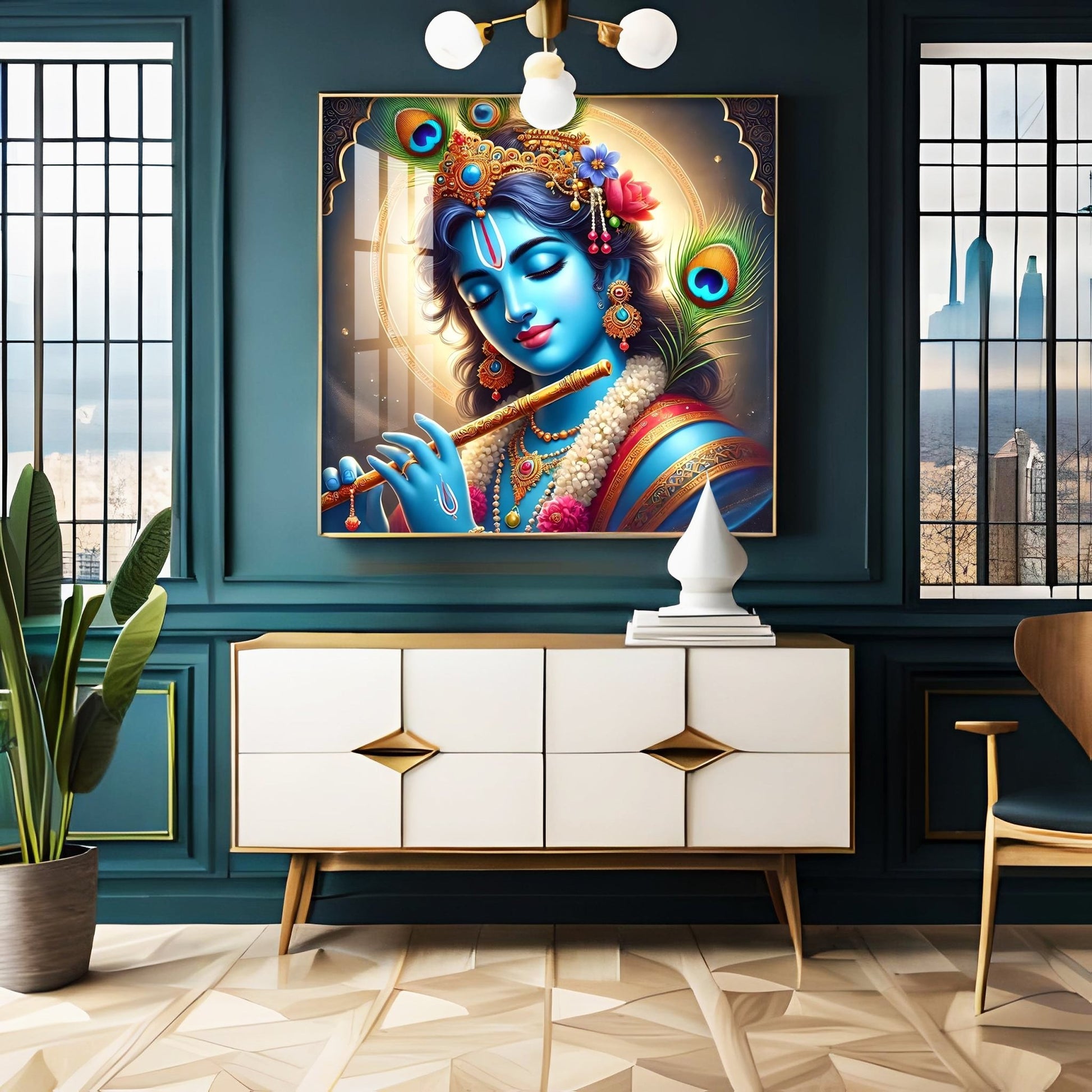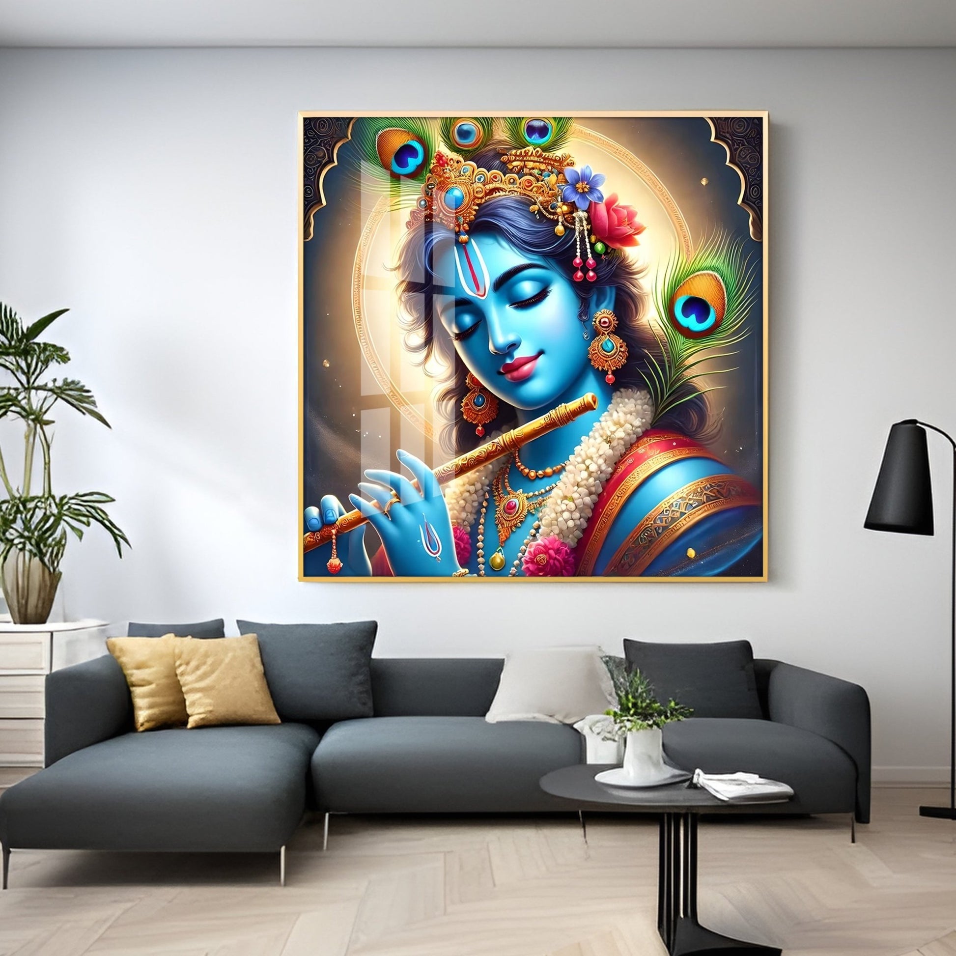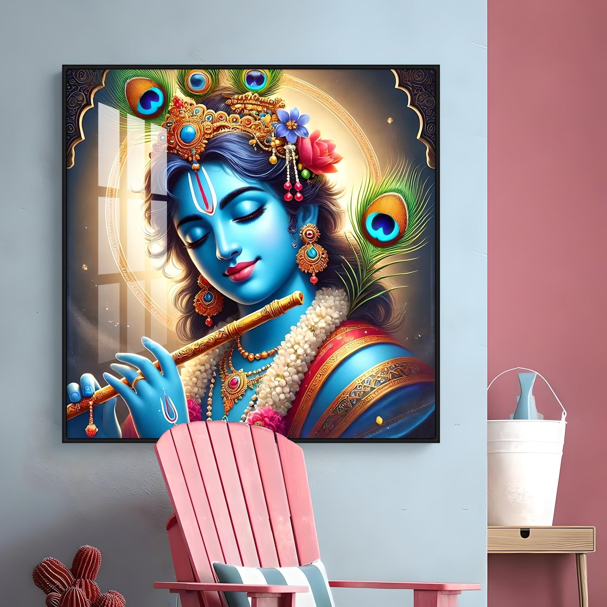 Spiritual Aura Of Krishna Premium Acrylic Square Wall Art