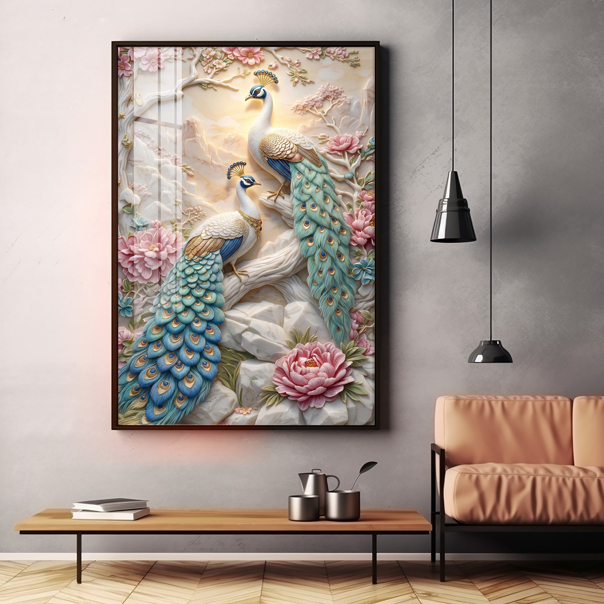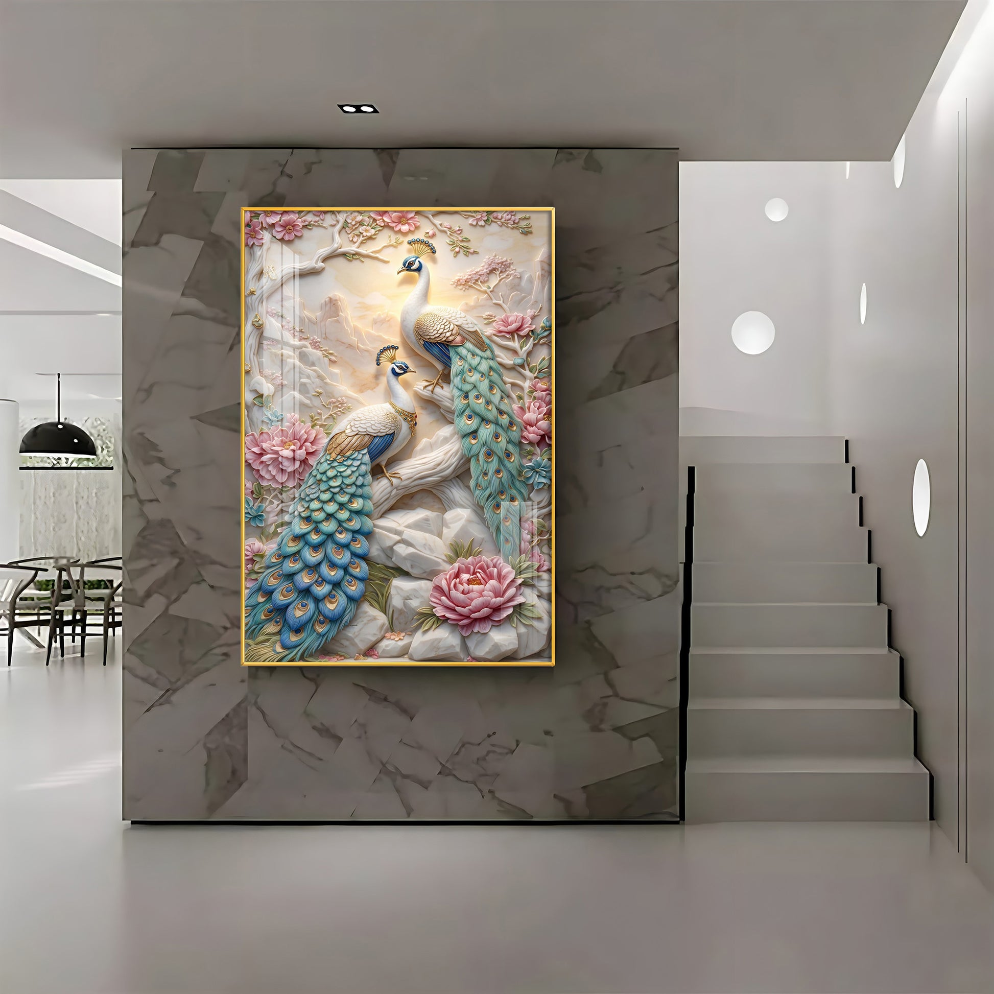 Stylist Peacock and Floral Design Premium Acrylic Vertical Wall Art