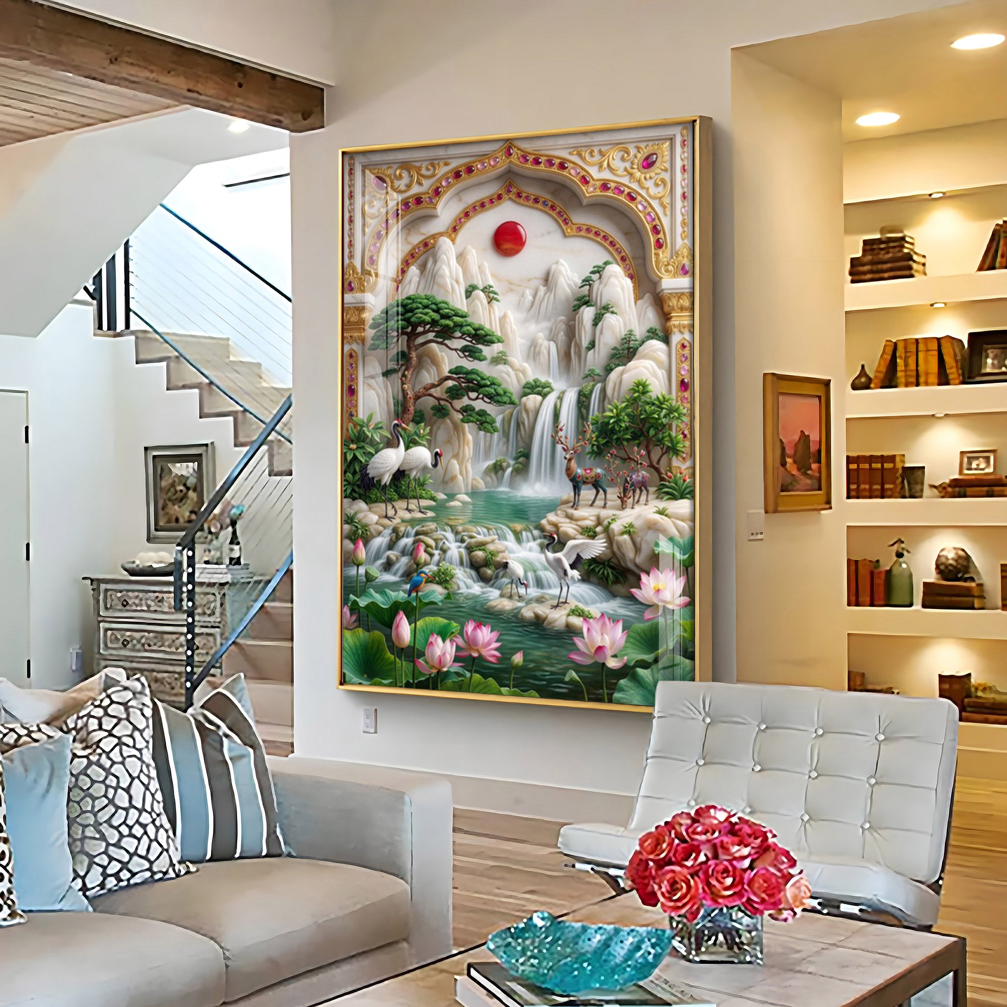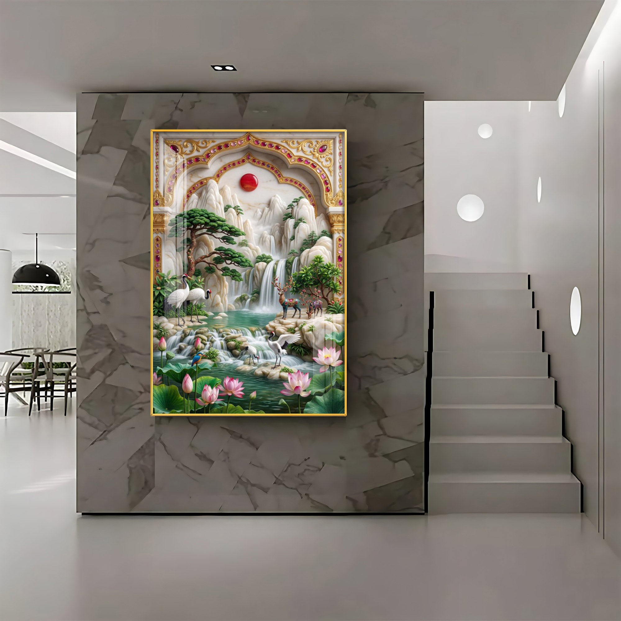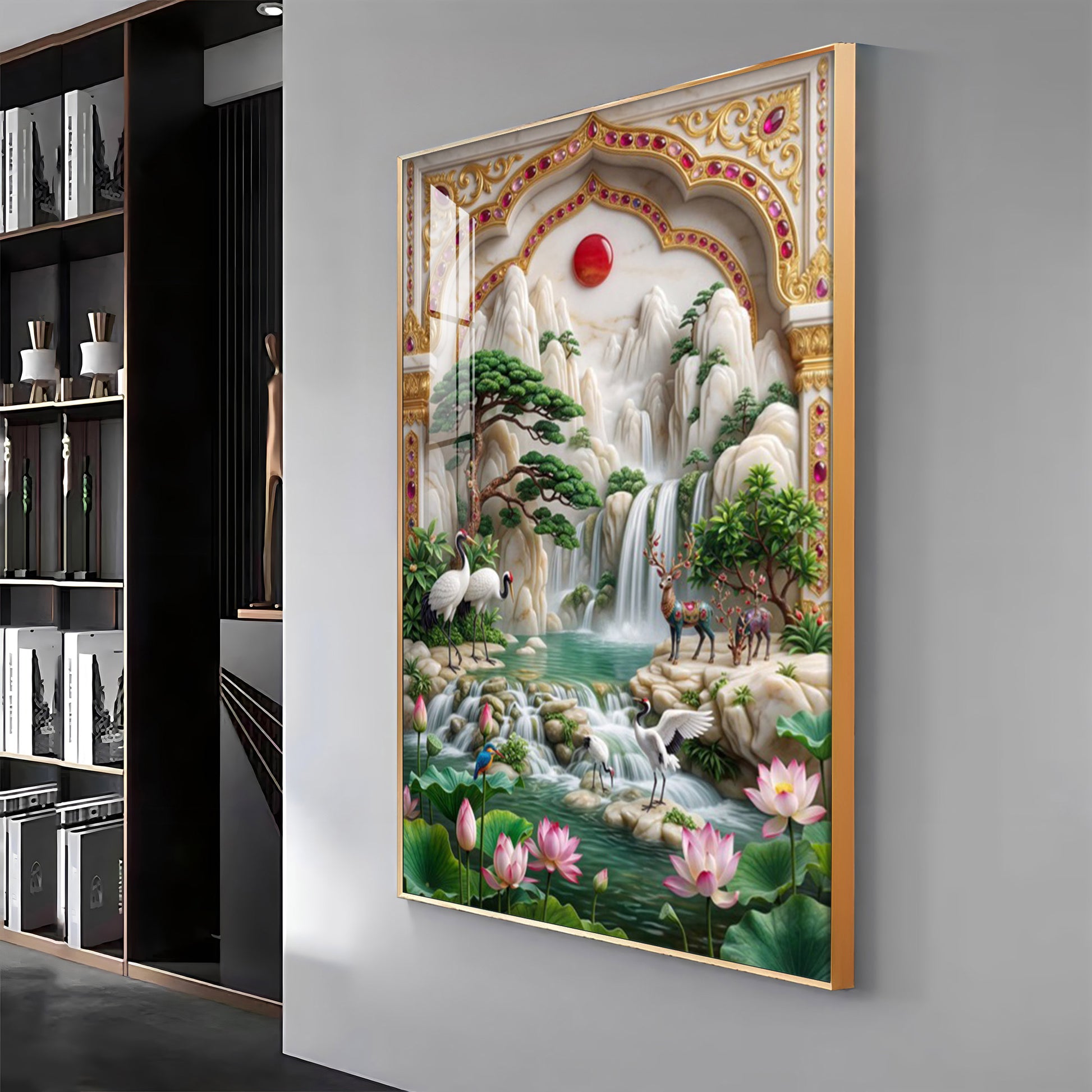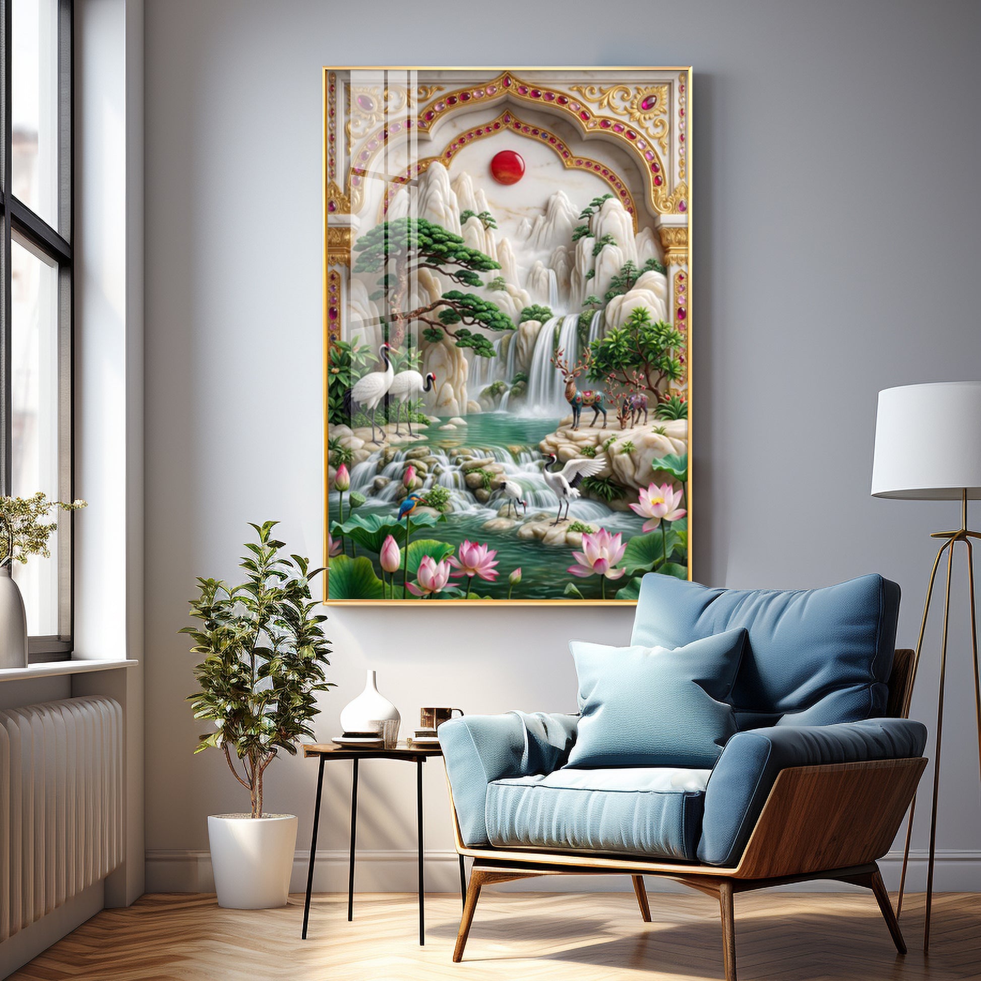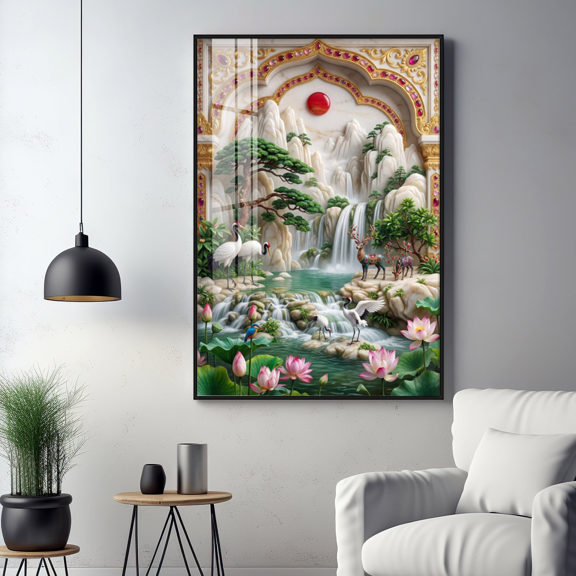 Our Framed Acrylic Wall Art is easy to hang. The metal hooks are included on the corners of your ordered wall art. You can simply mount it to your wall.