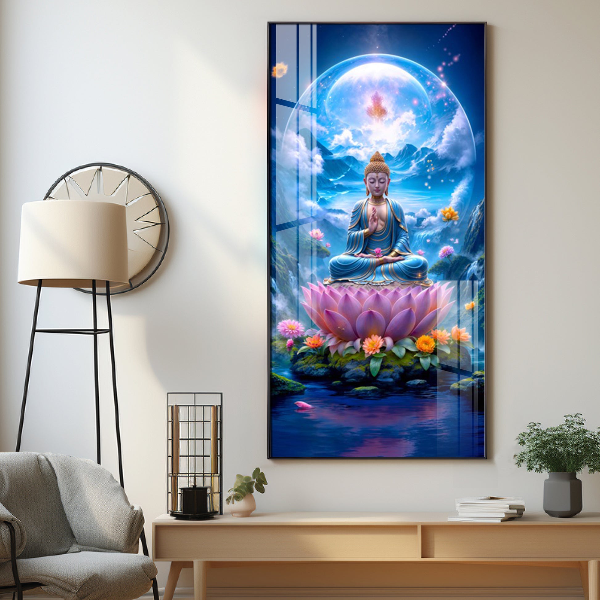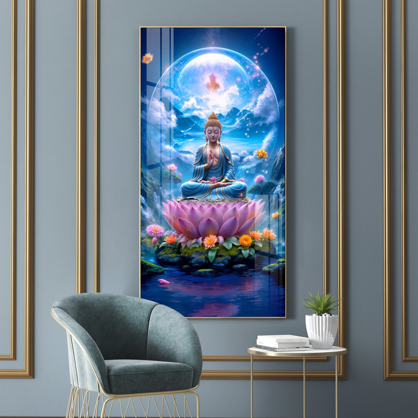 The Buddha's Lotus Premium Acrylic Vertical Wall Art