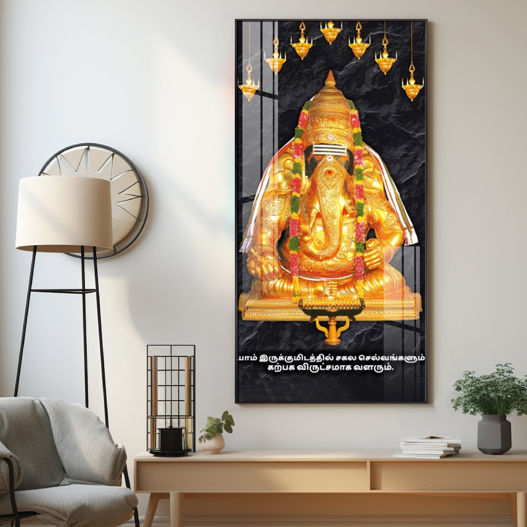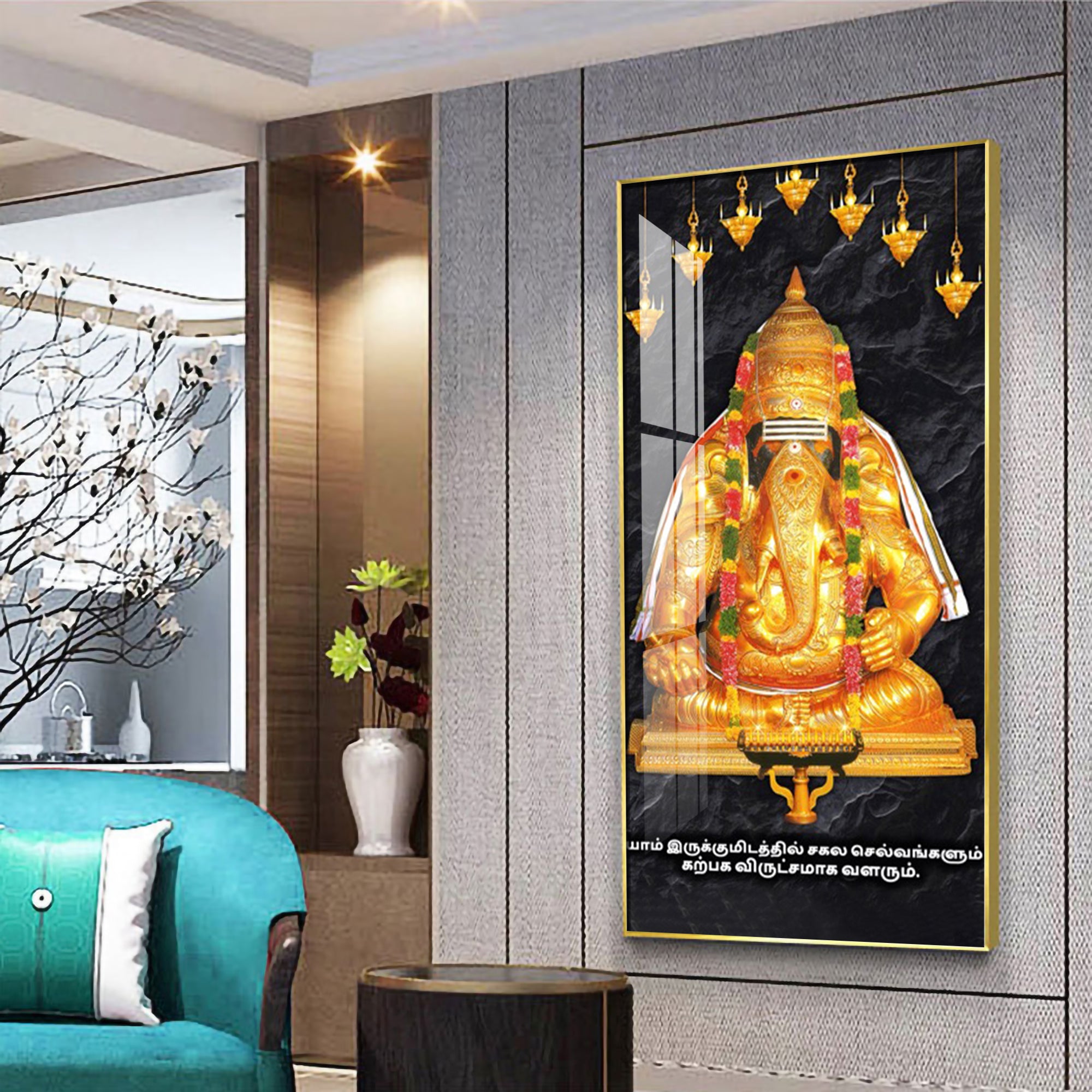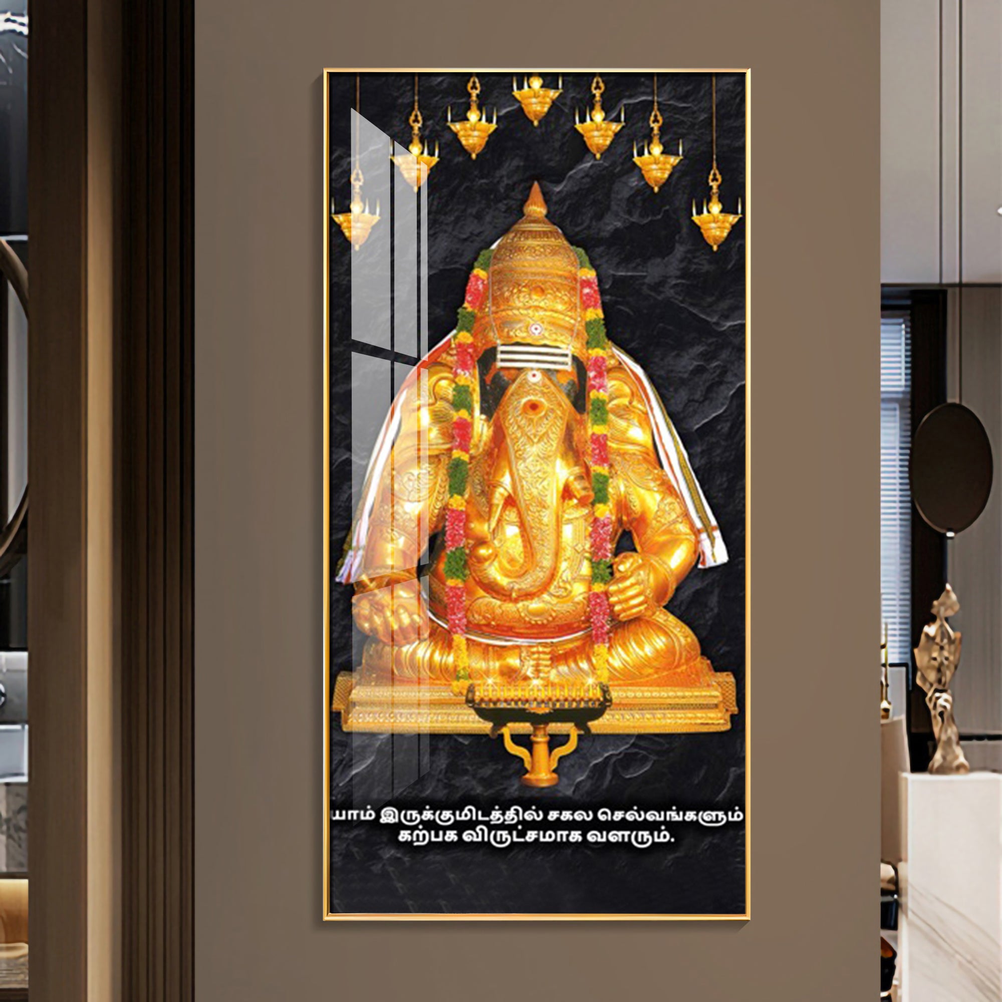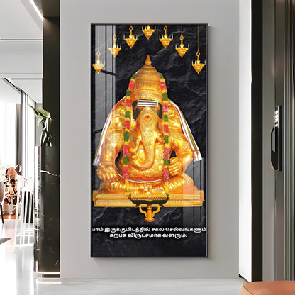 The Golden Gajanana Premium Acrylic Vertical Wall Art
