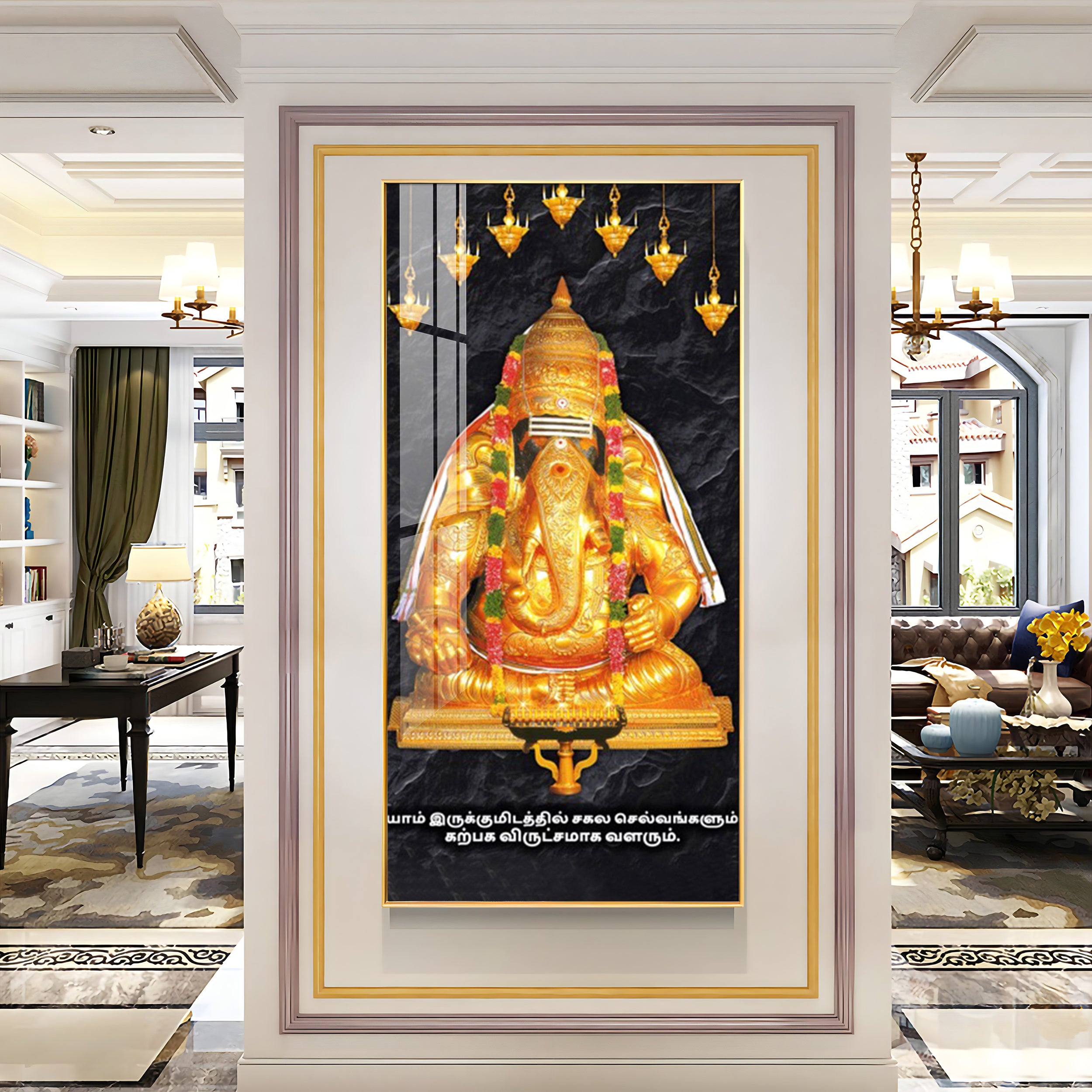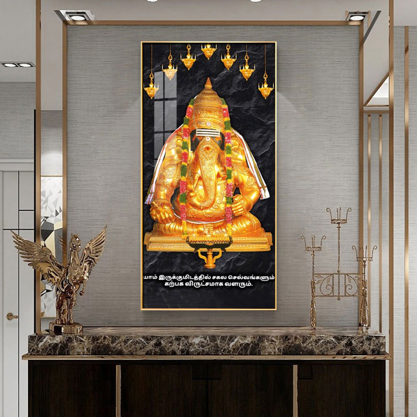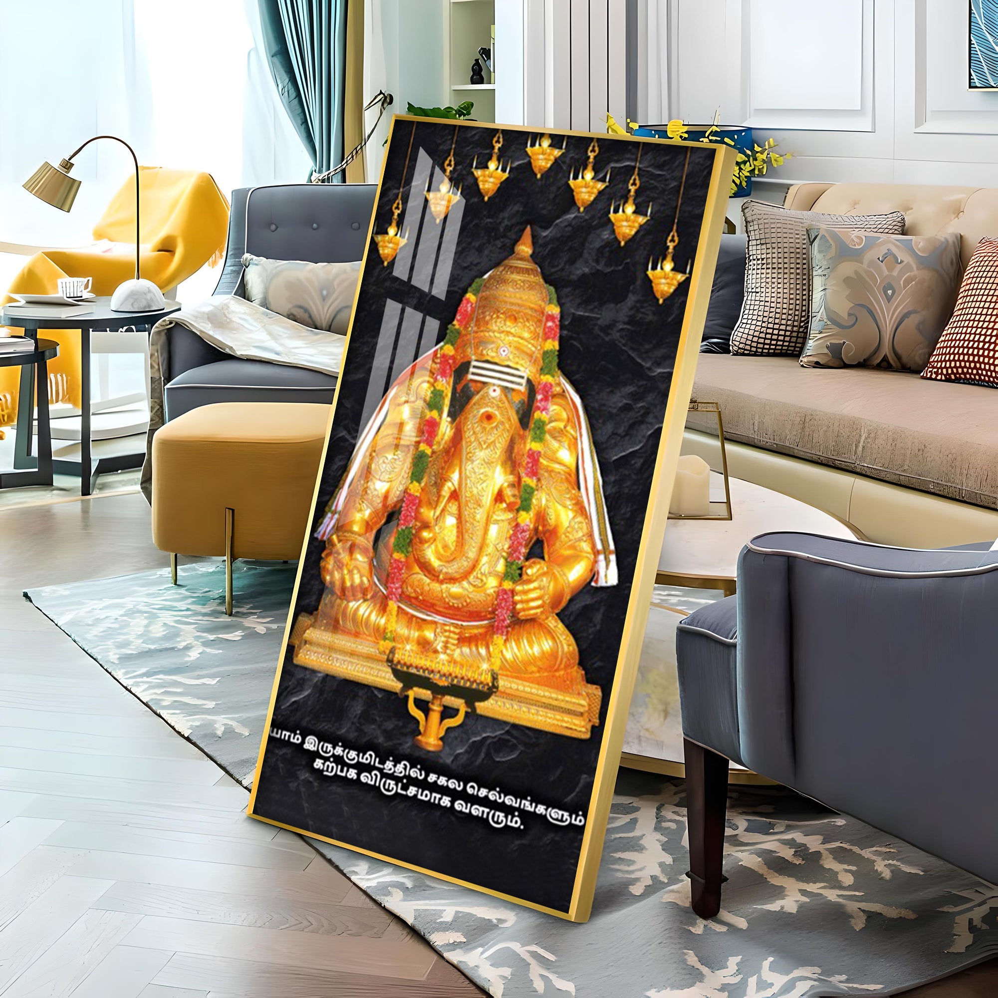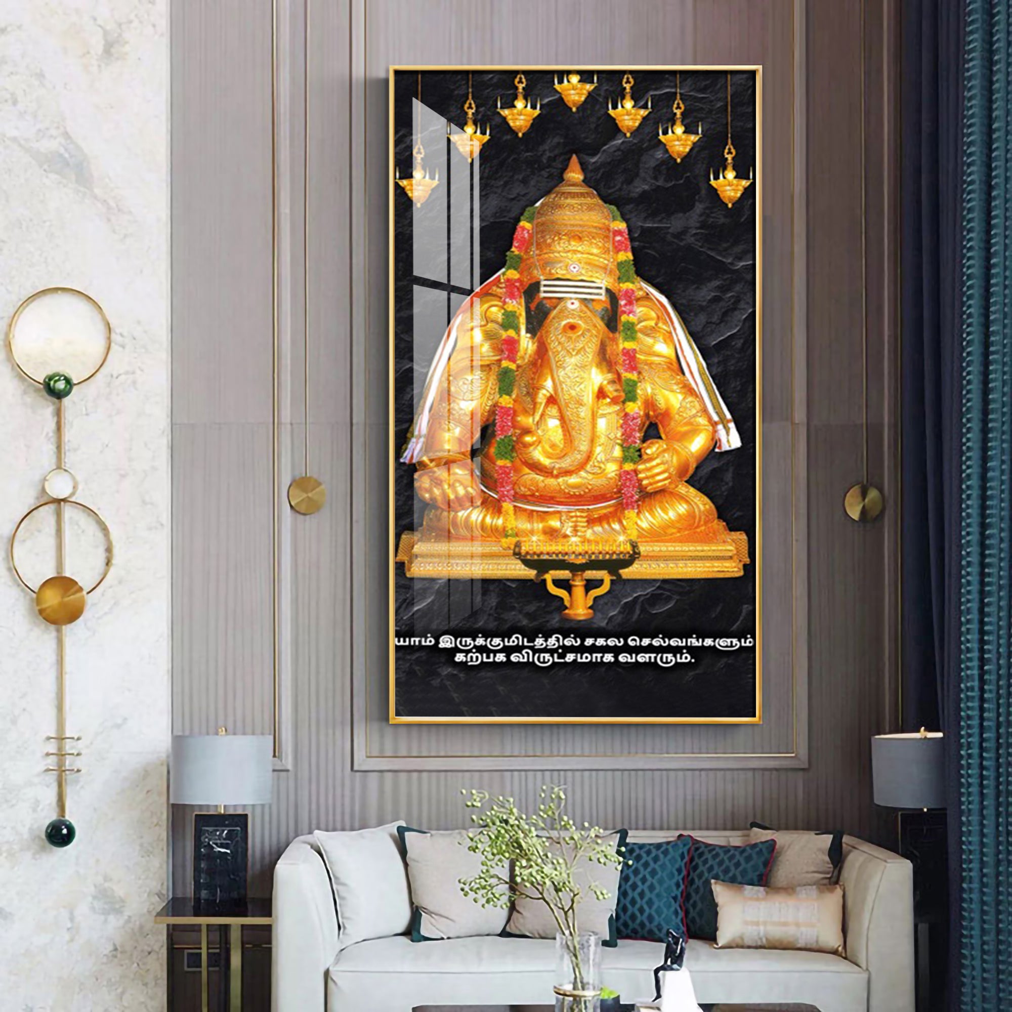The Golden Gajanana Premium Acrylic Vertical Wall Art