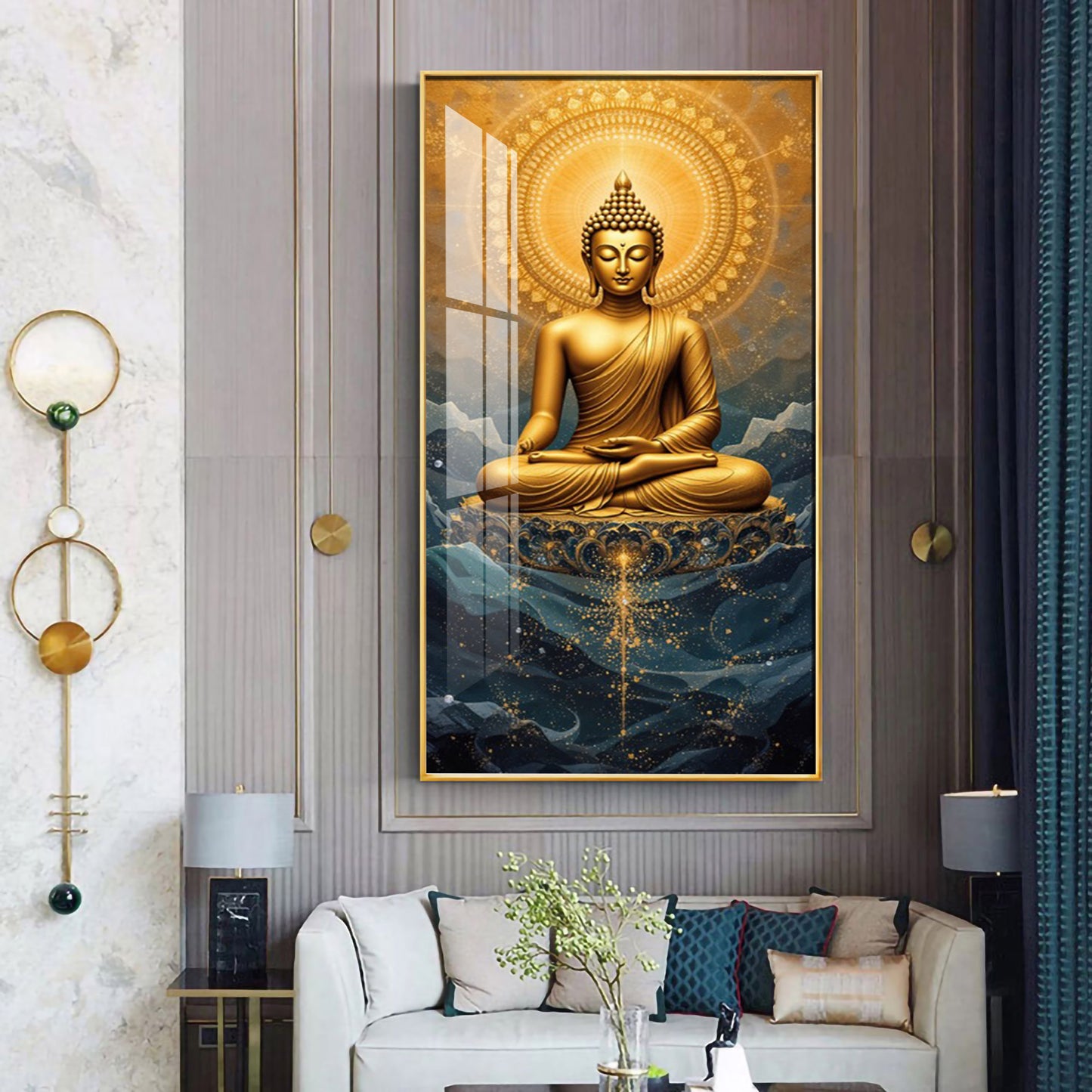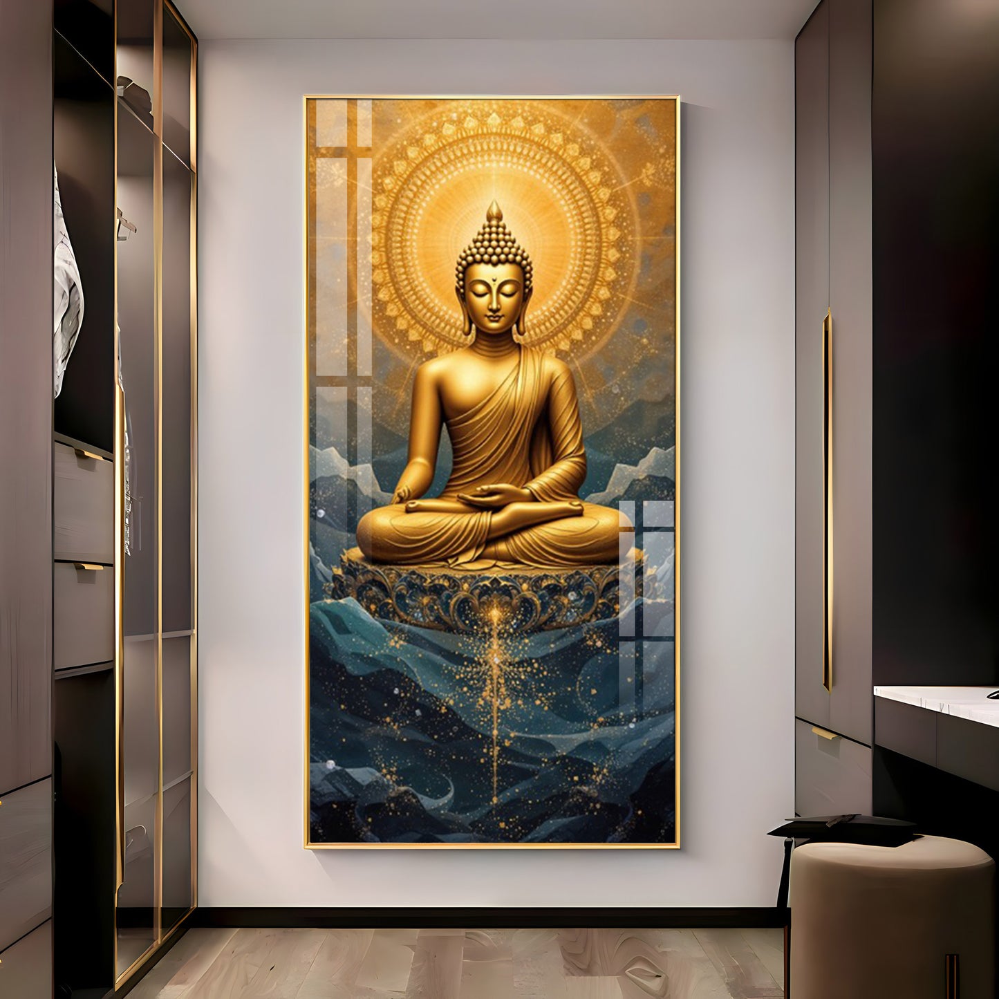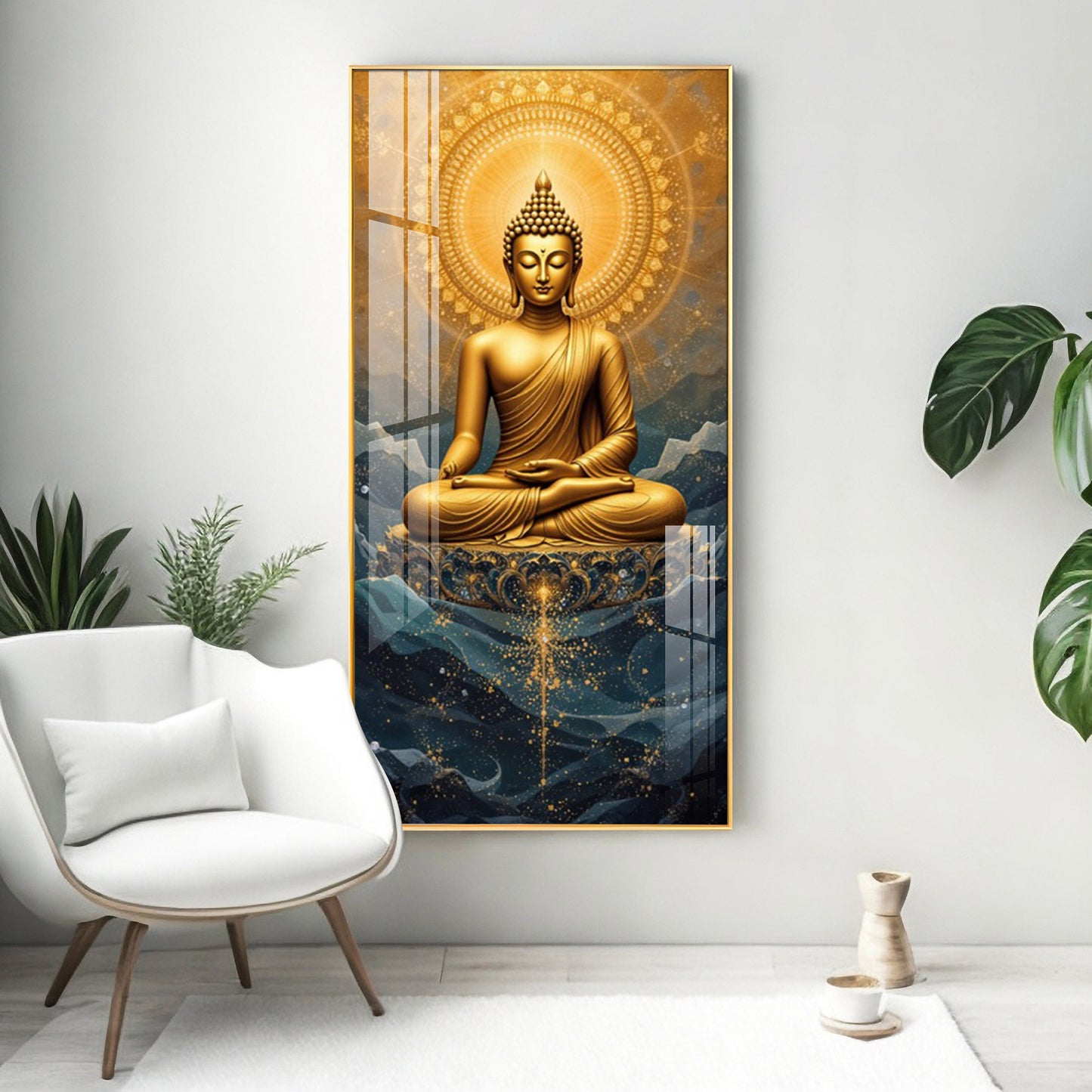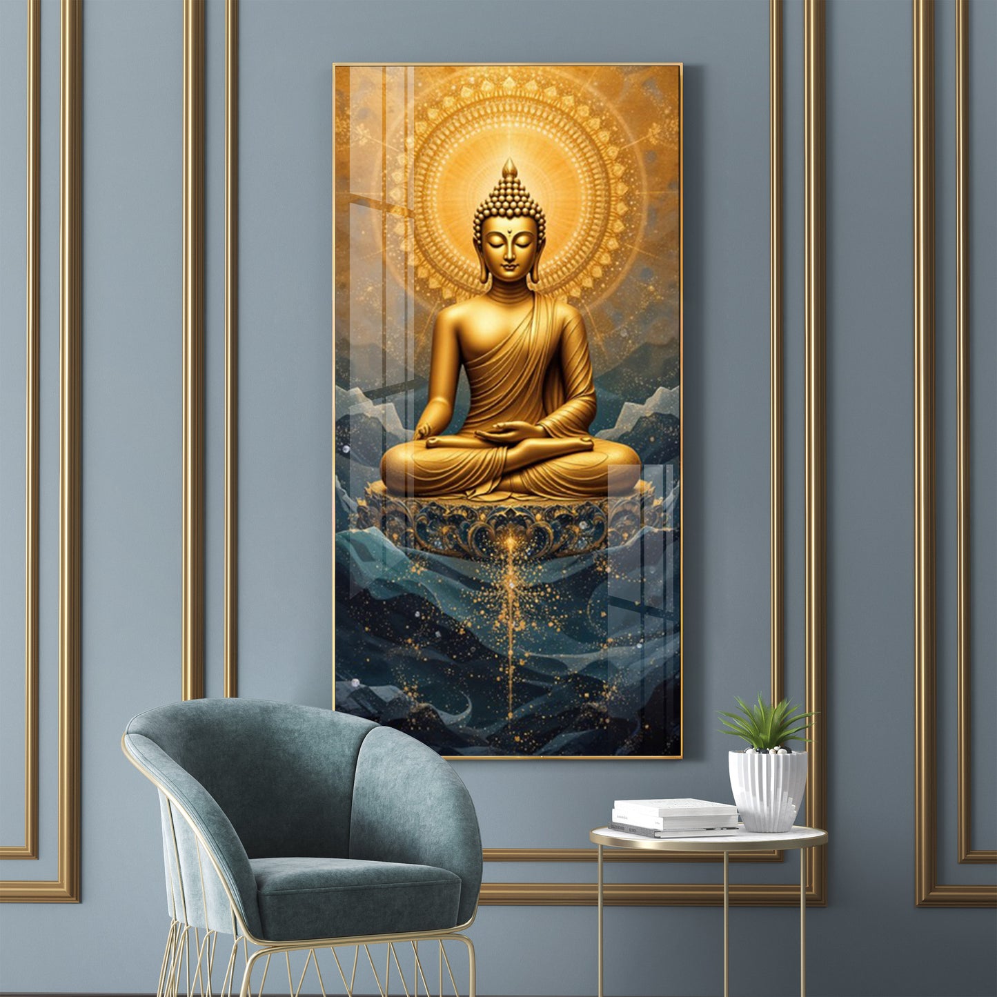 Tranquil Gold Buddha Premium Acrylic Vertical Wall Art