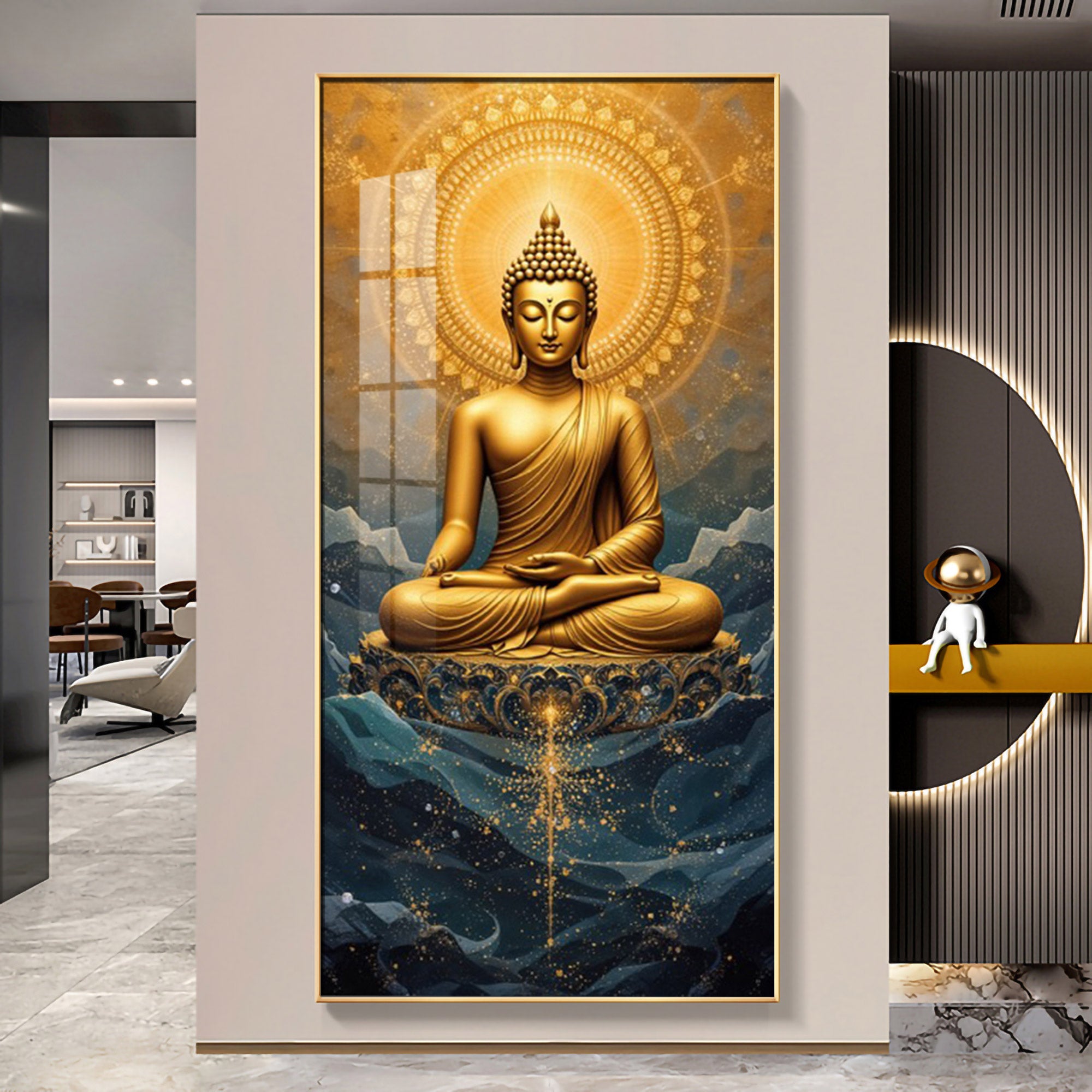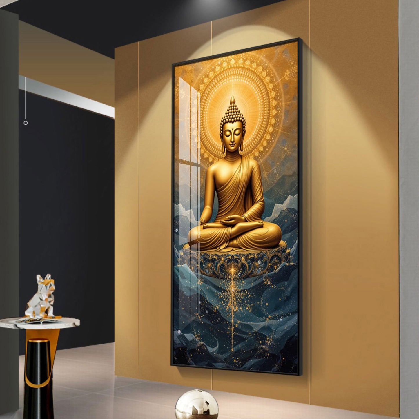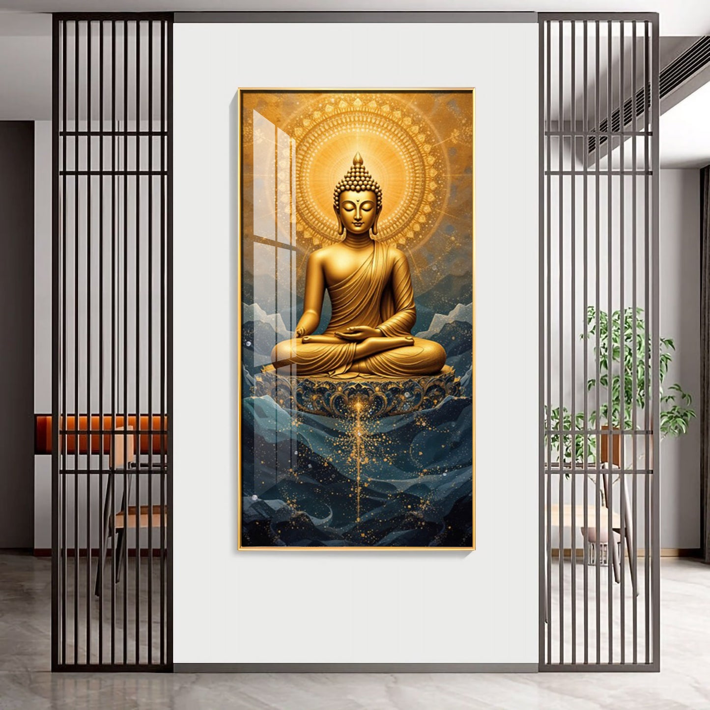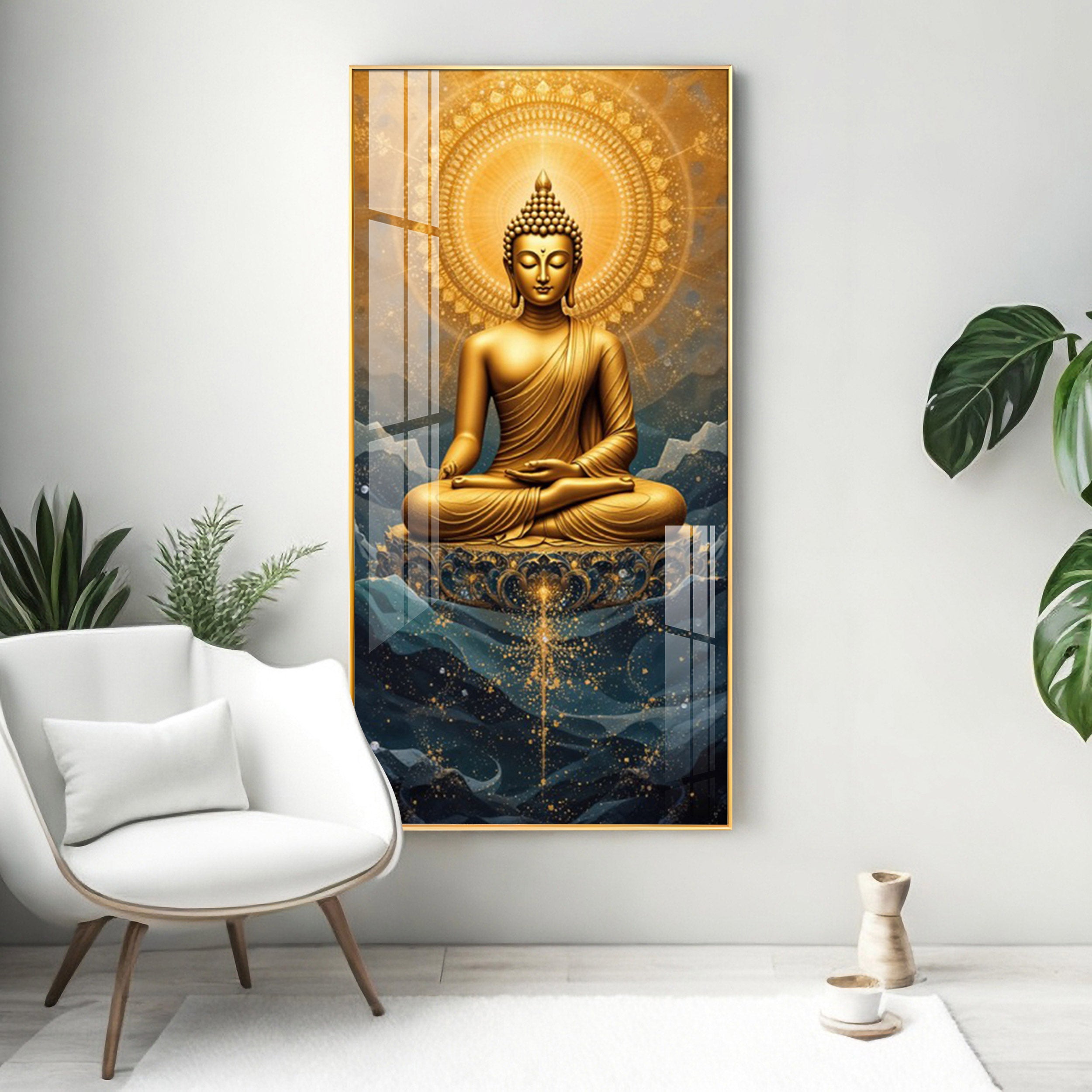 Tranquil Gold Buddha Premium Acrylic Vertical Wall Art
