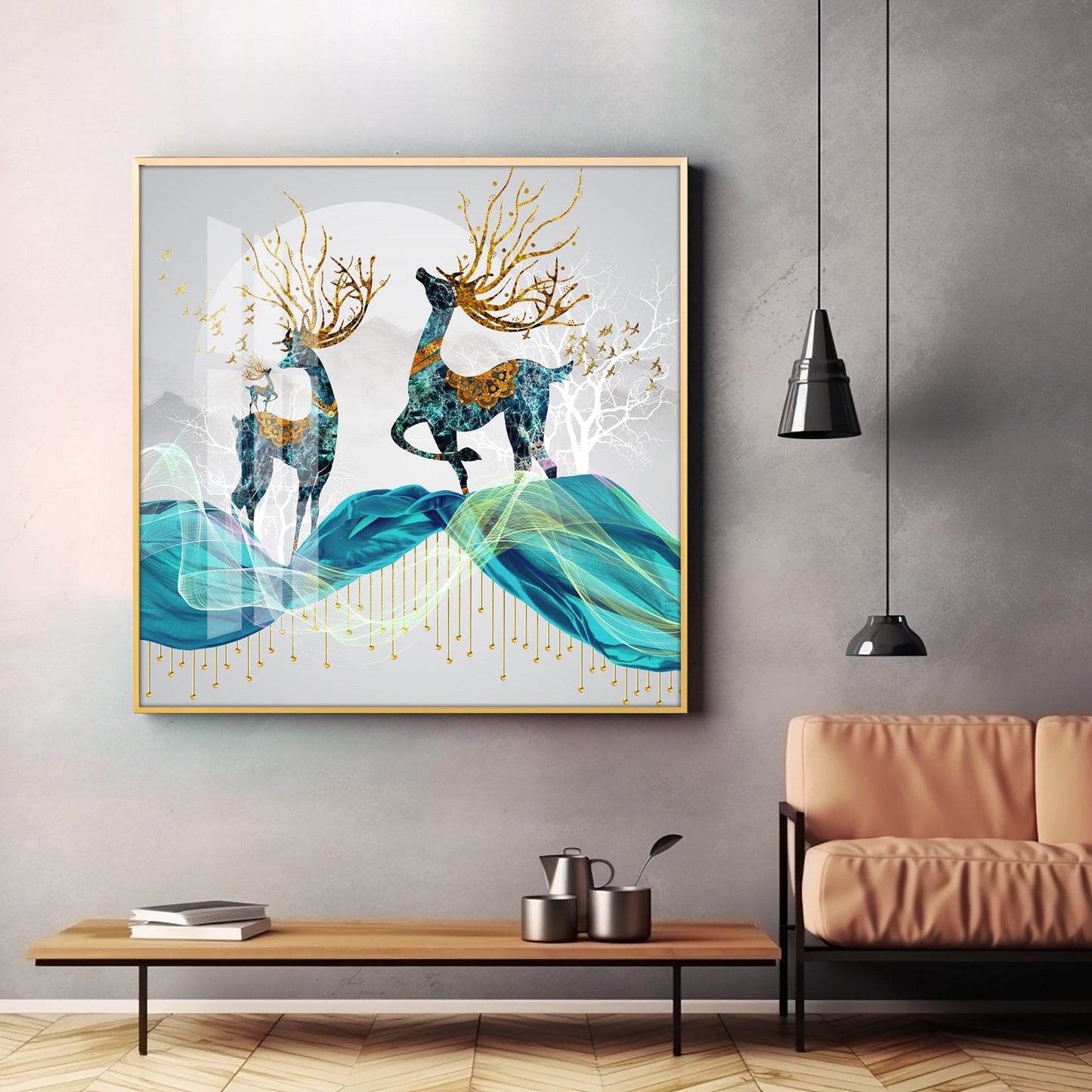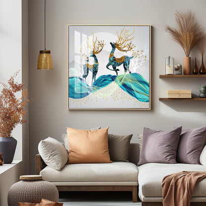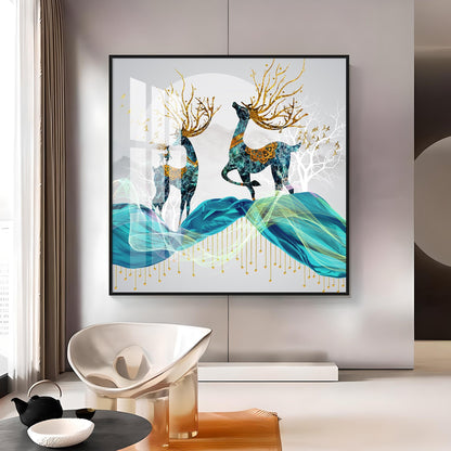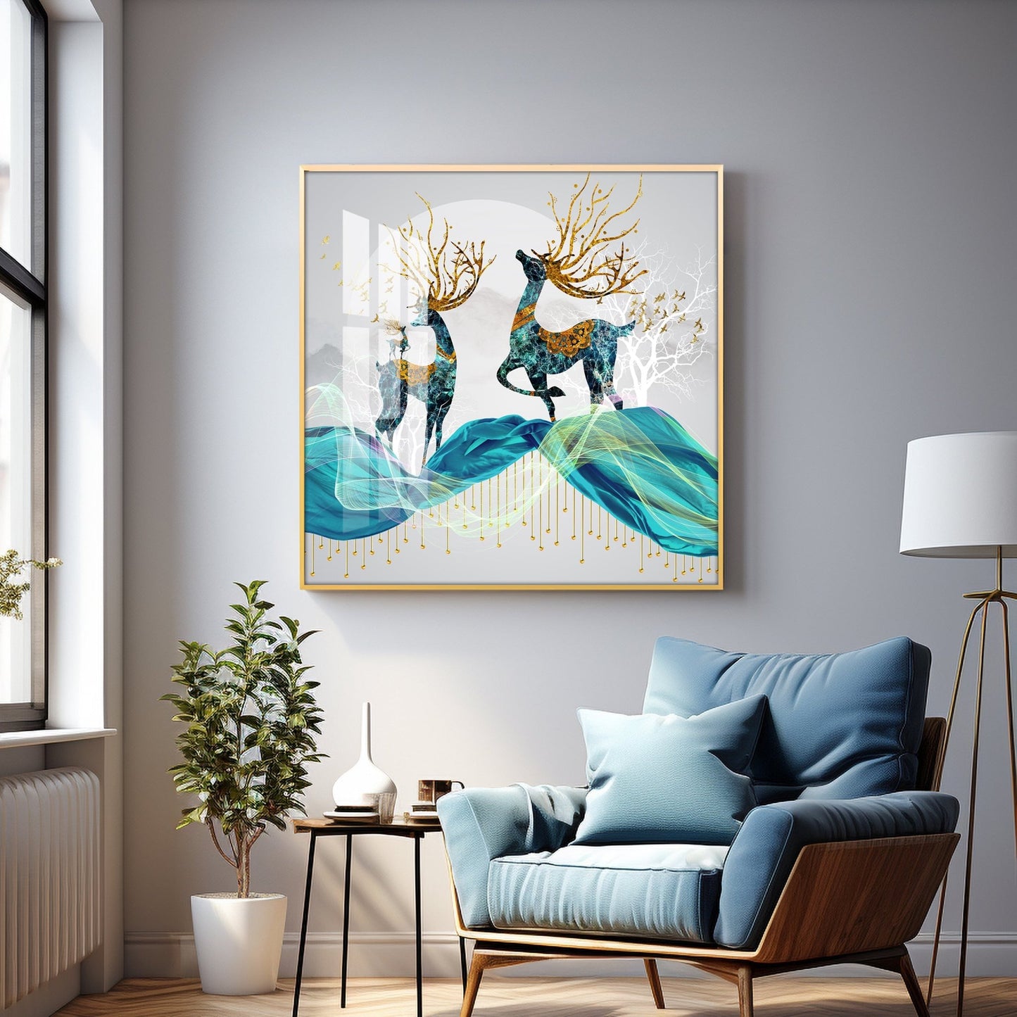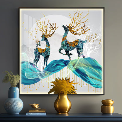 Two Beautiful Blue Deers Luxury Crystal Square Wall Art