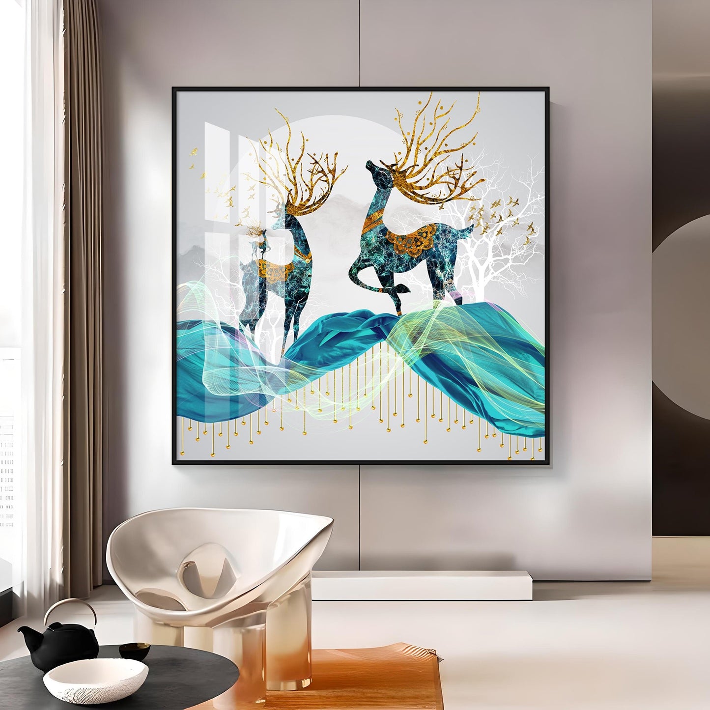 Two Beautiful Blue Deers Luxury Crystal Square Wall Art - The Next Decor