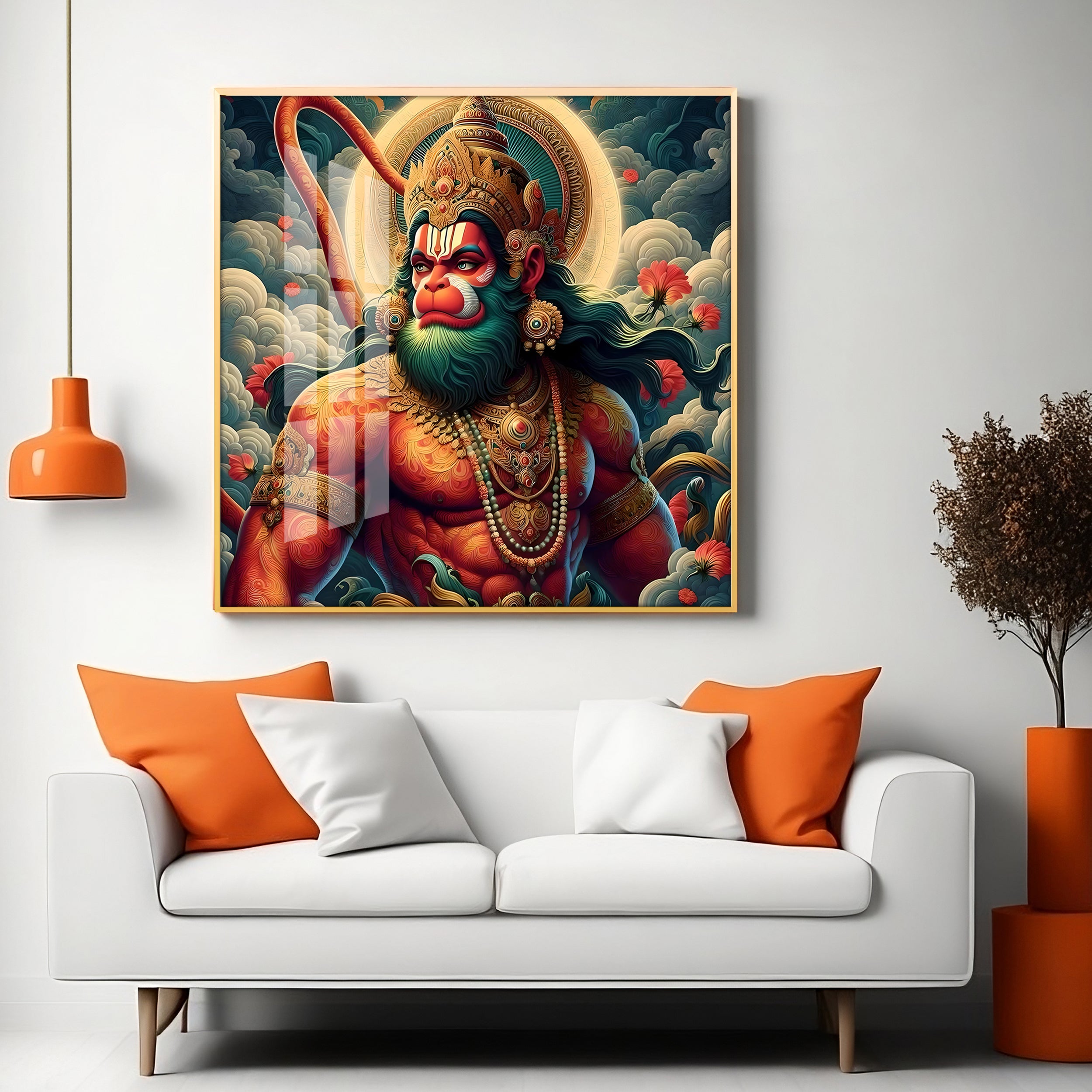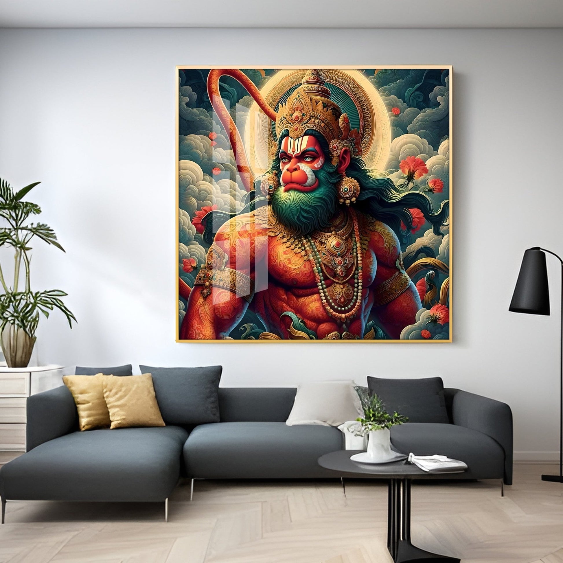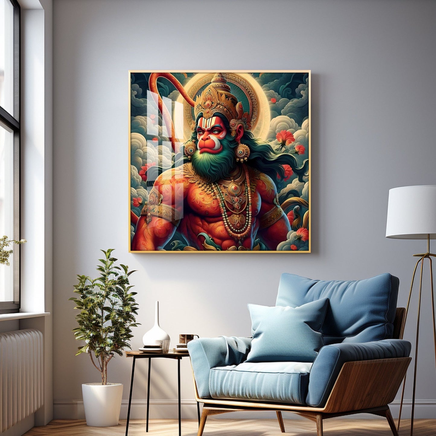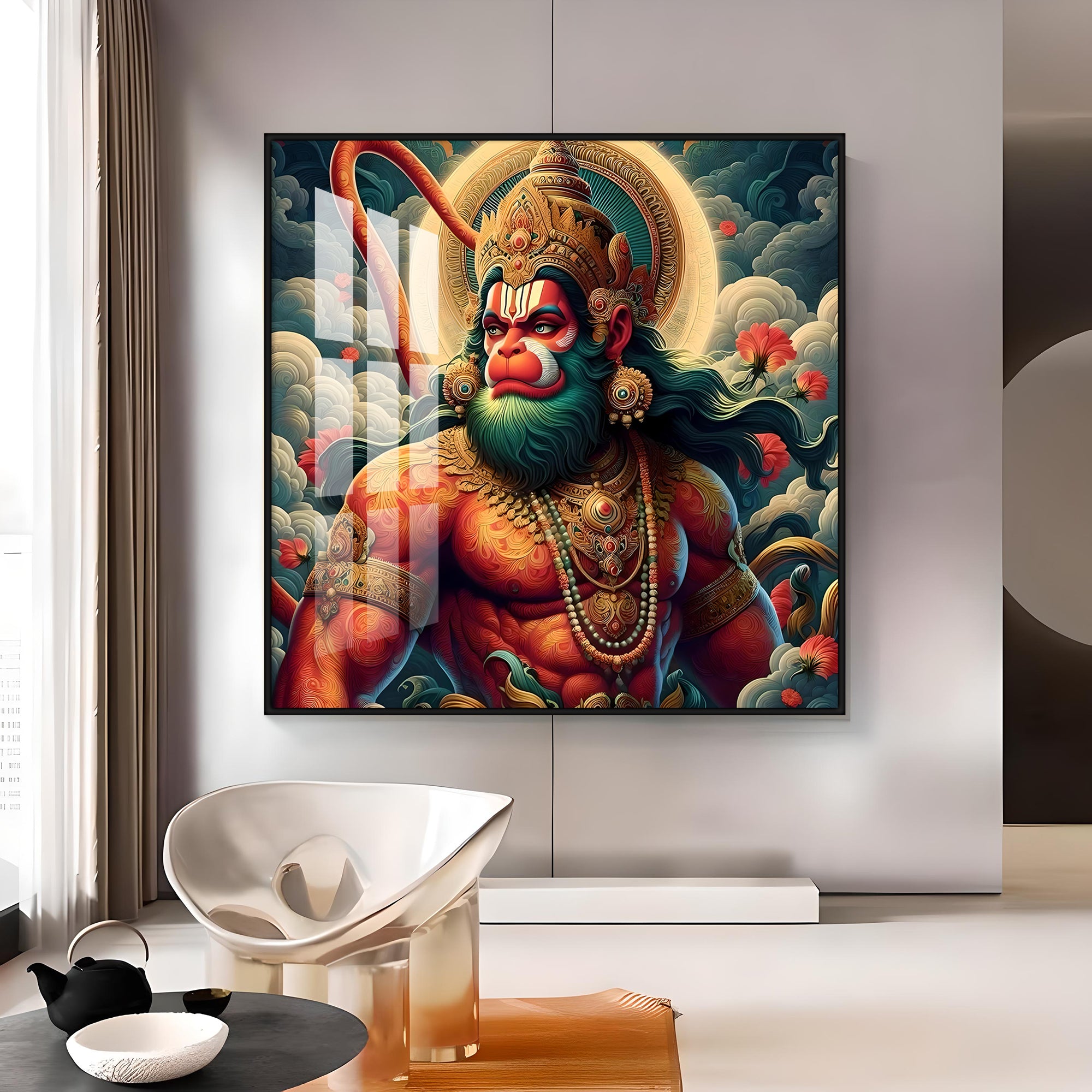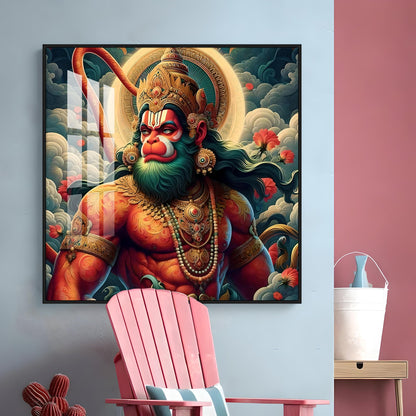 Veer Hanuman Ji Premium Acrylic Square Wall Art