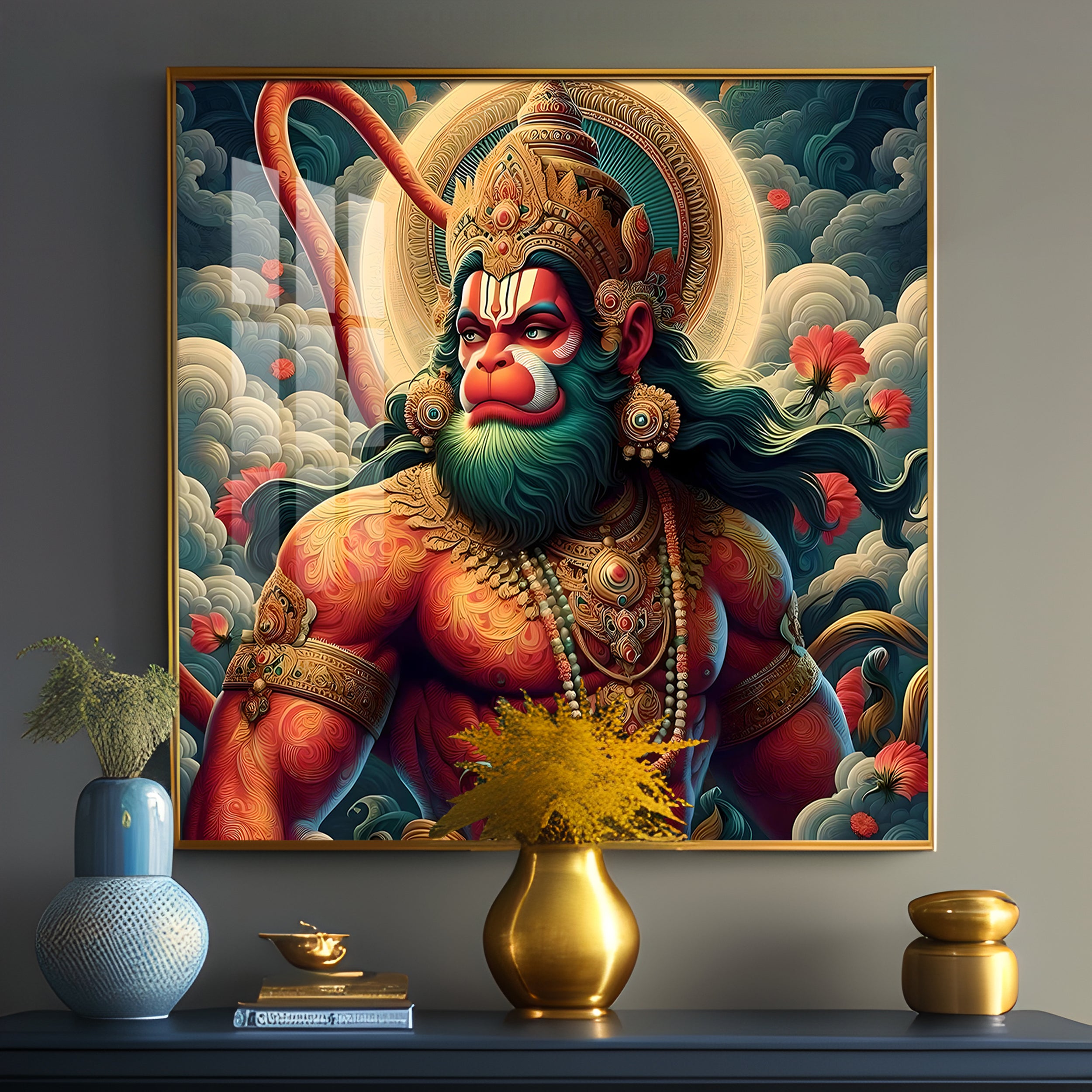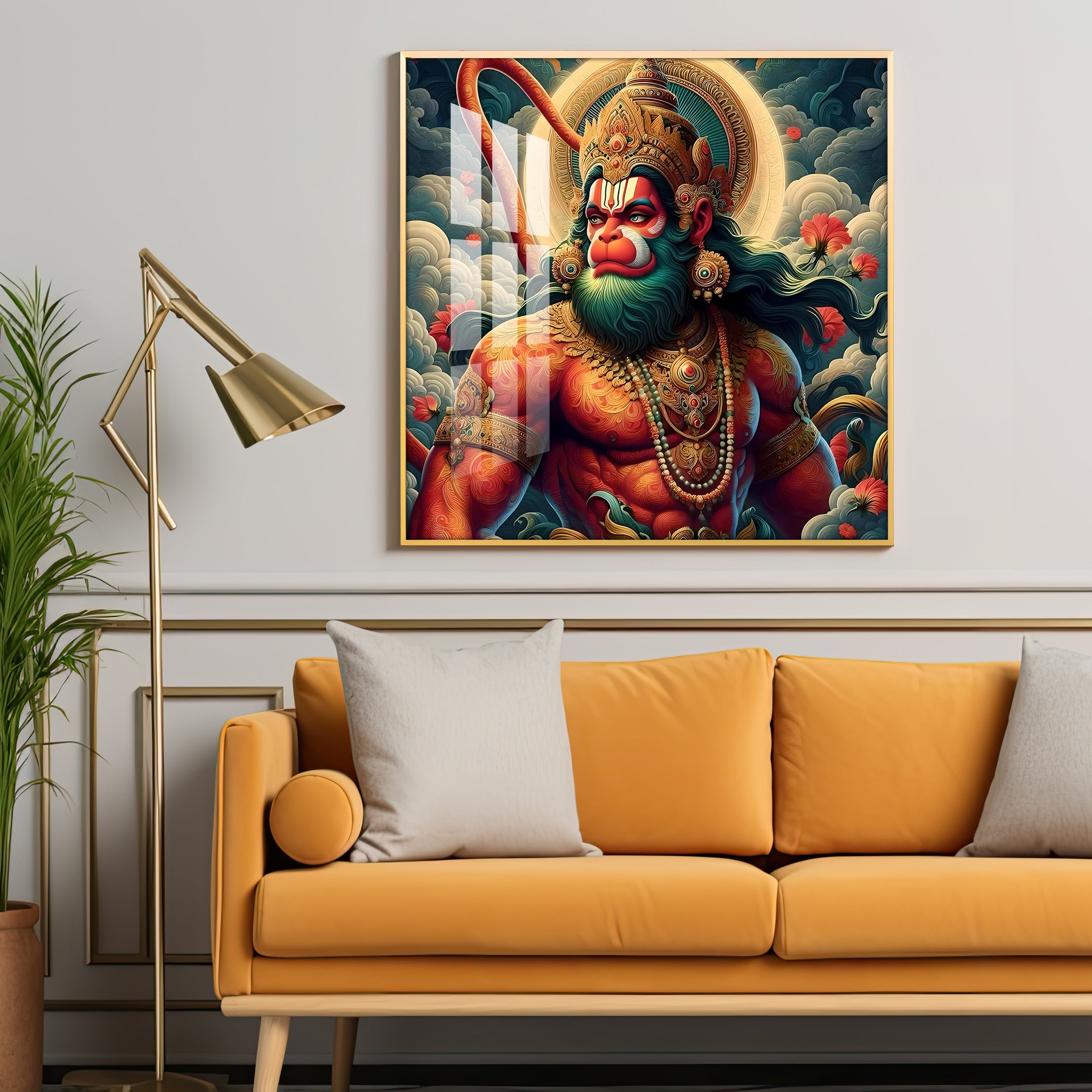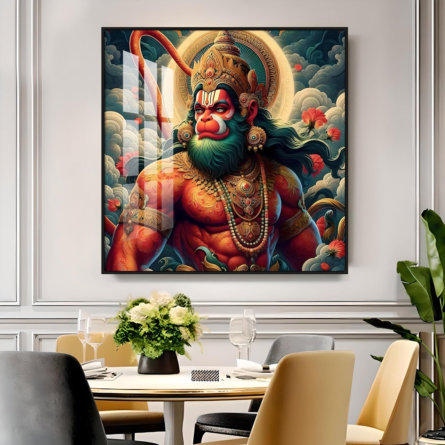 Veer Hanuman Ji Premium Acrylic Square Wall Art
