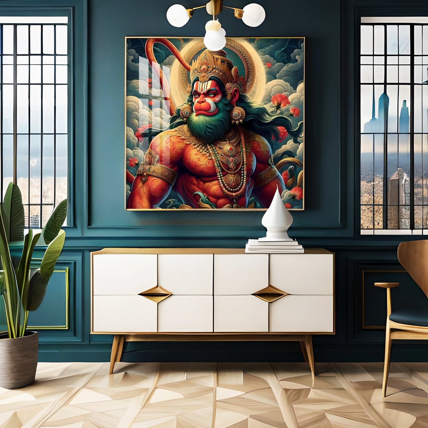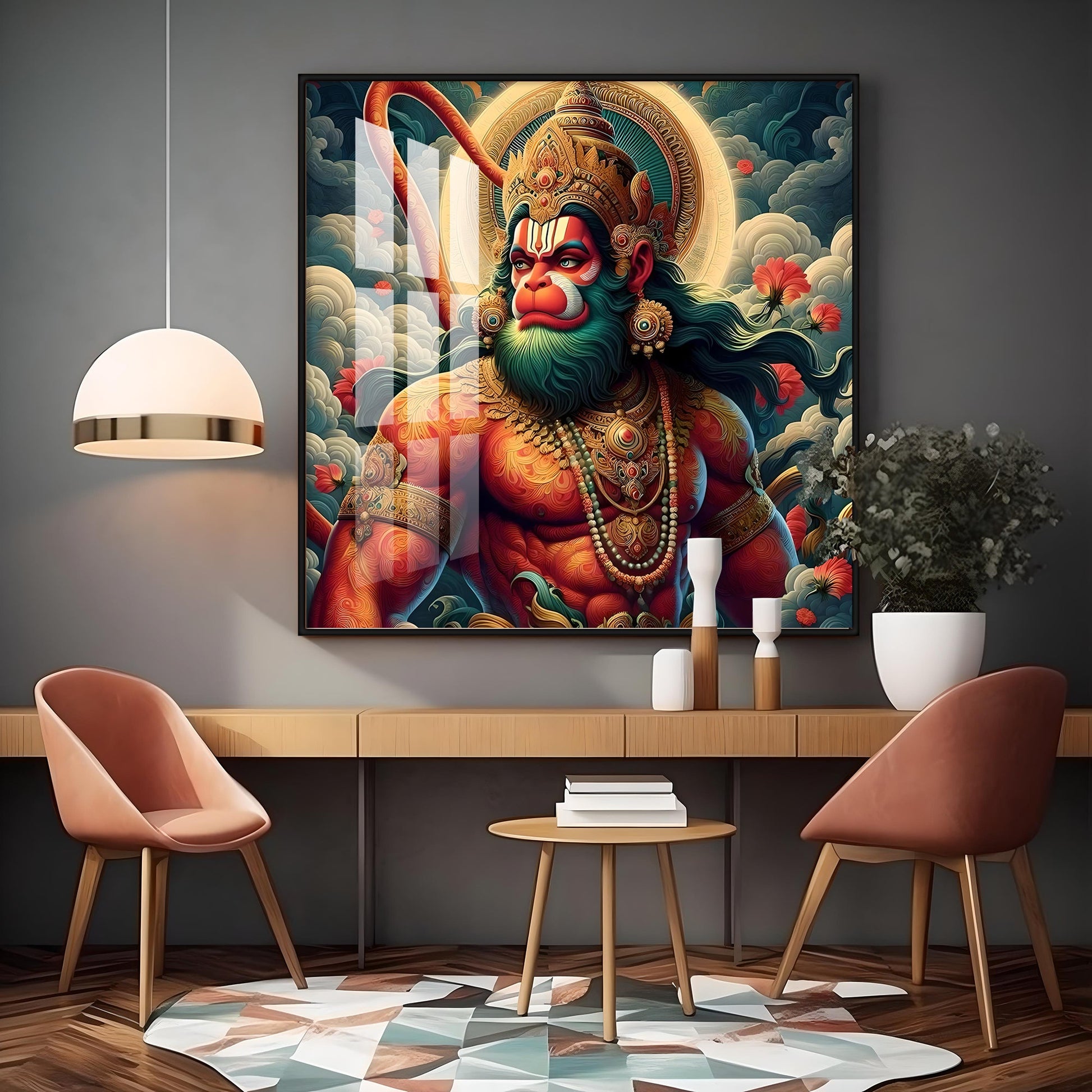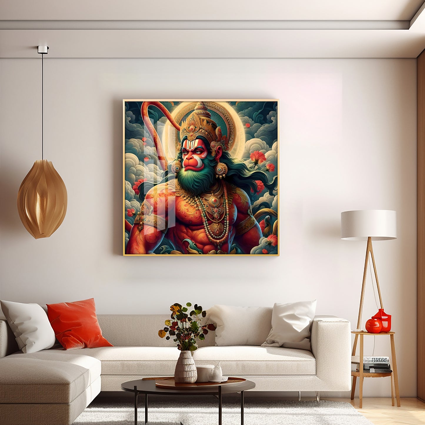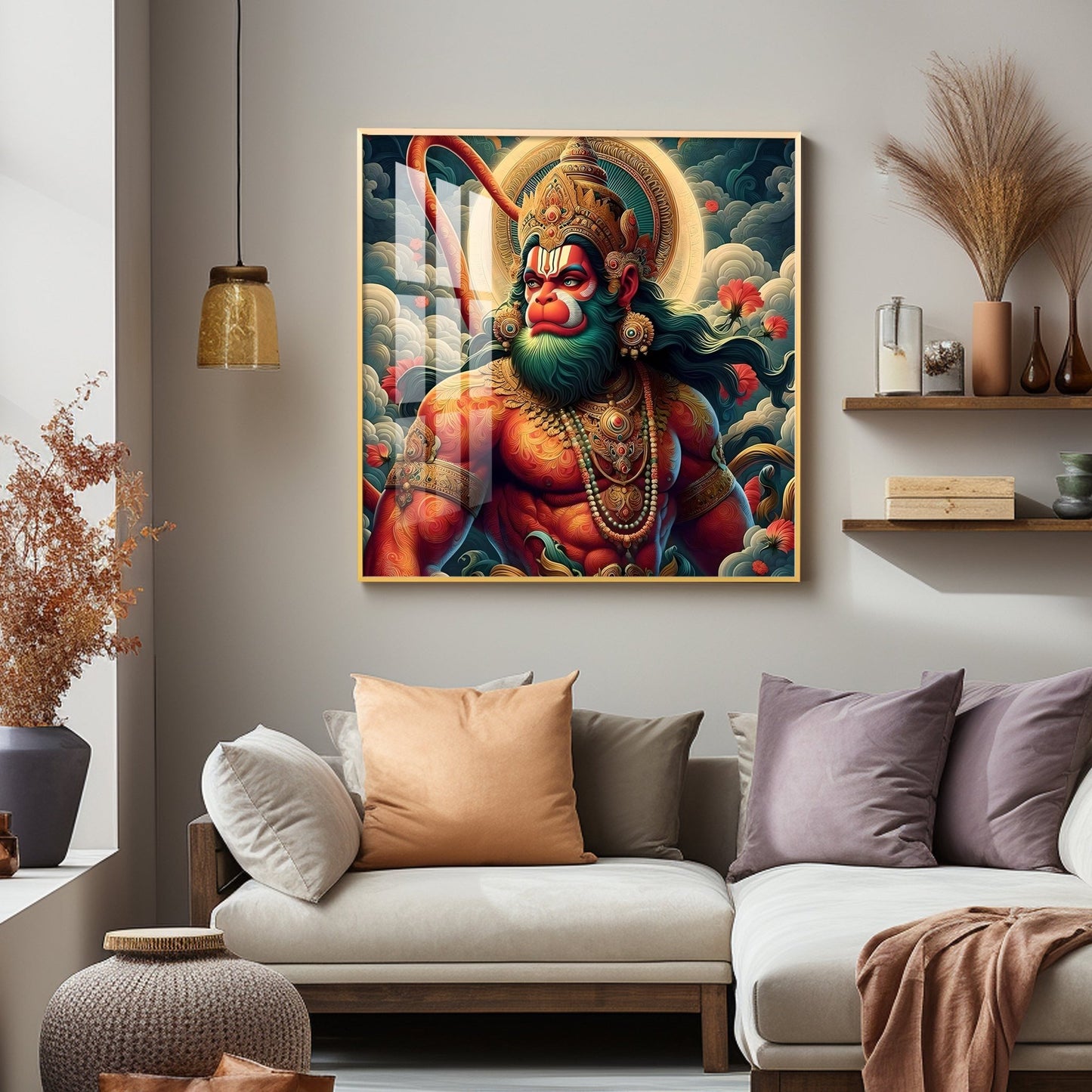 Veer Hanuman Ji Premium Acrylic Square Wall Art
