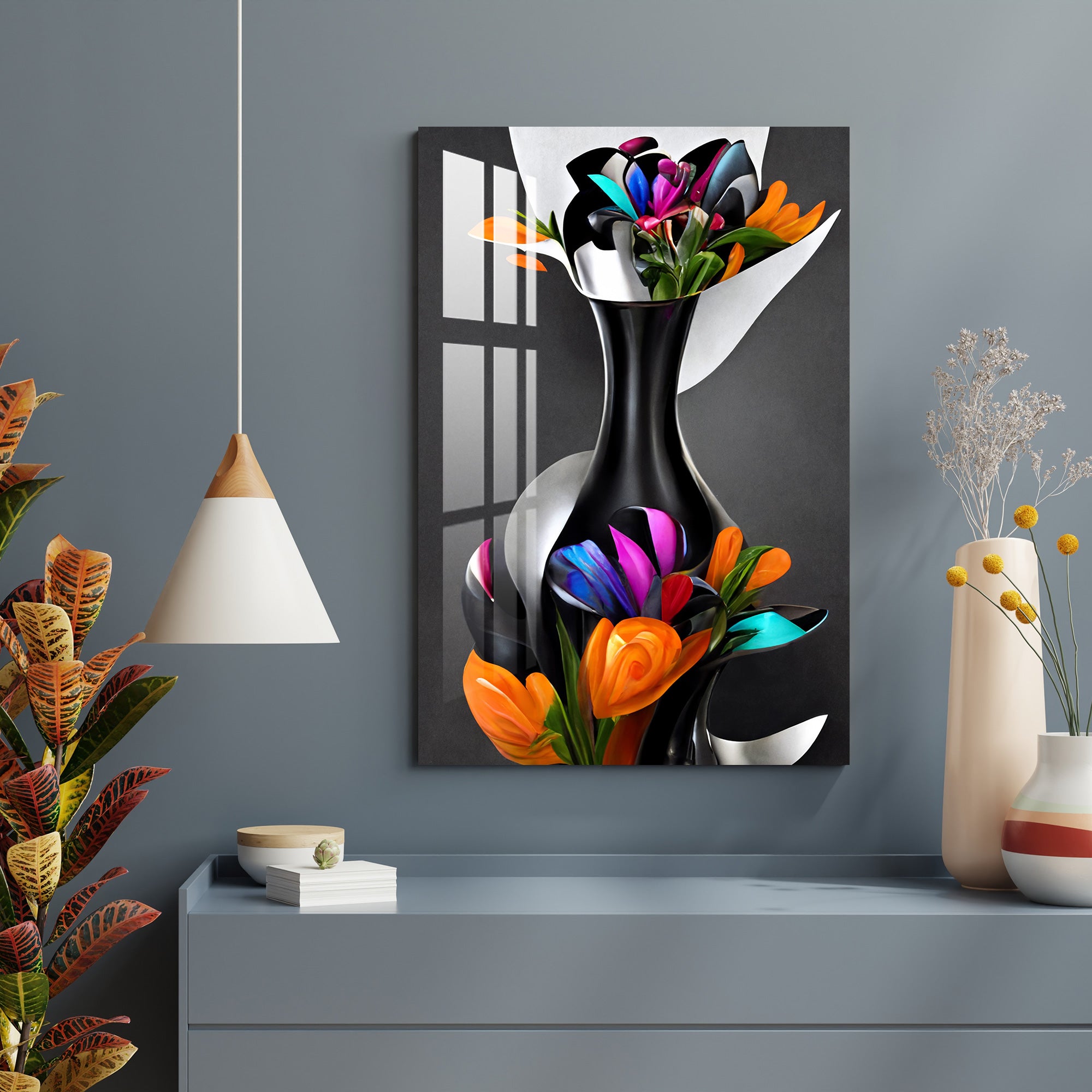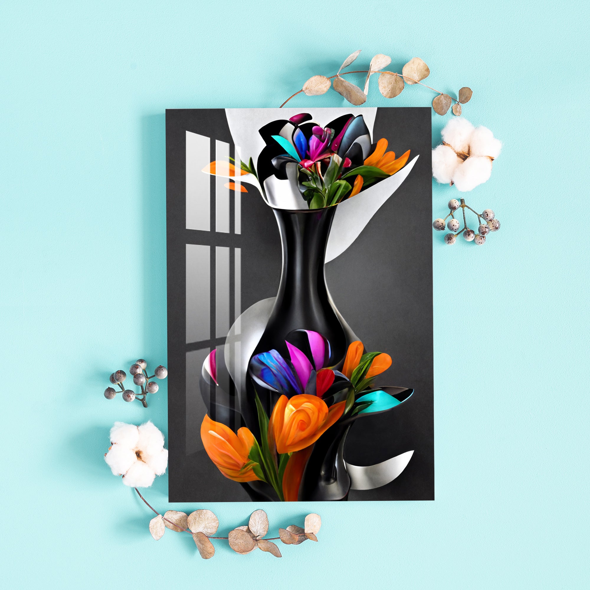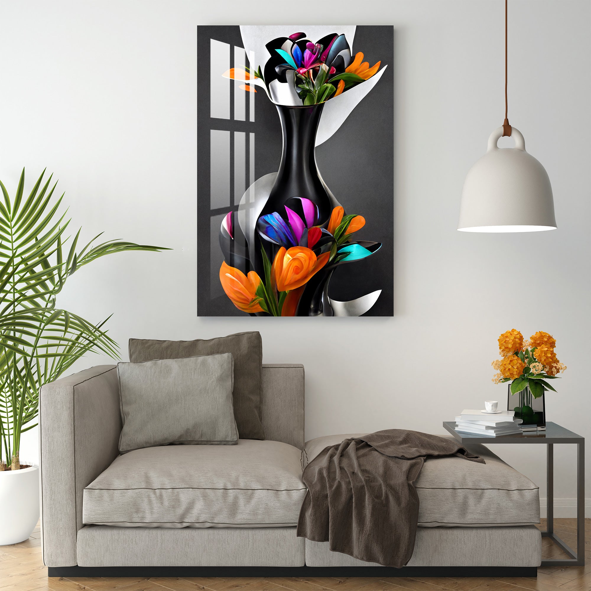 Vibrant Flowers in Black vessel Acrylic Wall Art