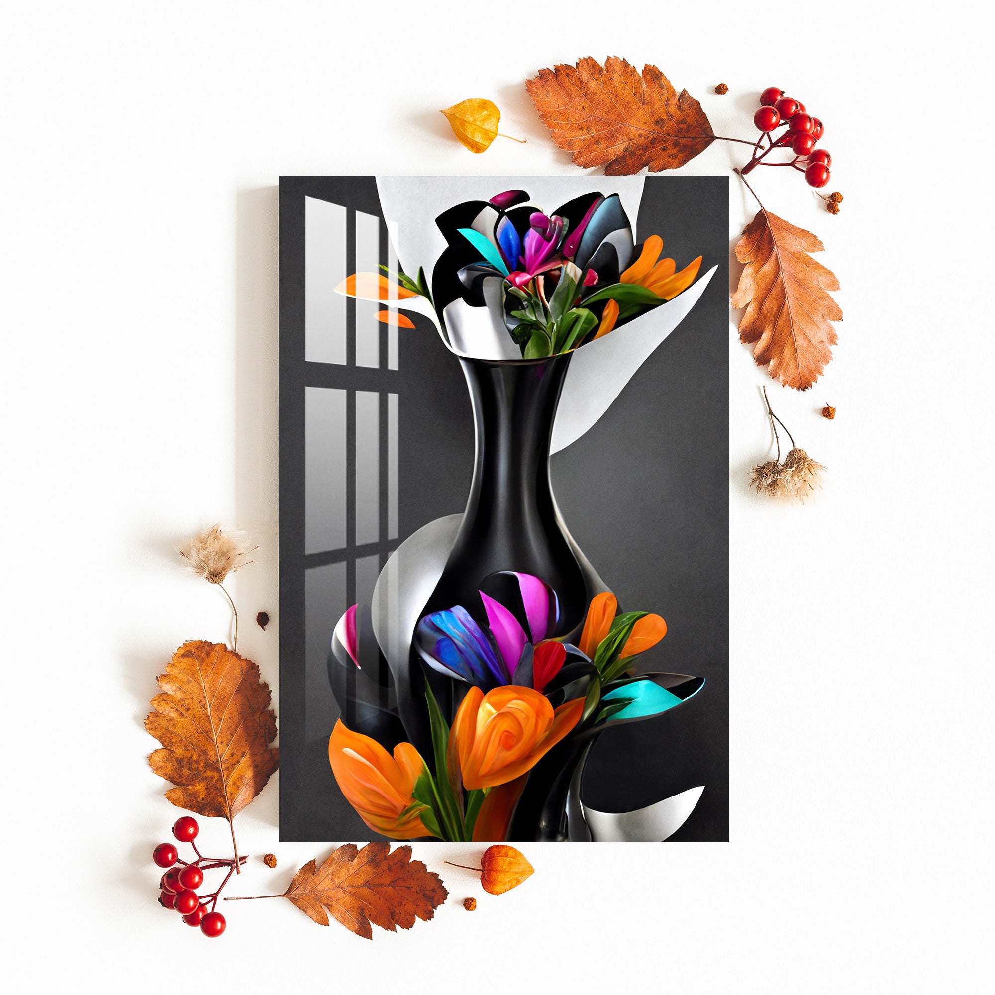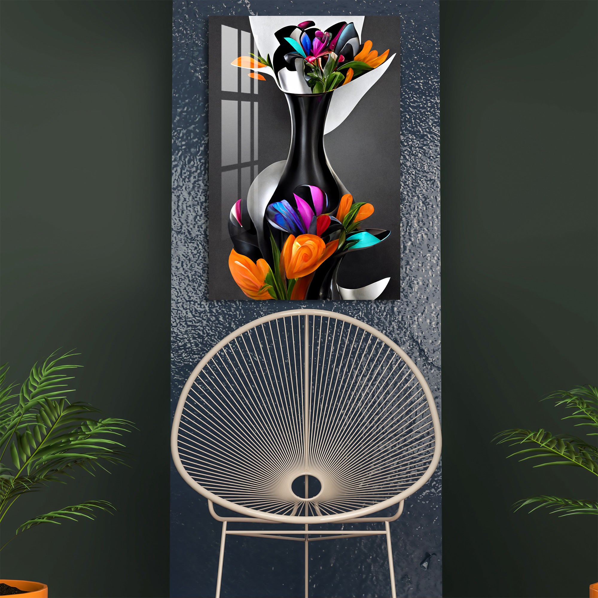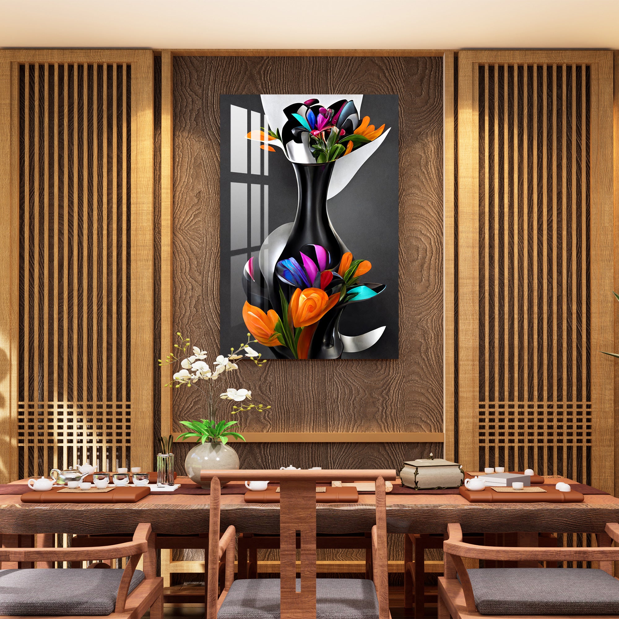 Vibrant Flowers in Black vessel Acrylic Wall Art