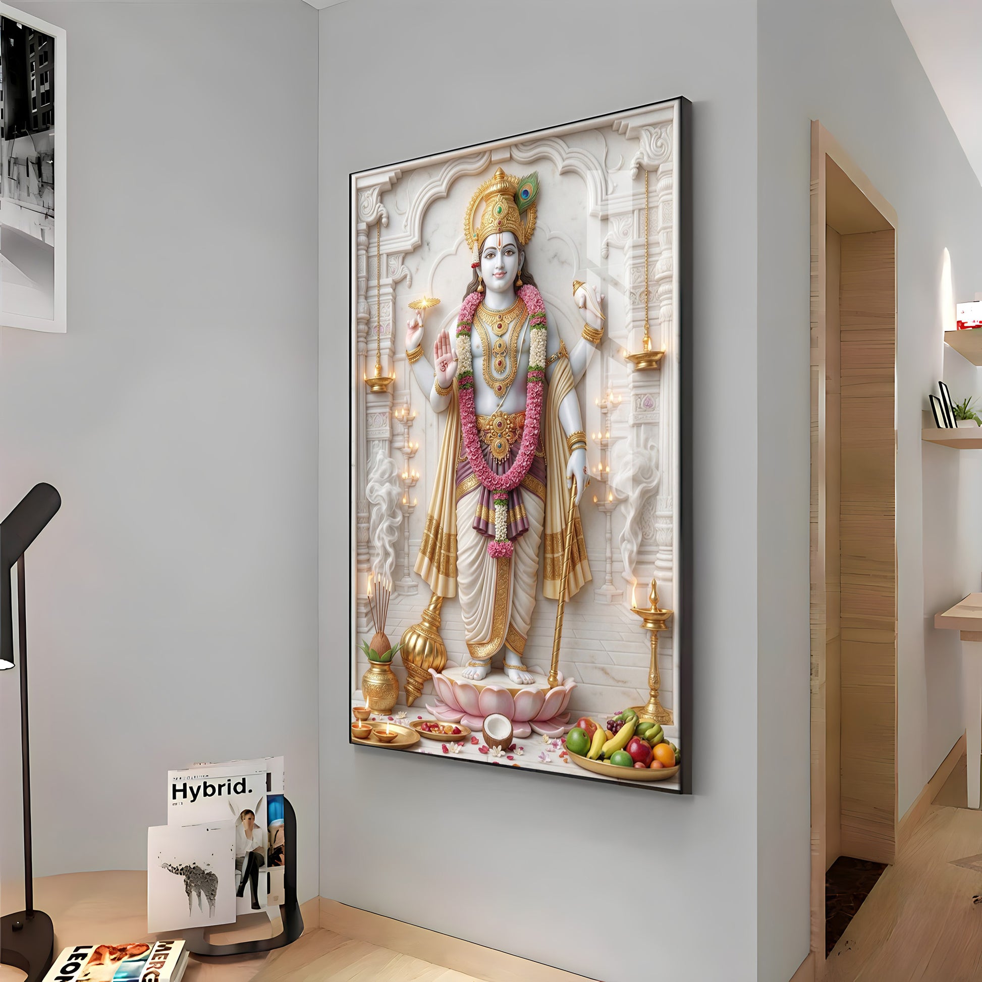 Vishnu Bhagwan With Sudarshana Chakra Premium Acrylic Vertical Wall Art