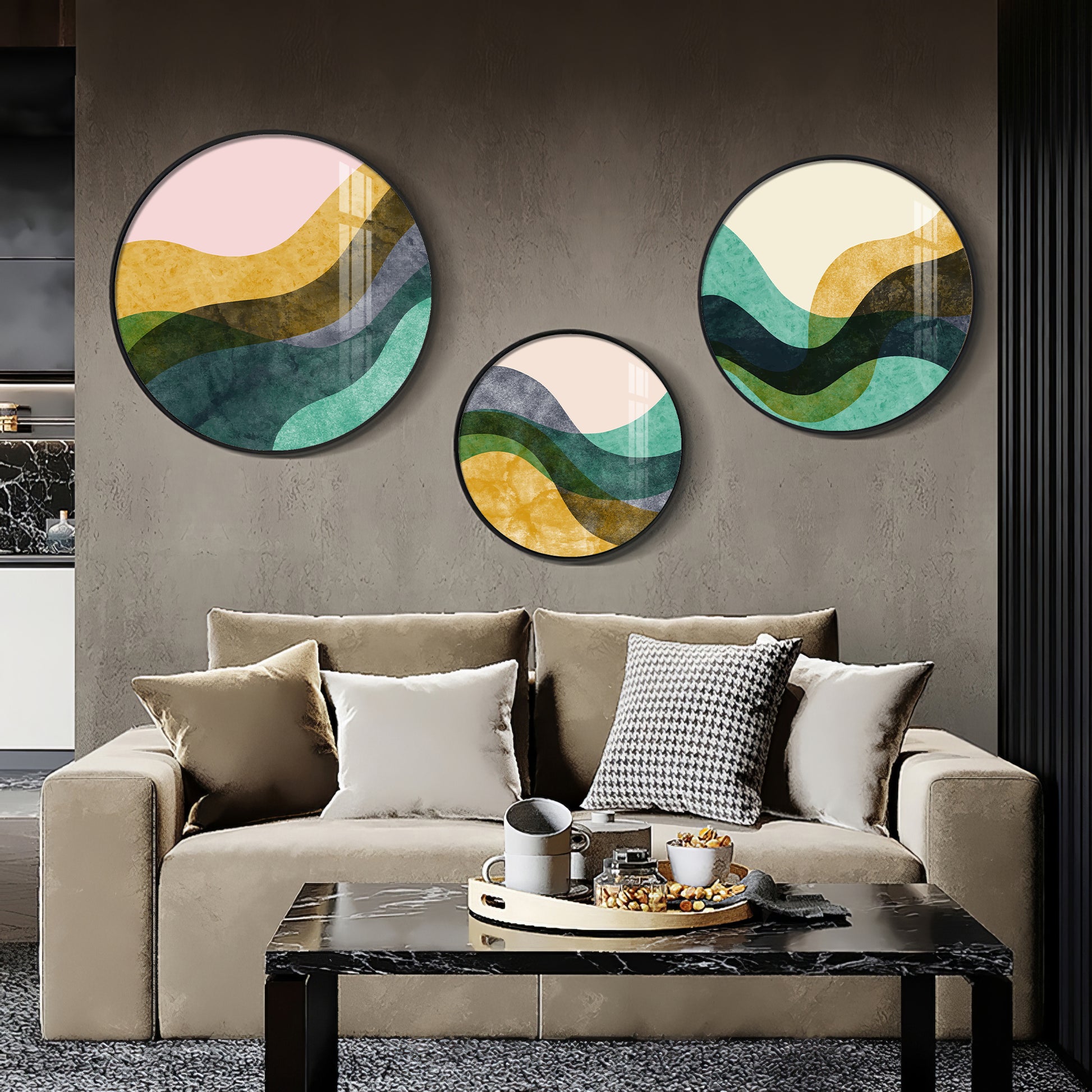 Wave Abstract Premium Acrylic Round Wall Art (Set of 3)