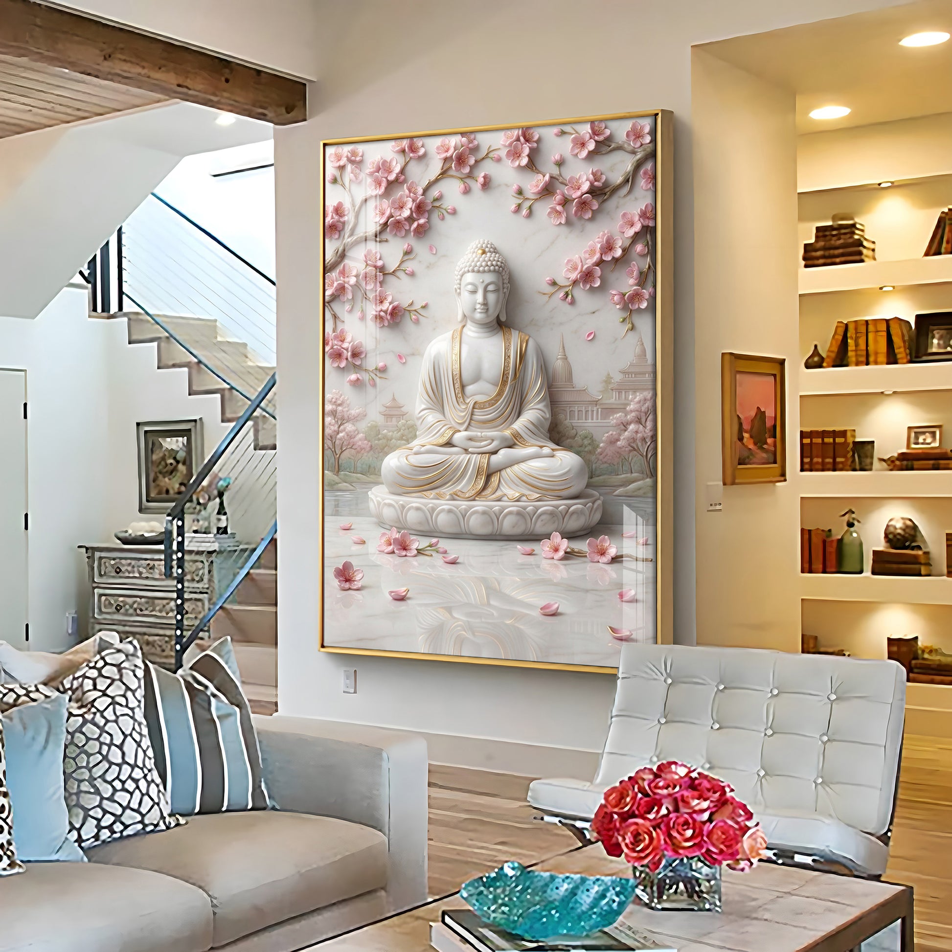 White Buddha Statue Premium Acrylic Vertical Wall Art